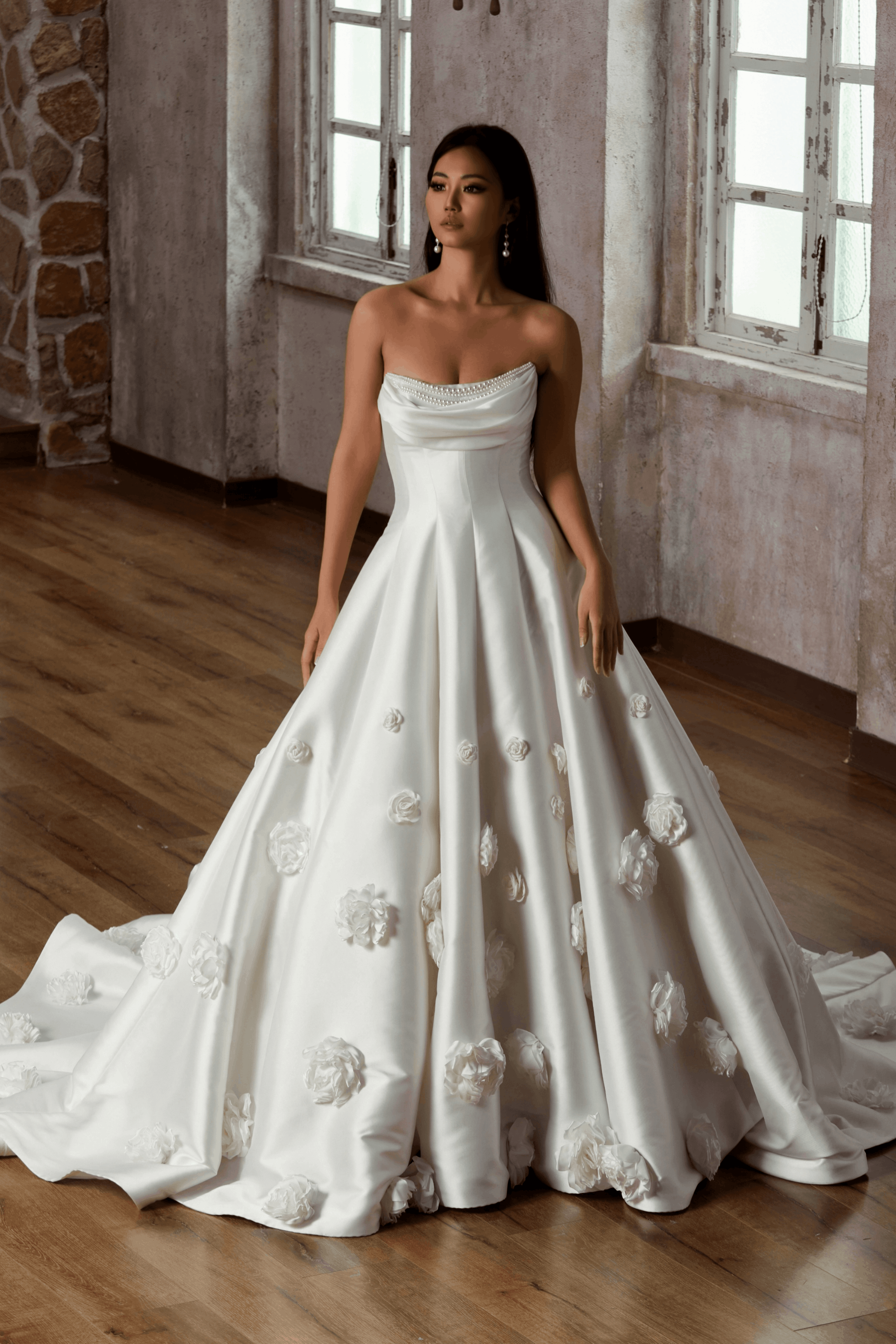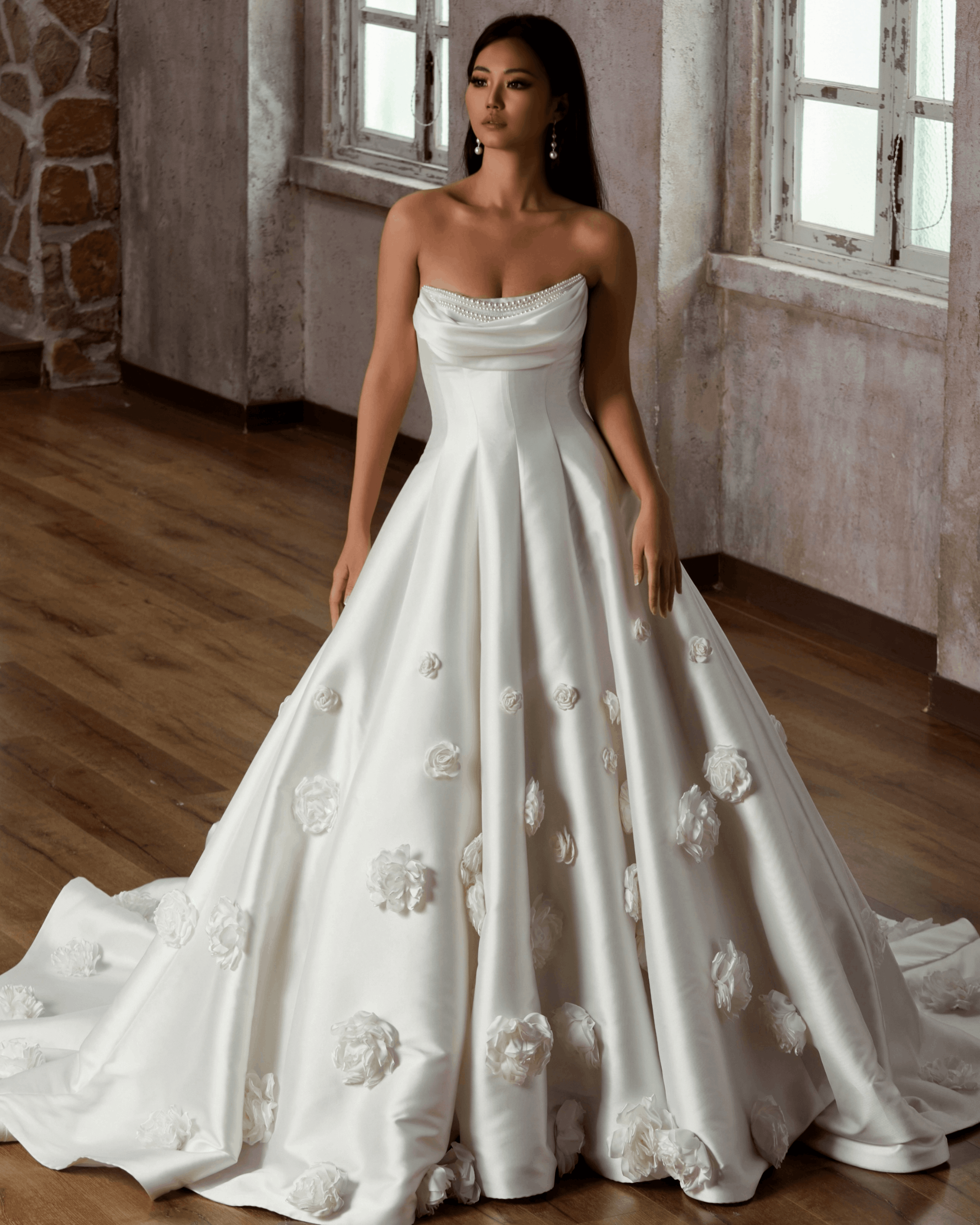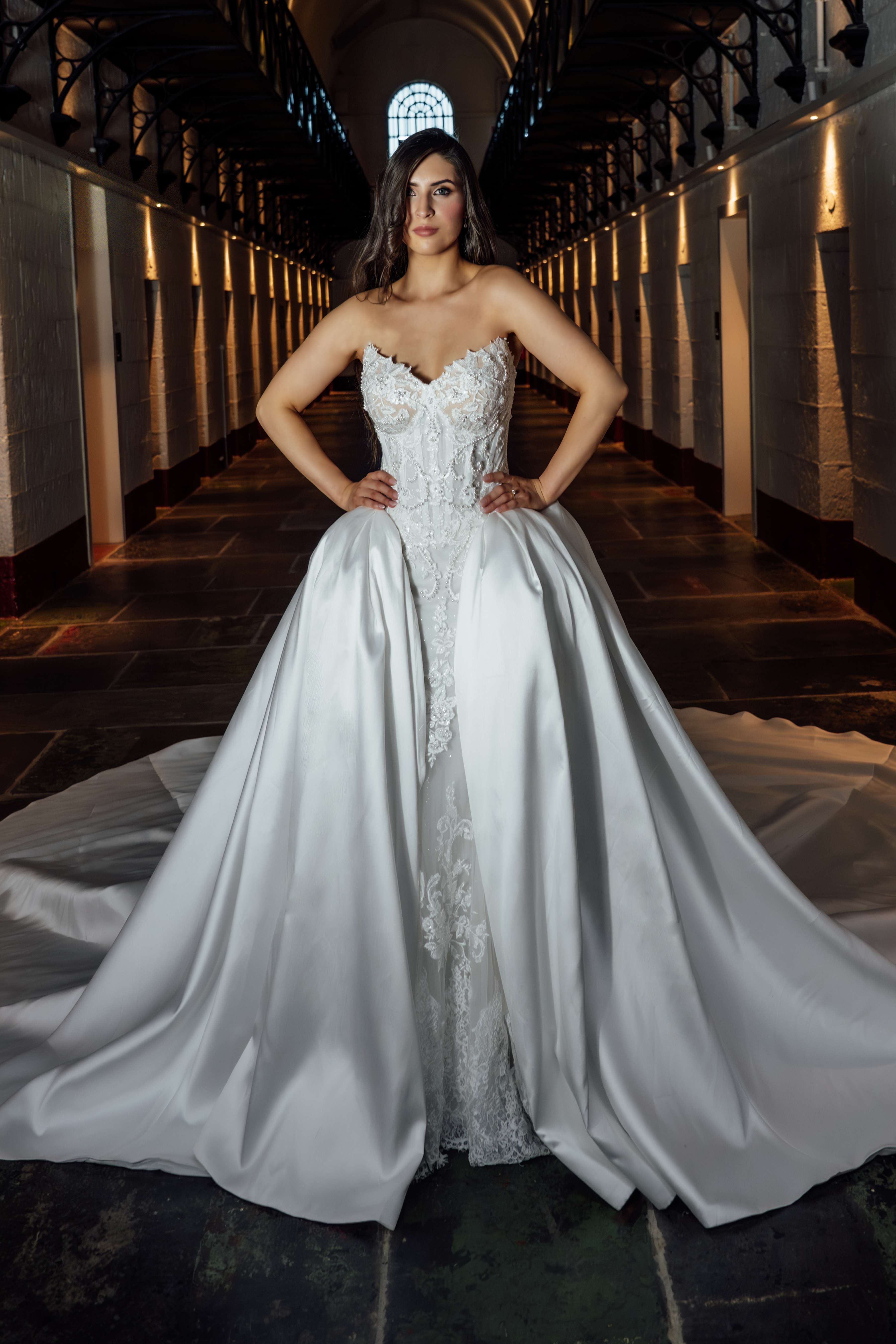 Let us bring your bridal vision to life by customizing every detail, from the fabric and sleeves to the skirt, back, pockets, and more.