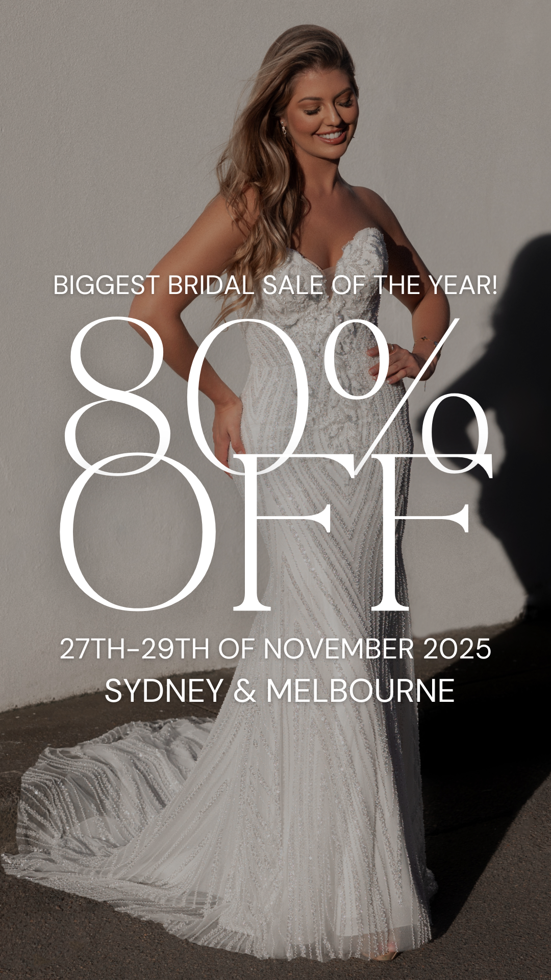 Countdown to Romance: Get 80% OFF on your dream wedding dress! From $500 on 27th - 29th of November or stock lasts only in Melbourne and Sydney!