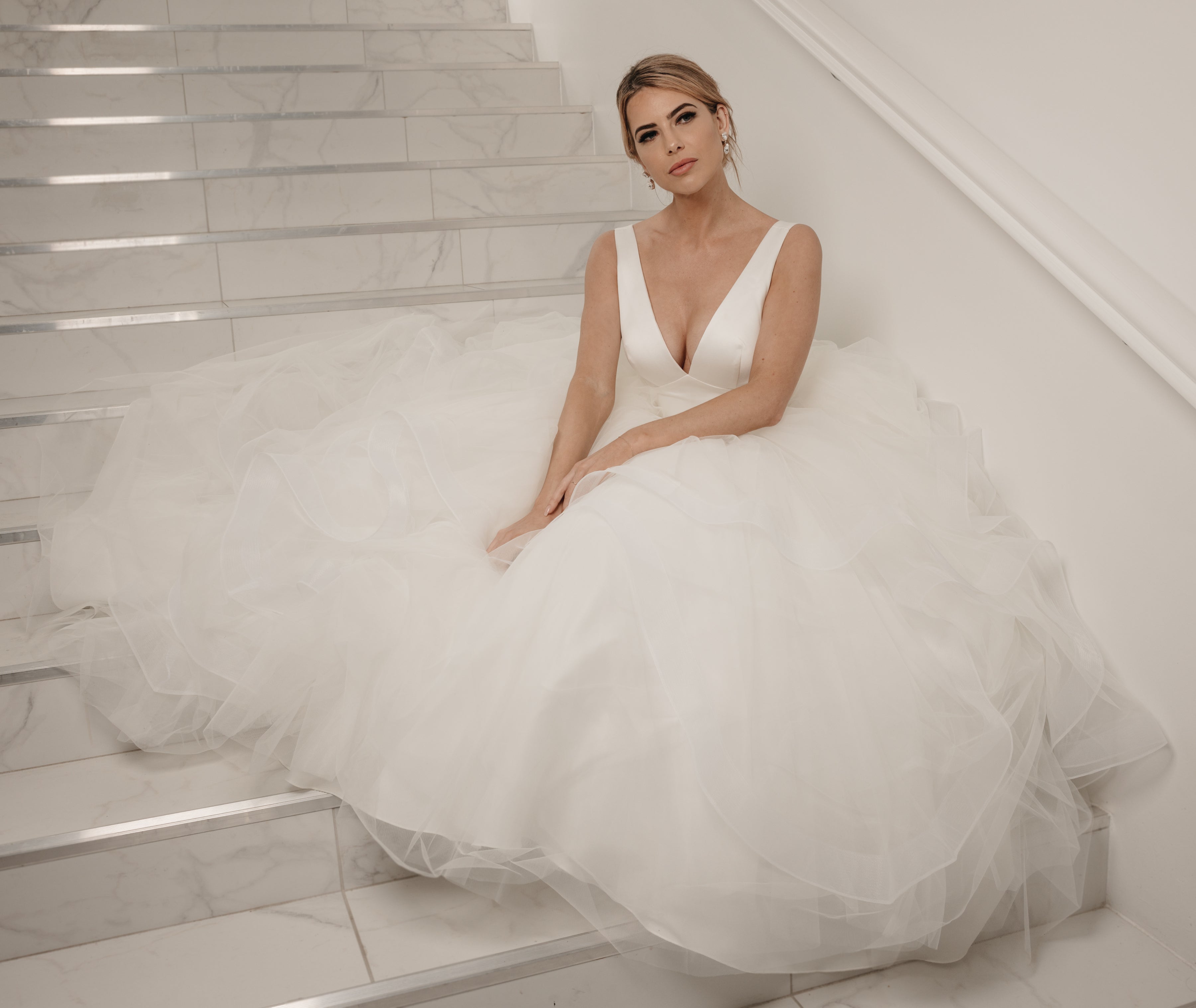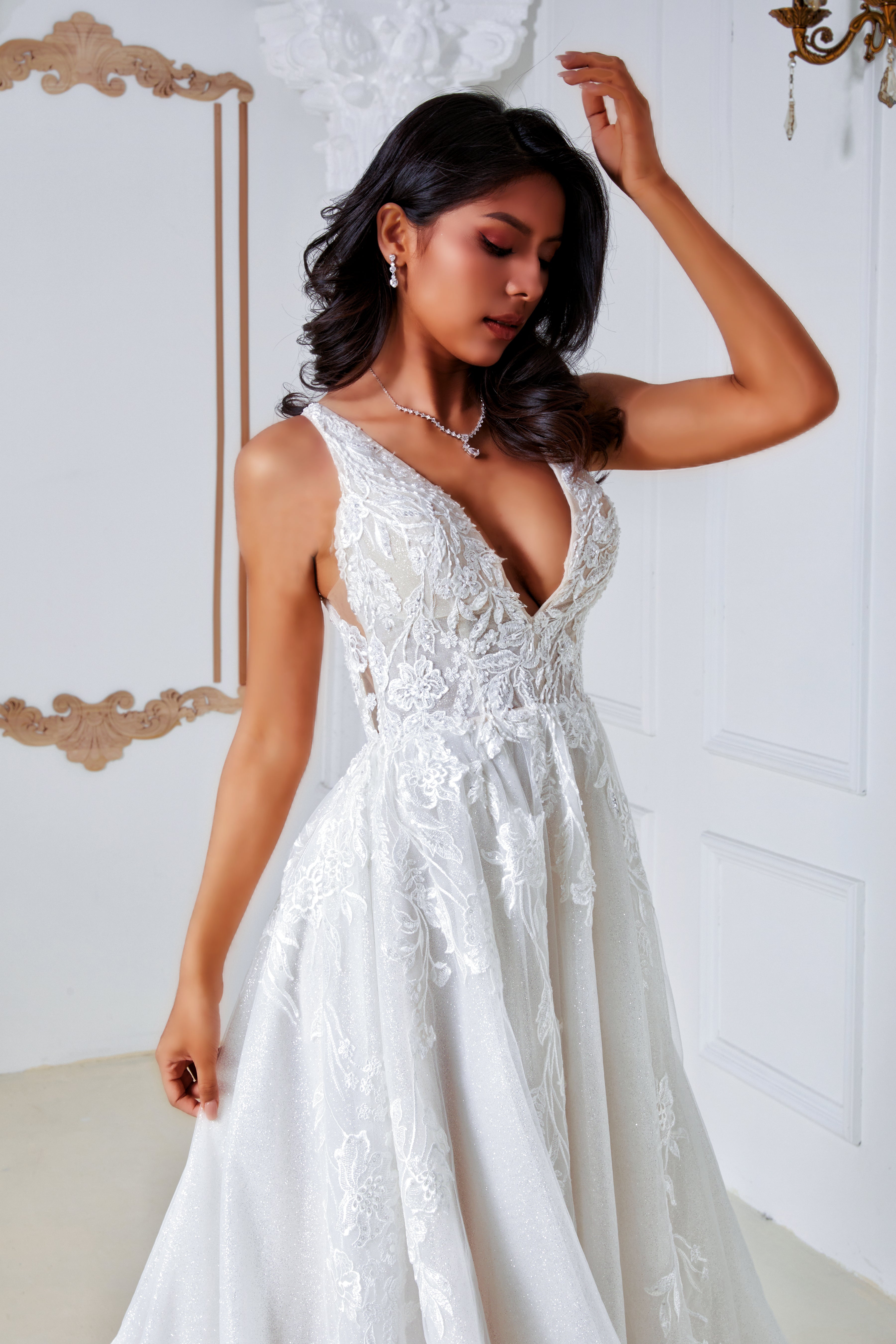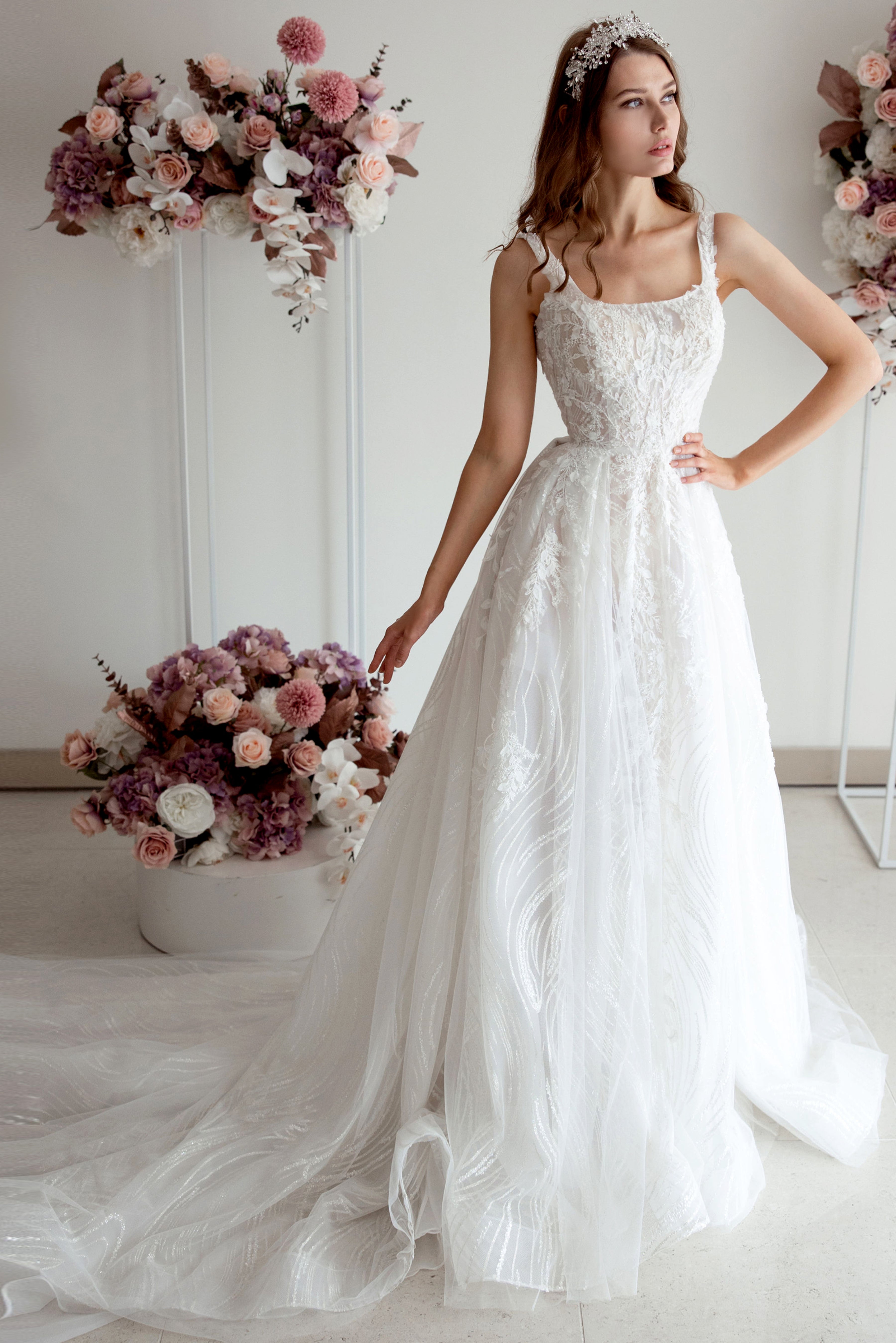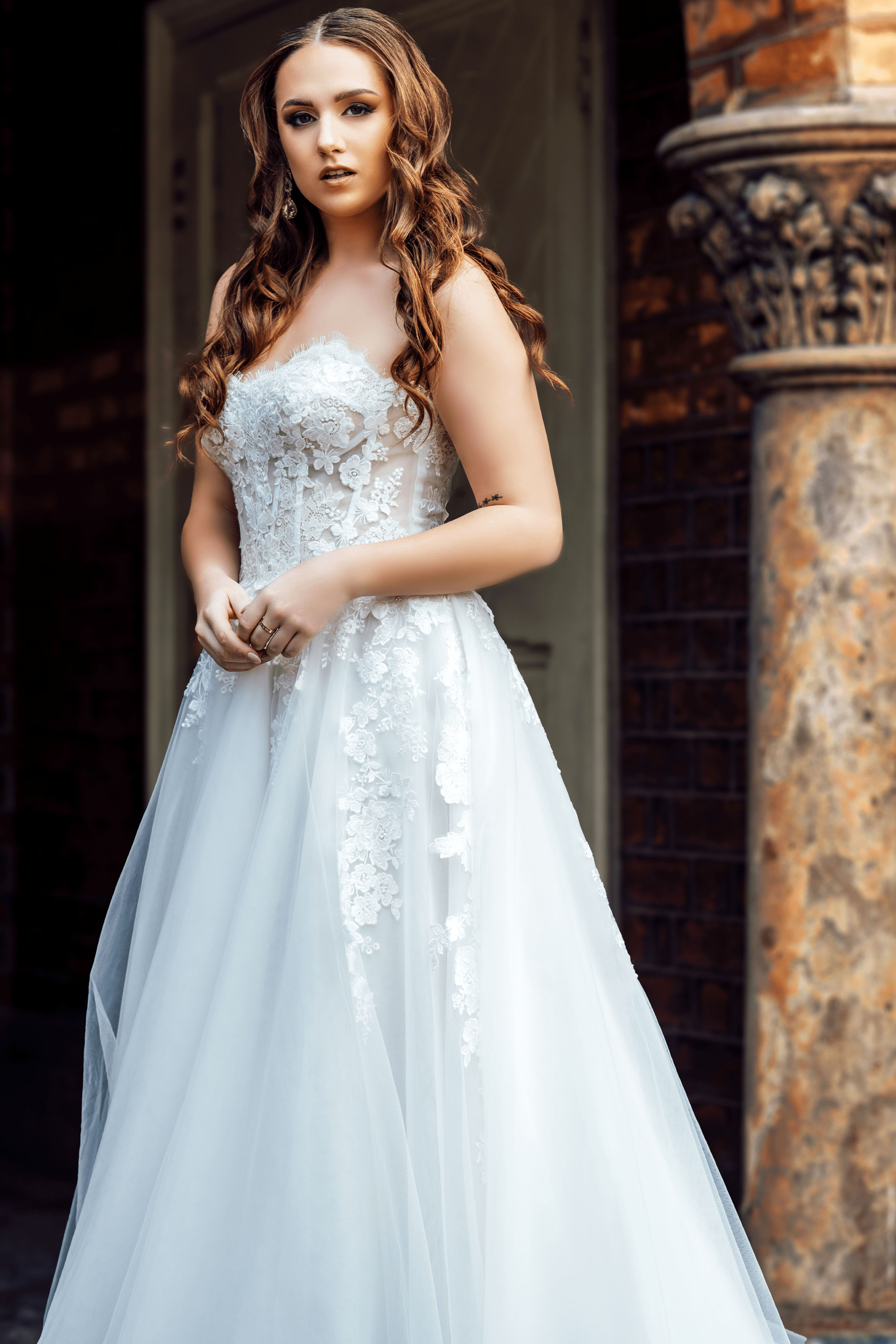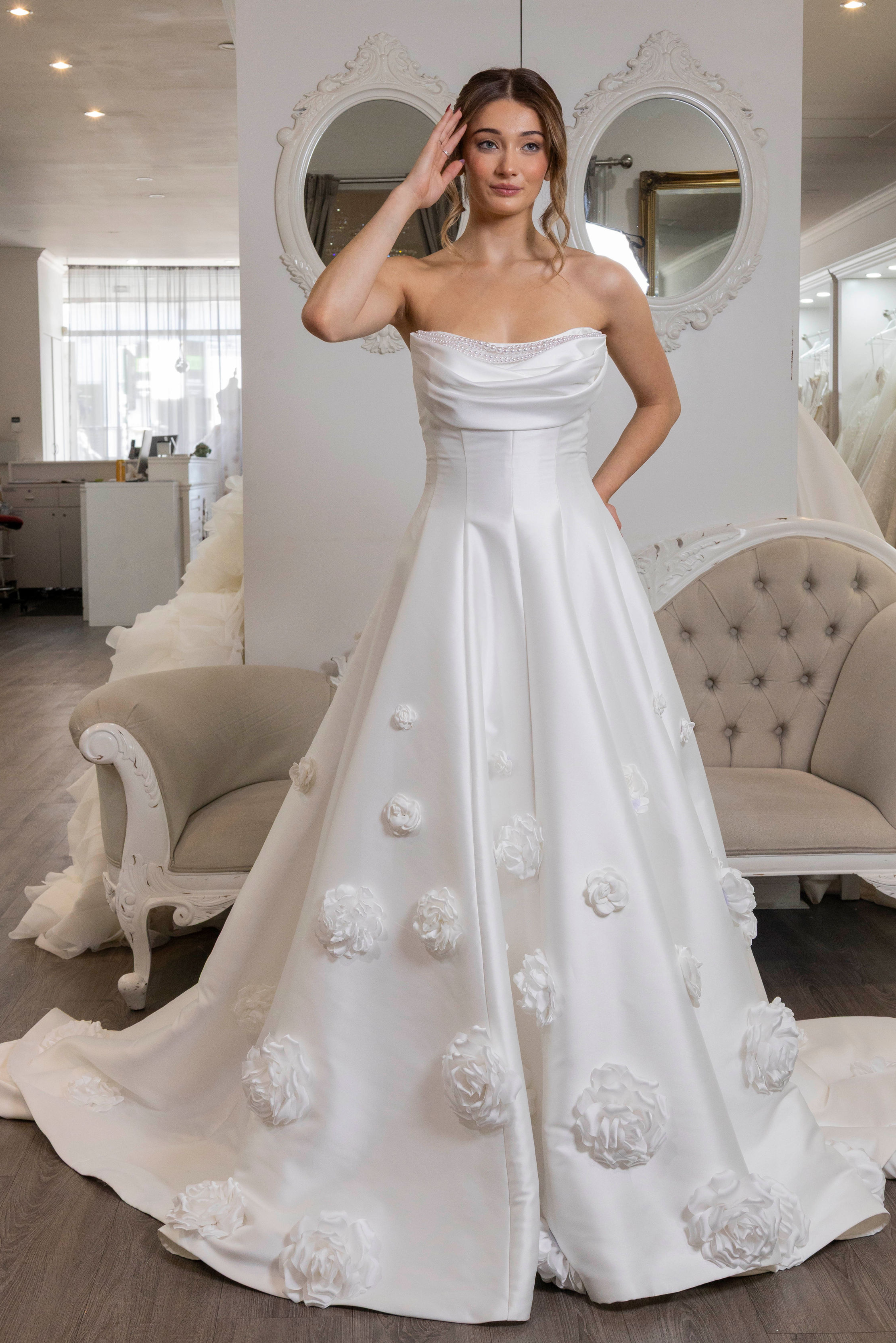 Christina Rossiβs collection of A-line gowns includes timeless, elegant, modern & chic gowns to dresses that are perfect for any wedding theme. The A-line cut flatters a variety of body types, providing a perfect blend of comfort and sophistication. Whether you envision a minimalistic design with clean lines or a more elaborate gown with intricate lace and embellishments, our collection offers something for every bride.