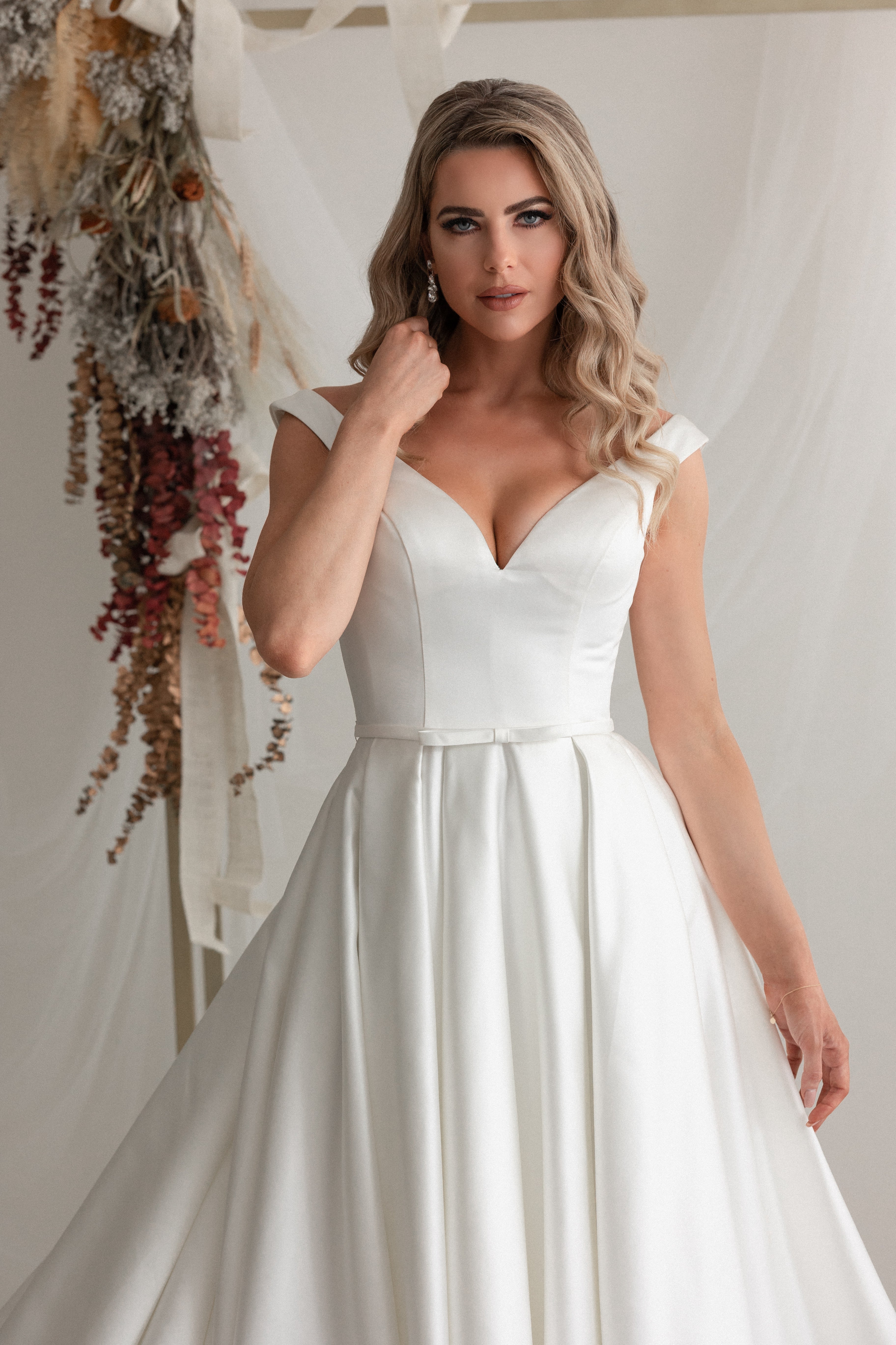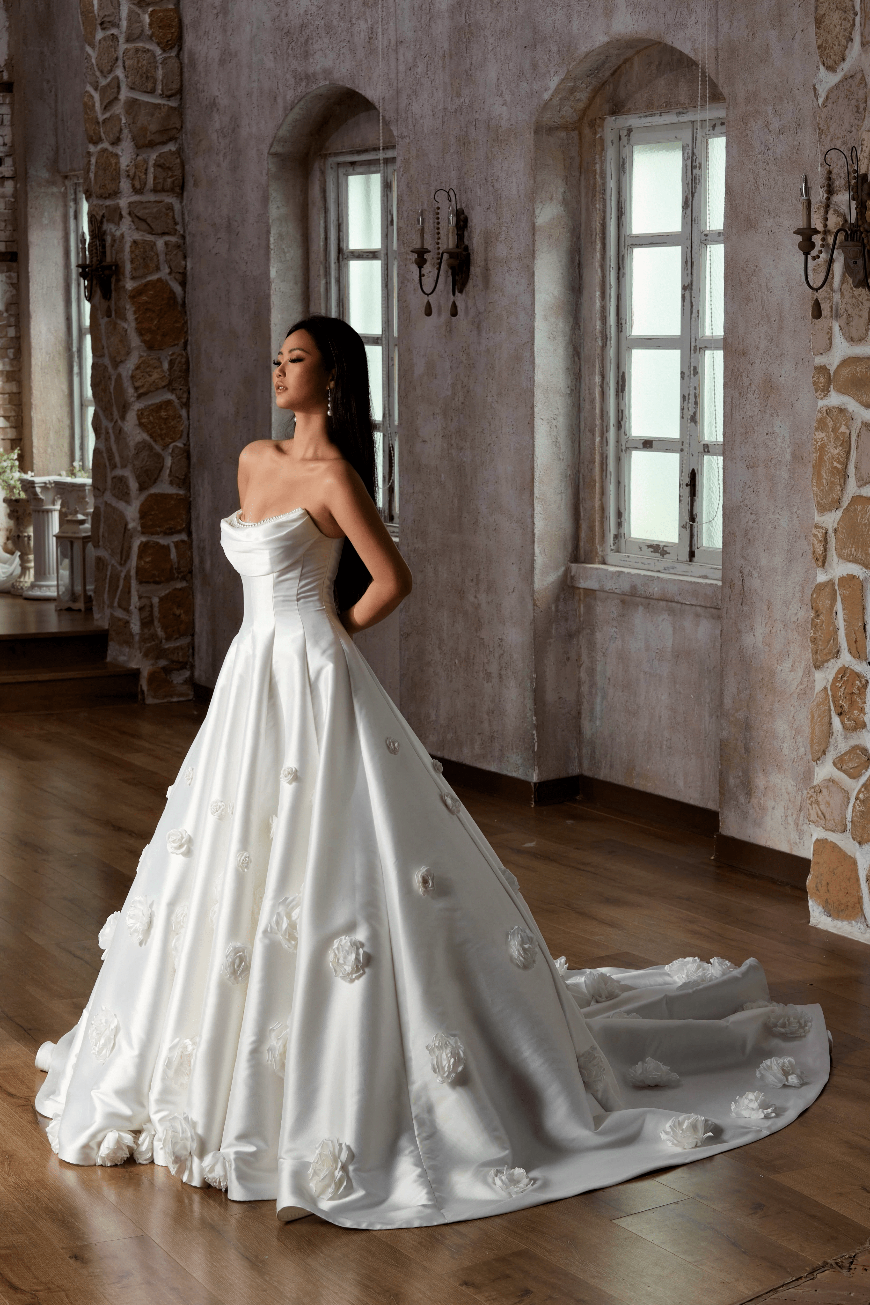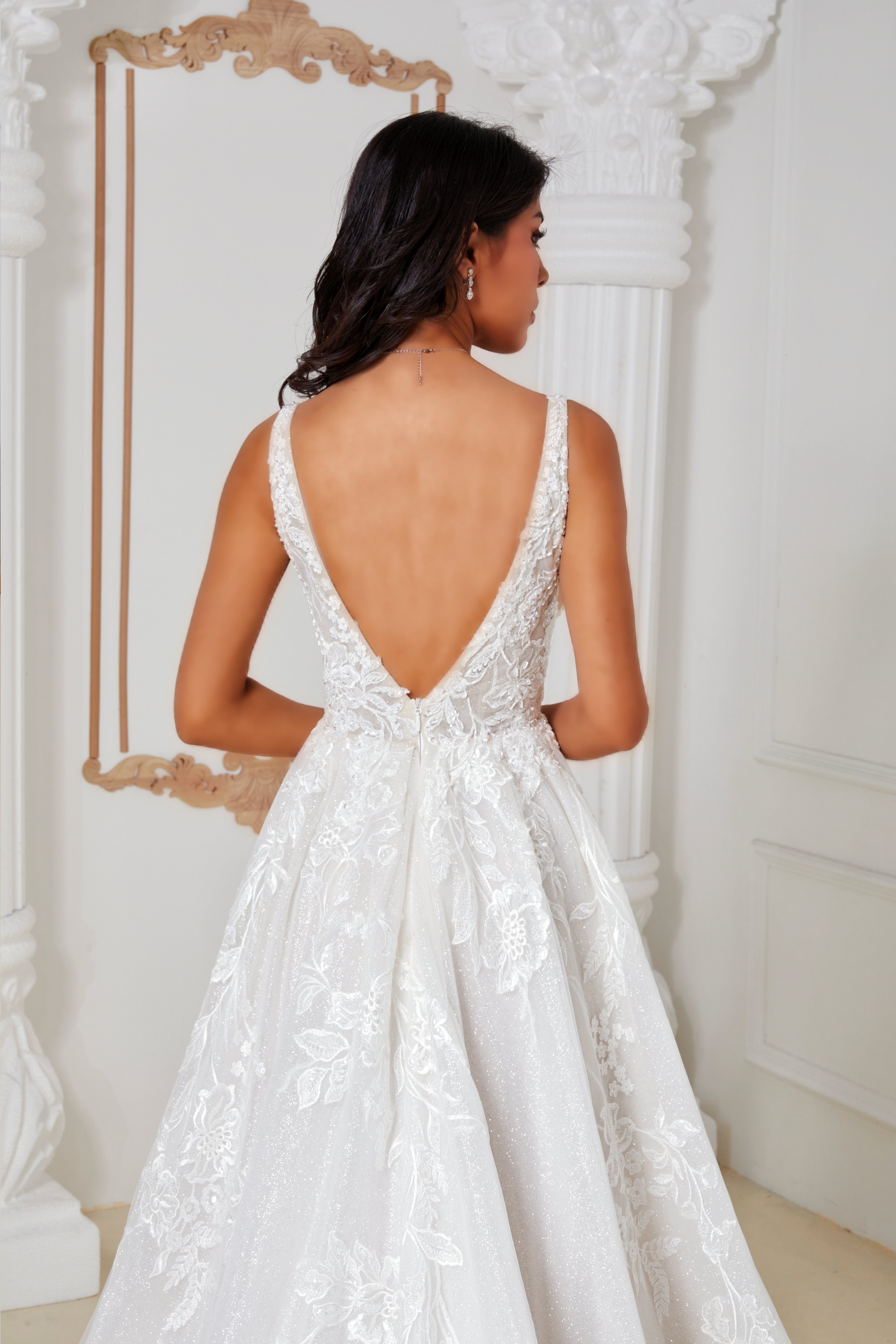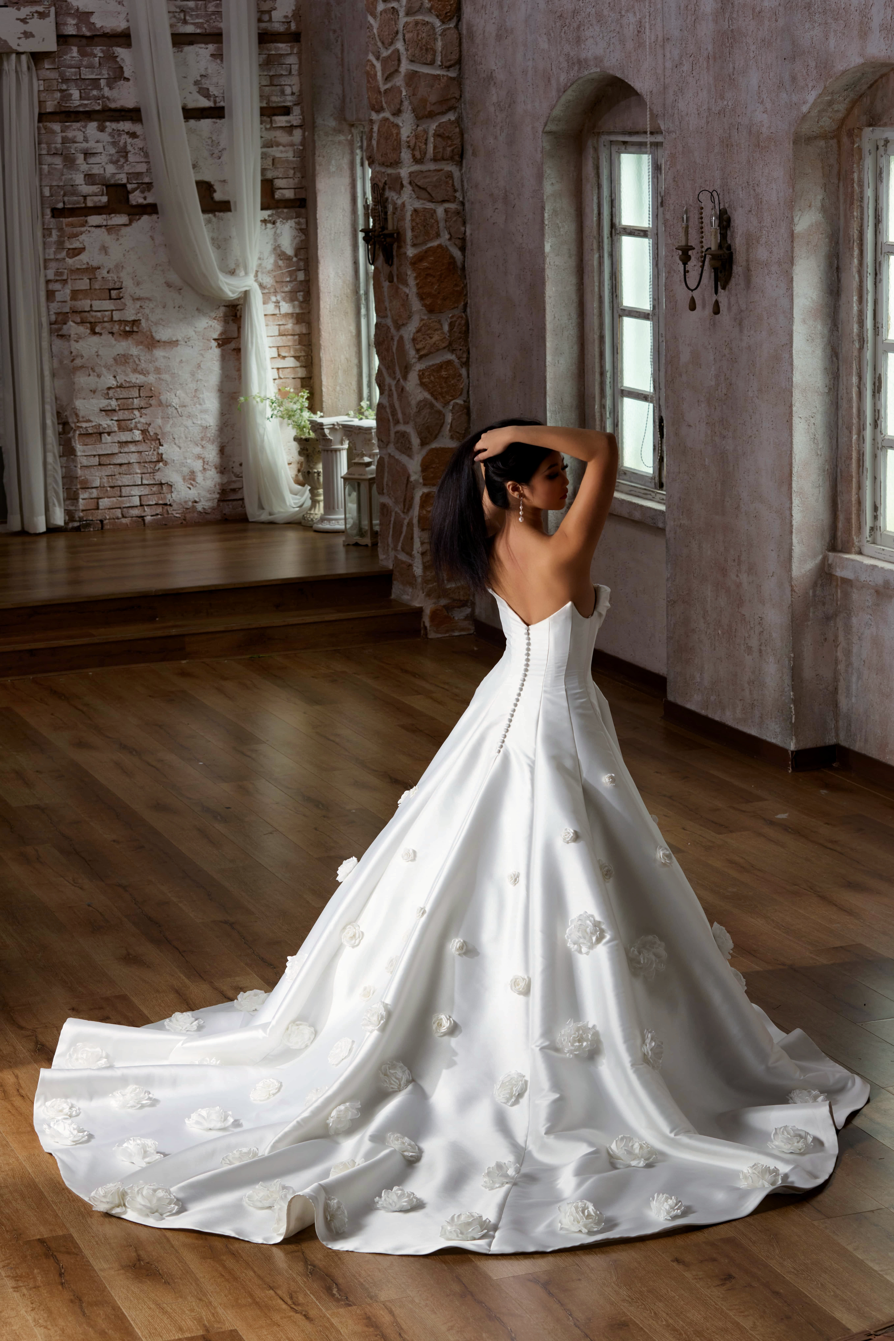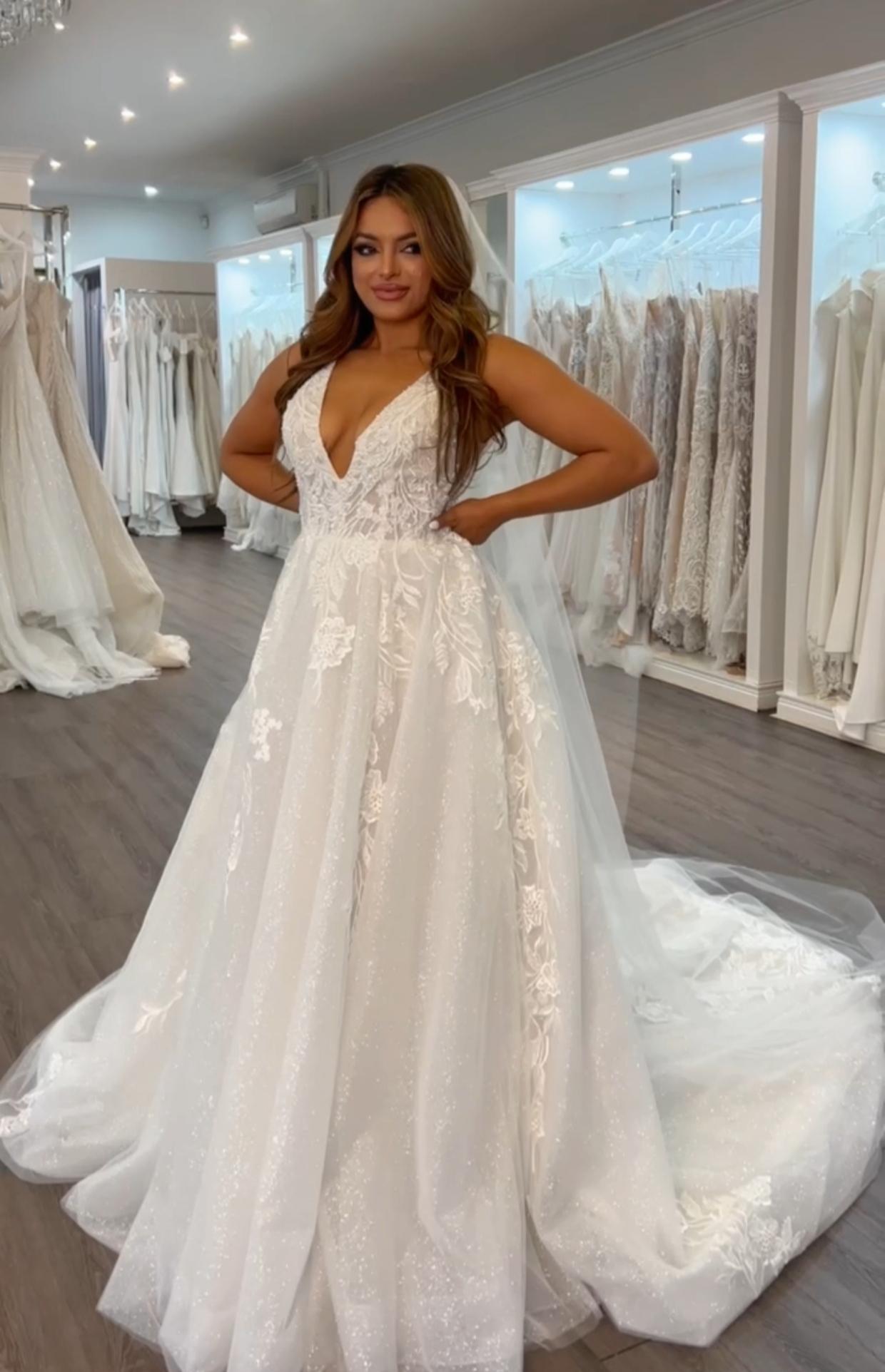 Christina Rossiβs collection of A-line gowns includes timeless, elegant, modern & chic gowns to dresses that are perfect for any wedding theme. The A-line cut flatters a variety of body types, providing a perfect blend of comfort and sophistication. Whether you envision a minimalistic design with clean lines or a more elaborate gown with intricate lace and embellishments, our collection offers something for every bride.