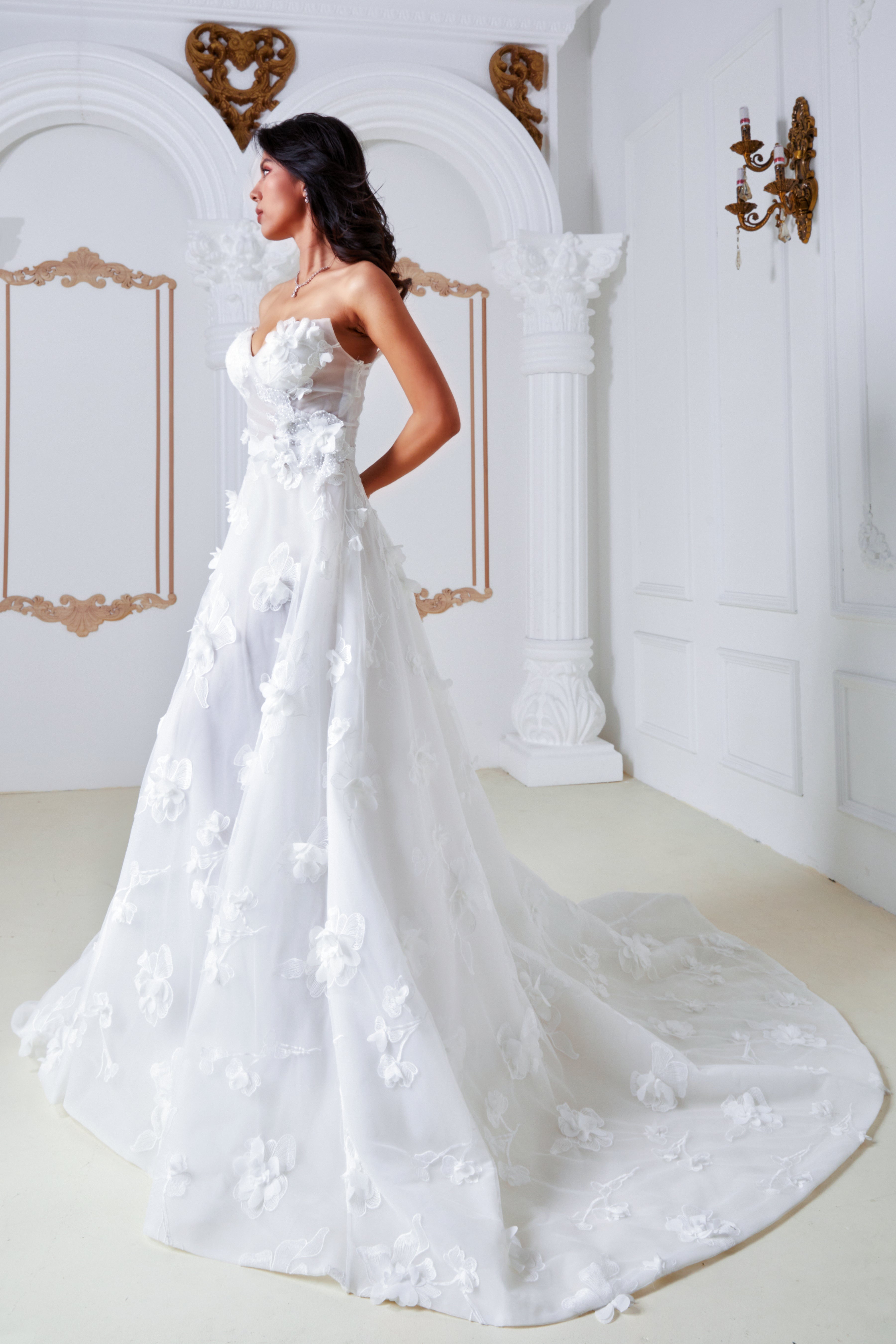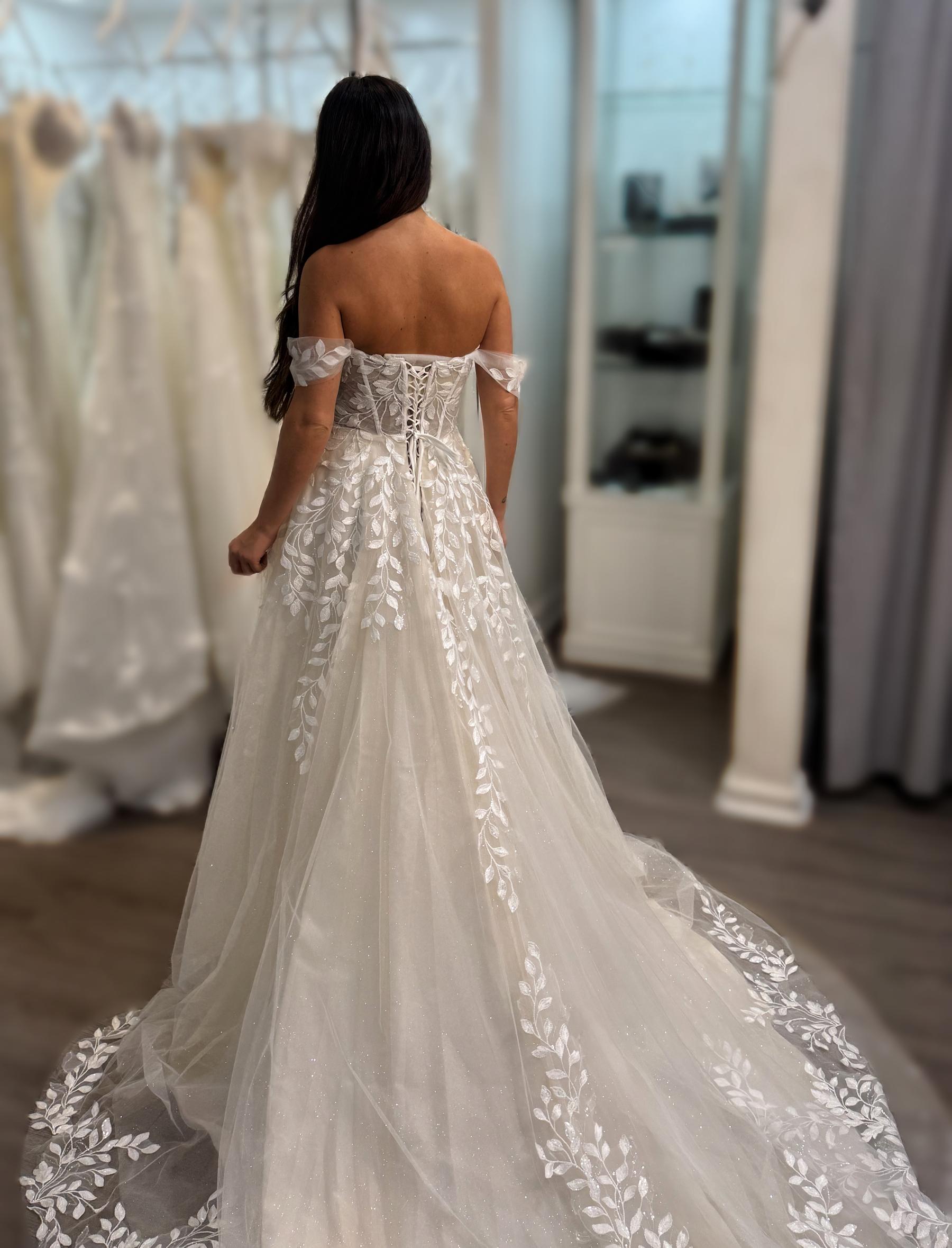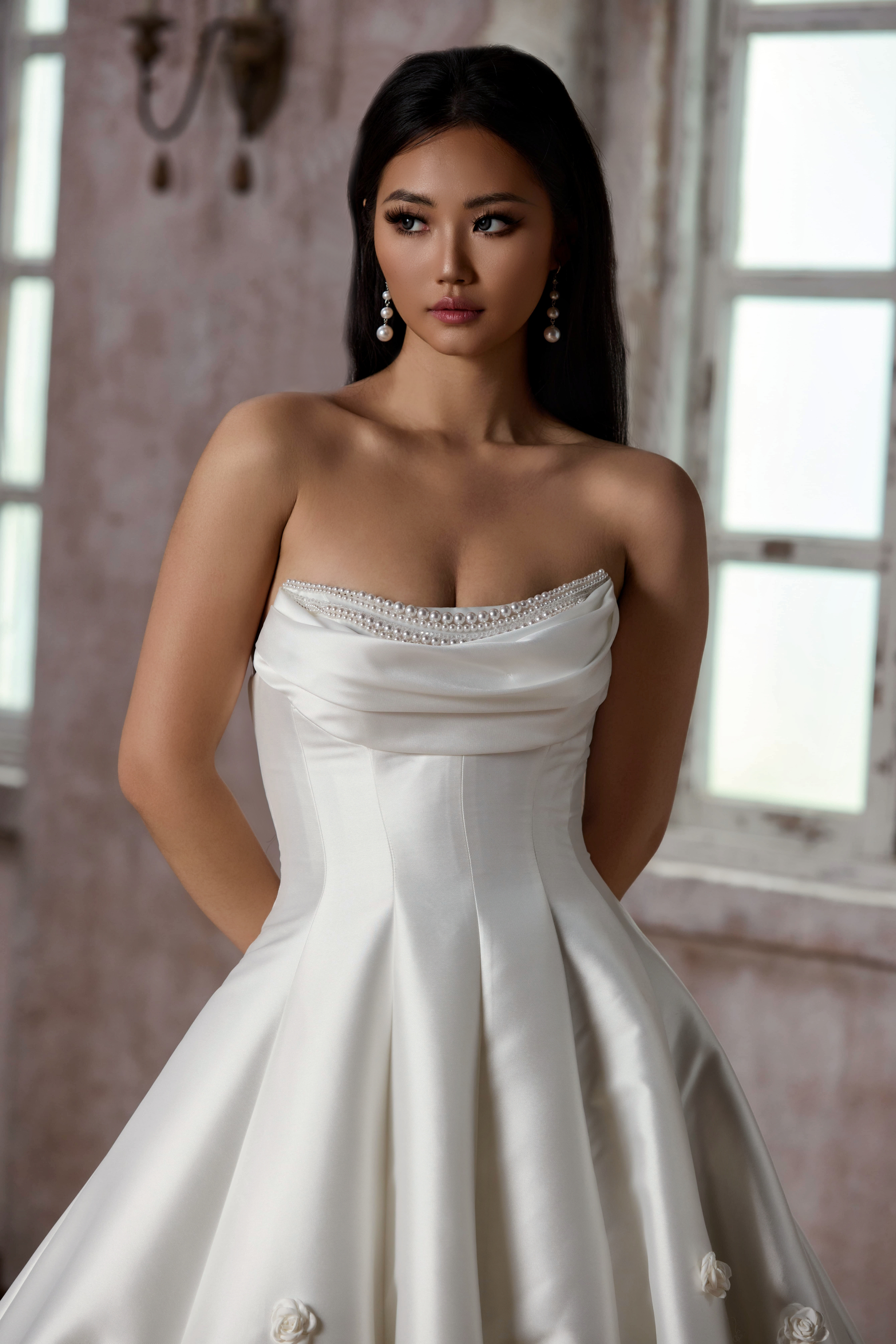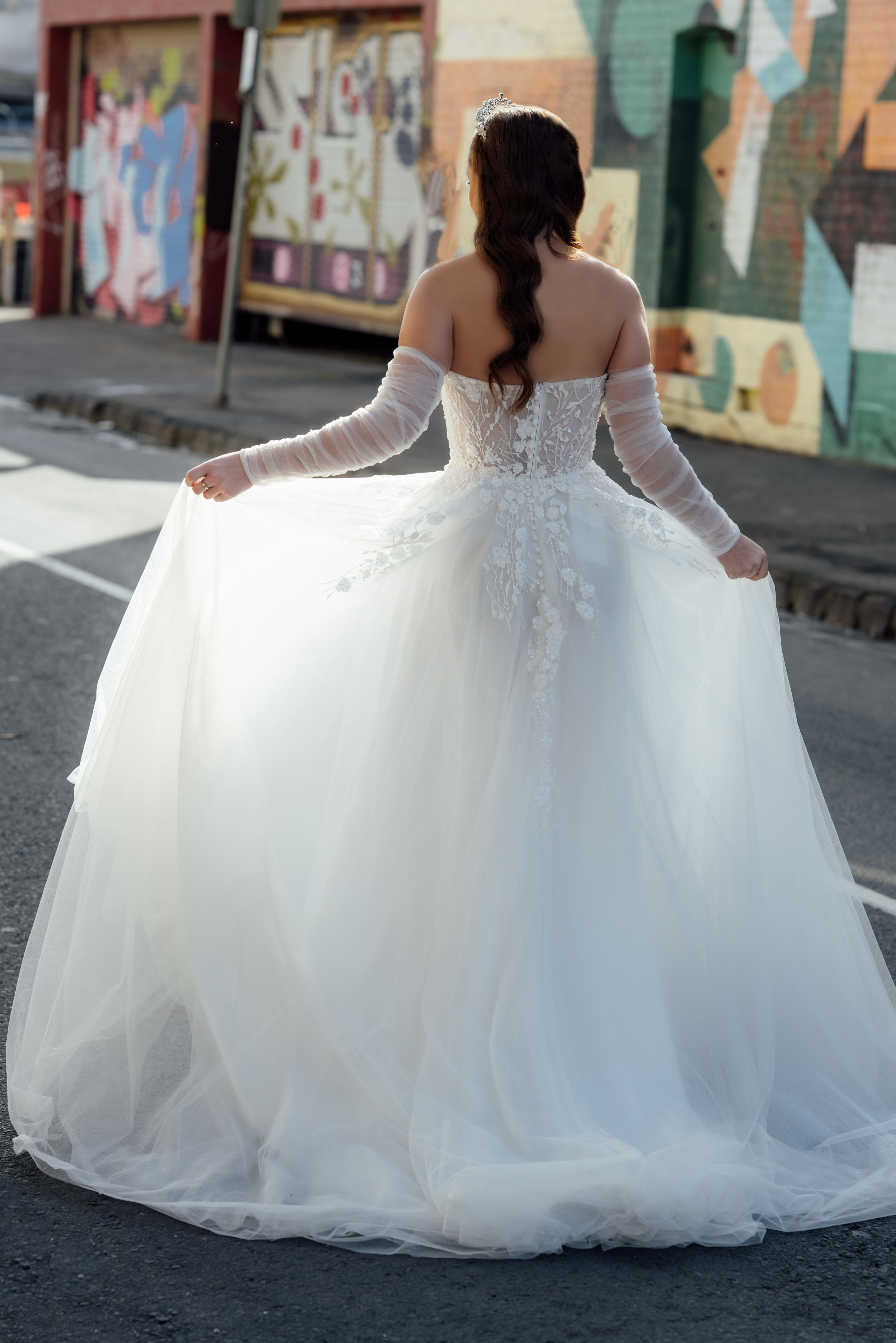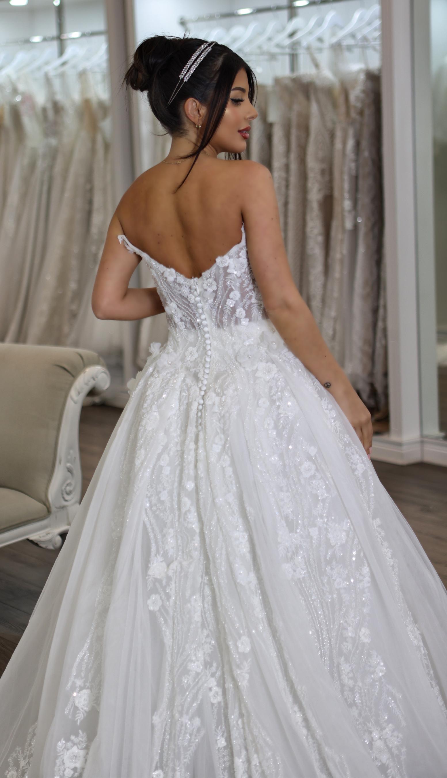 Christina Rossiβs collection of A-line gowns includes timeless, elegant, modern & chic gowns to dresses that are perfect for any wedding theme. The A-line cut flatters a variety of body types, providing a perfect blend of comfort and sophistication. Whether you envision a minimalistic design with clean lines or a more elaborate gown with intricate lace and embellishments, our collection offers something for every bride.