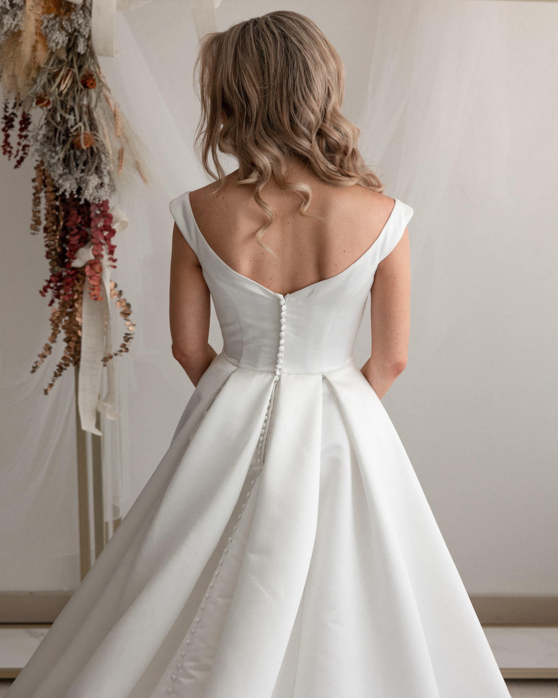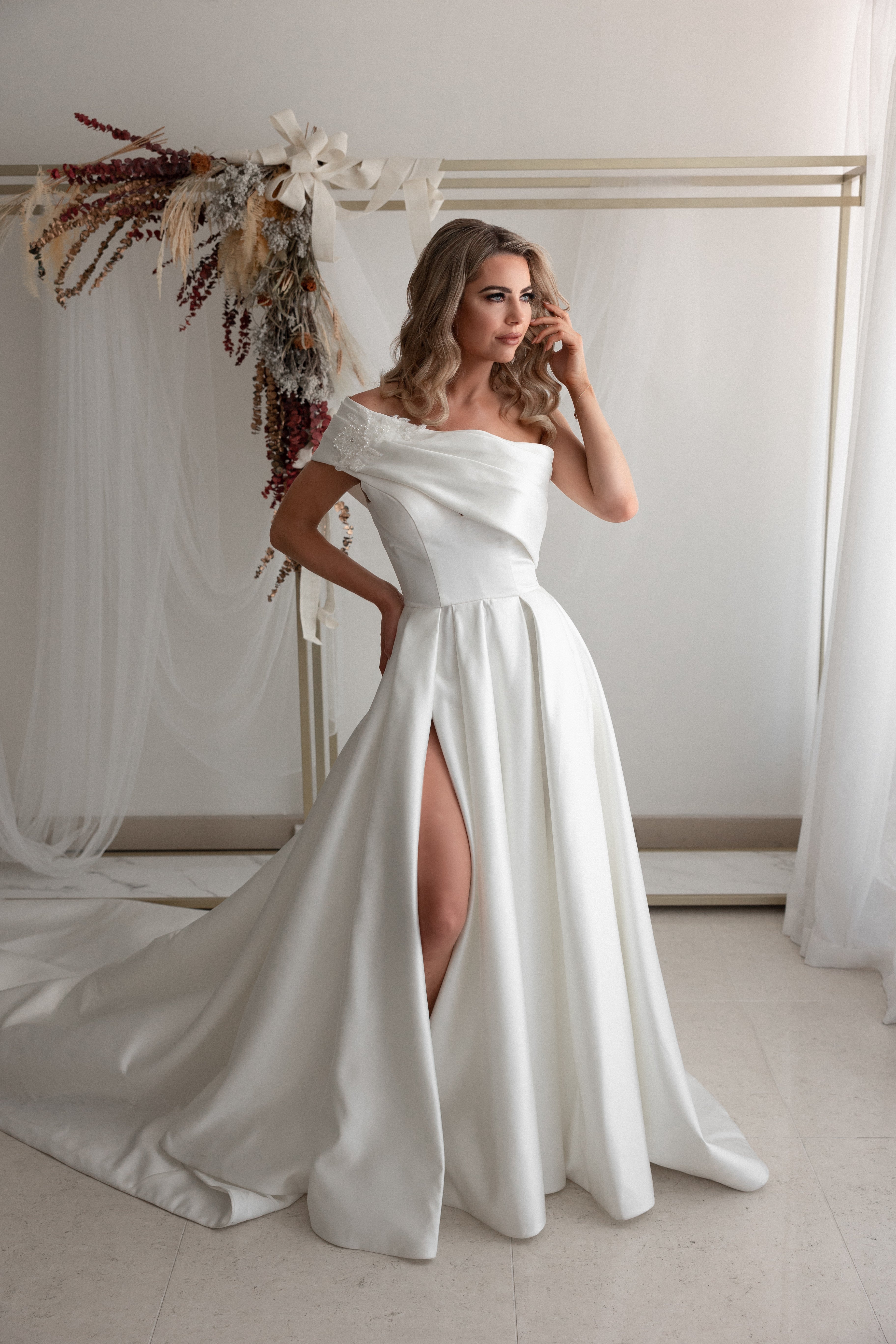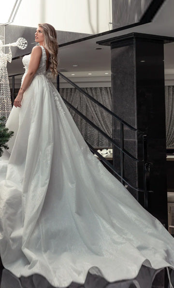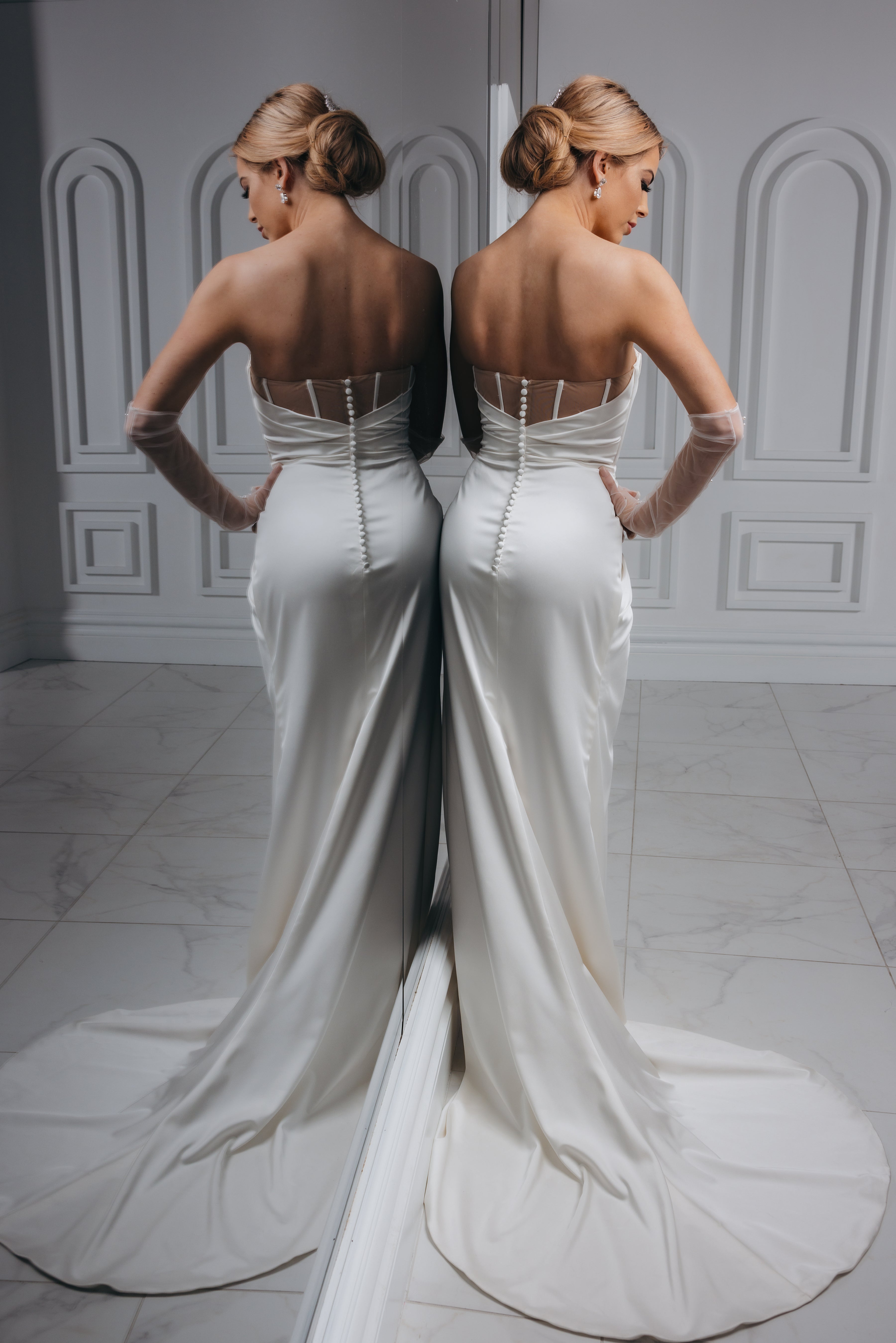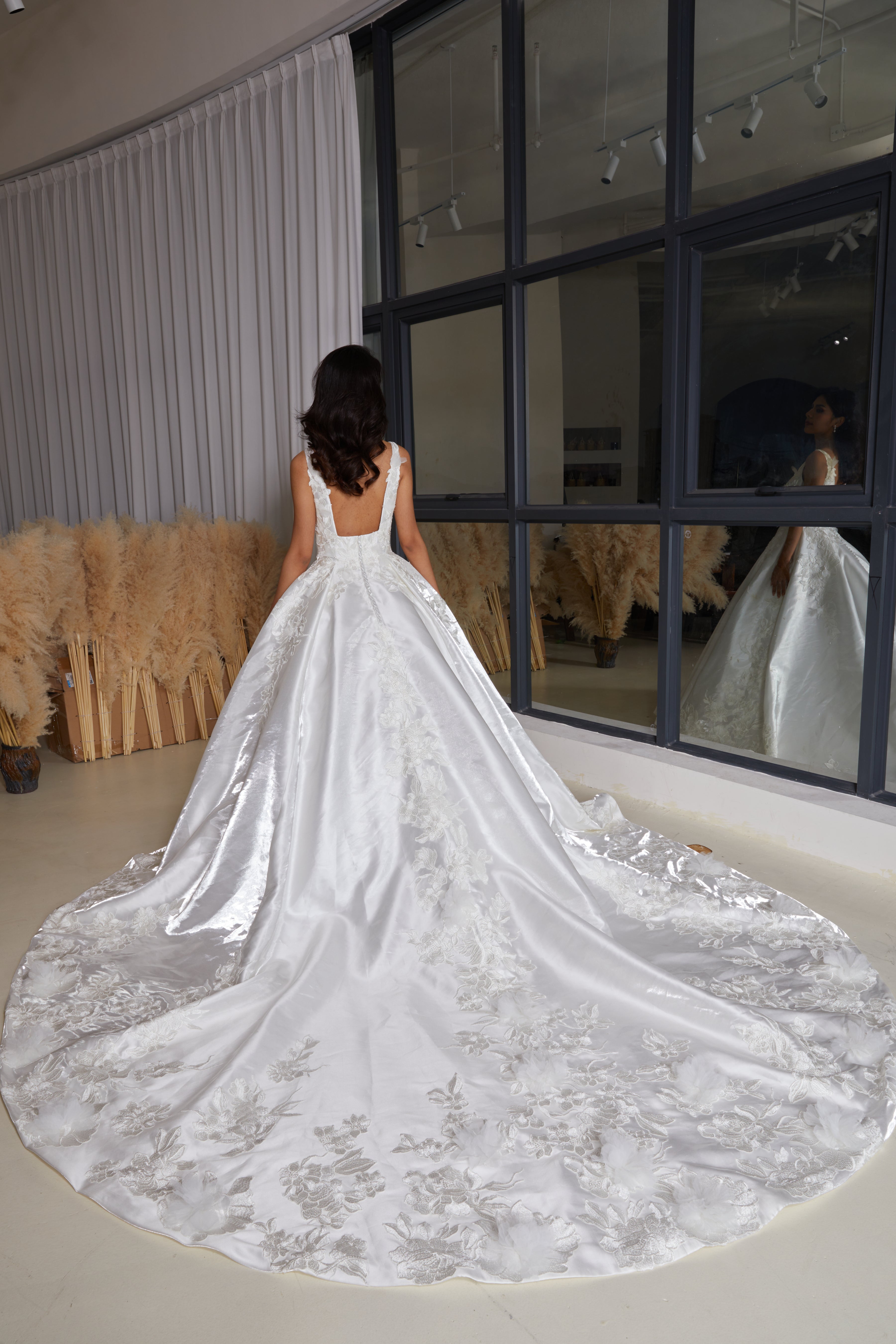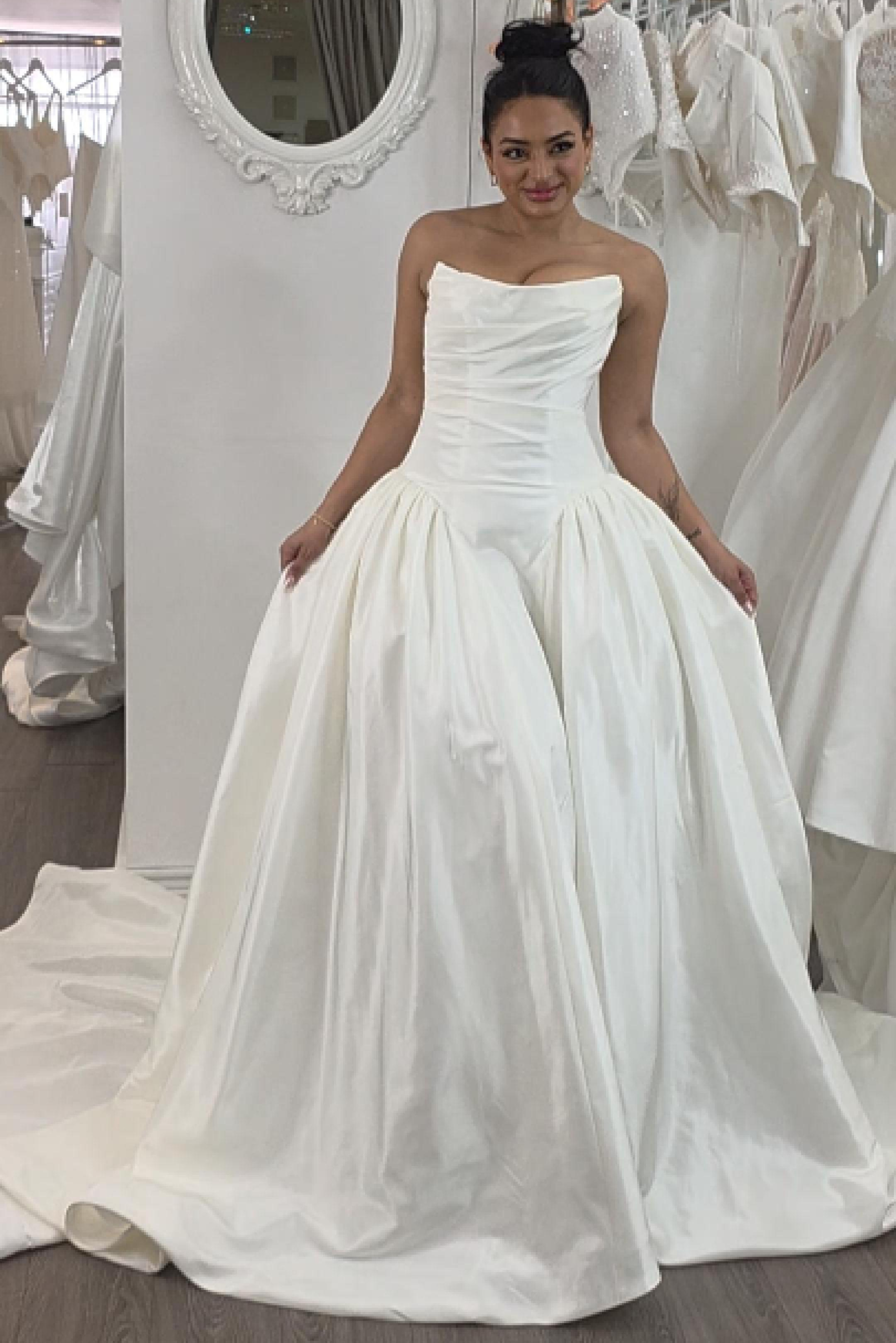 Christina Rossiβs collection of A-line gowns includes timeless, elegant, modern & chic gowns to dresses that are perfect for any wedding theme. The A-line cut flatters a variety of body types, providing a perfect blend of comfort and sophistication. Whether you envision a minimalistic design with clean lines or a more elaborate gown with intricate lace and embellishments, our collection offers something for every bride.