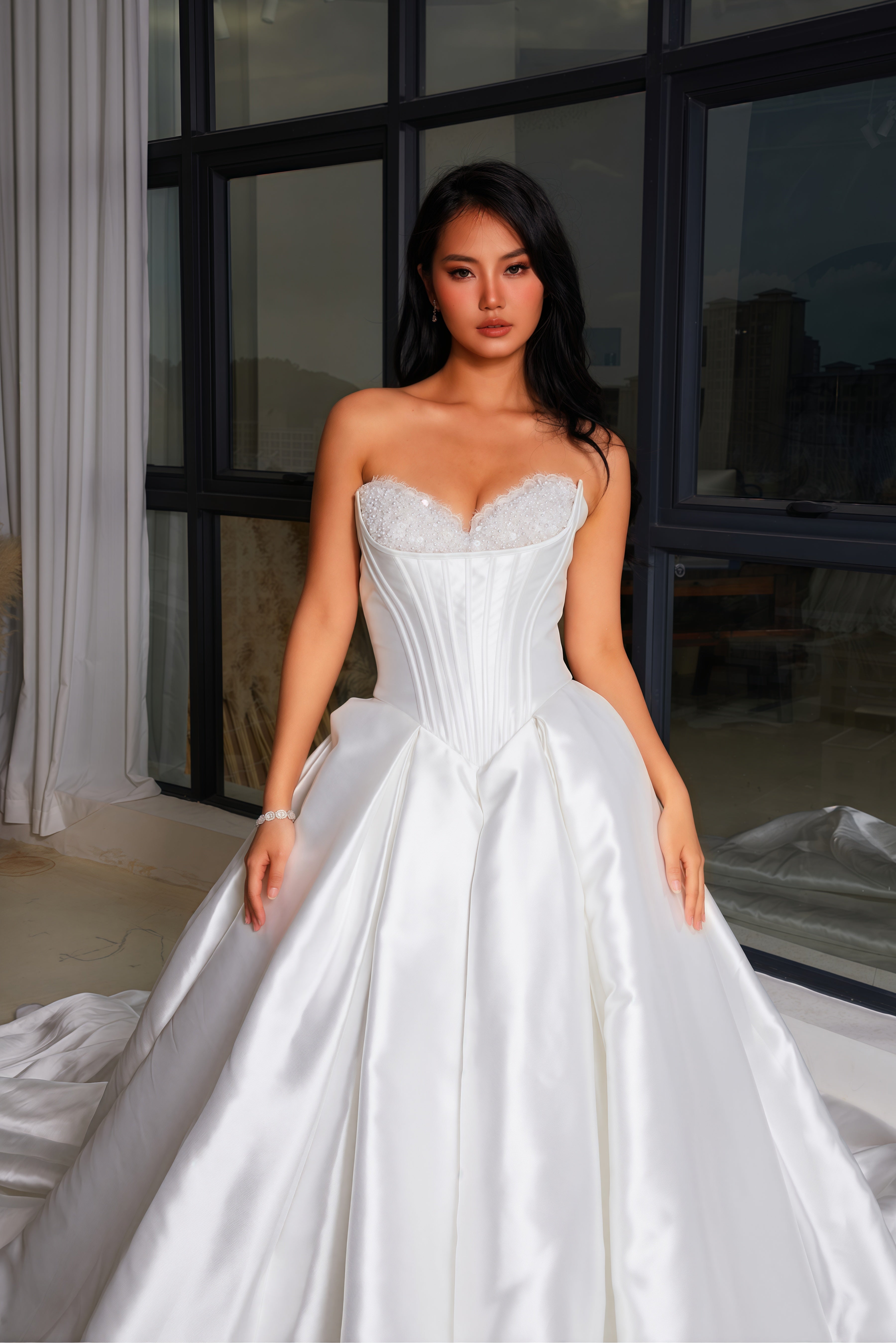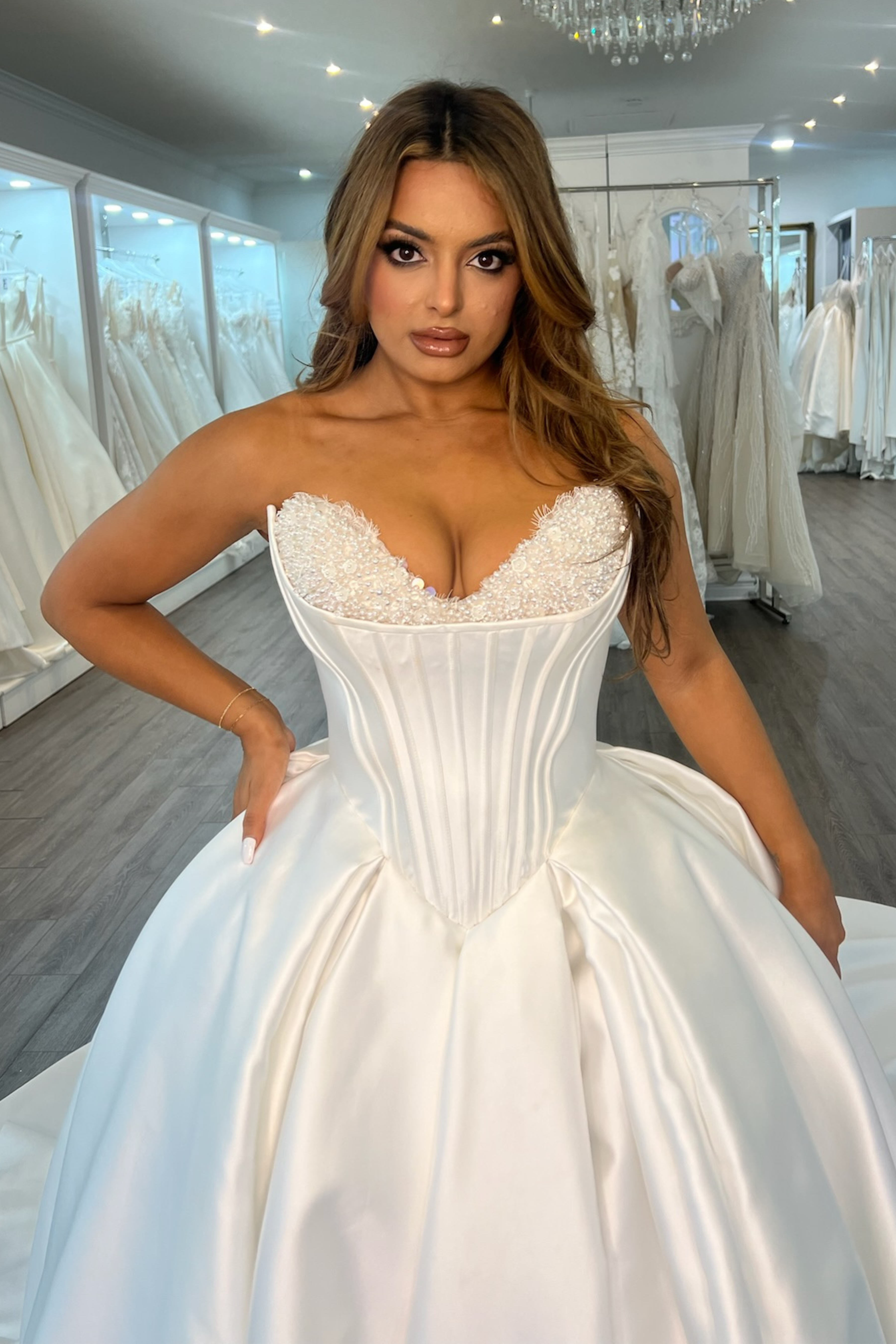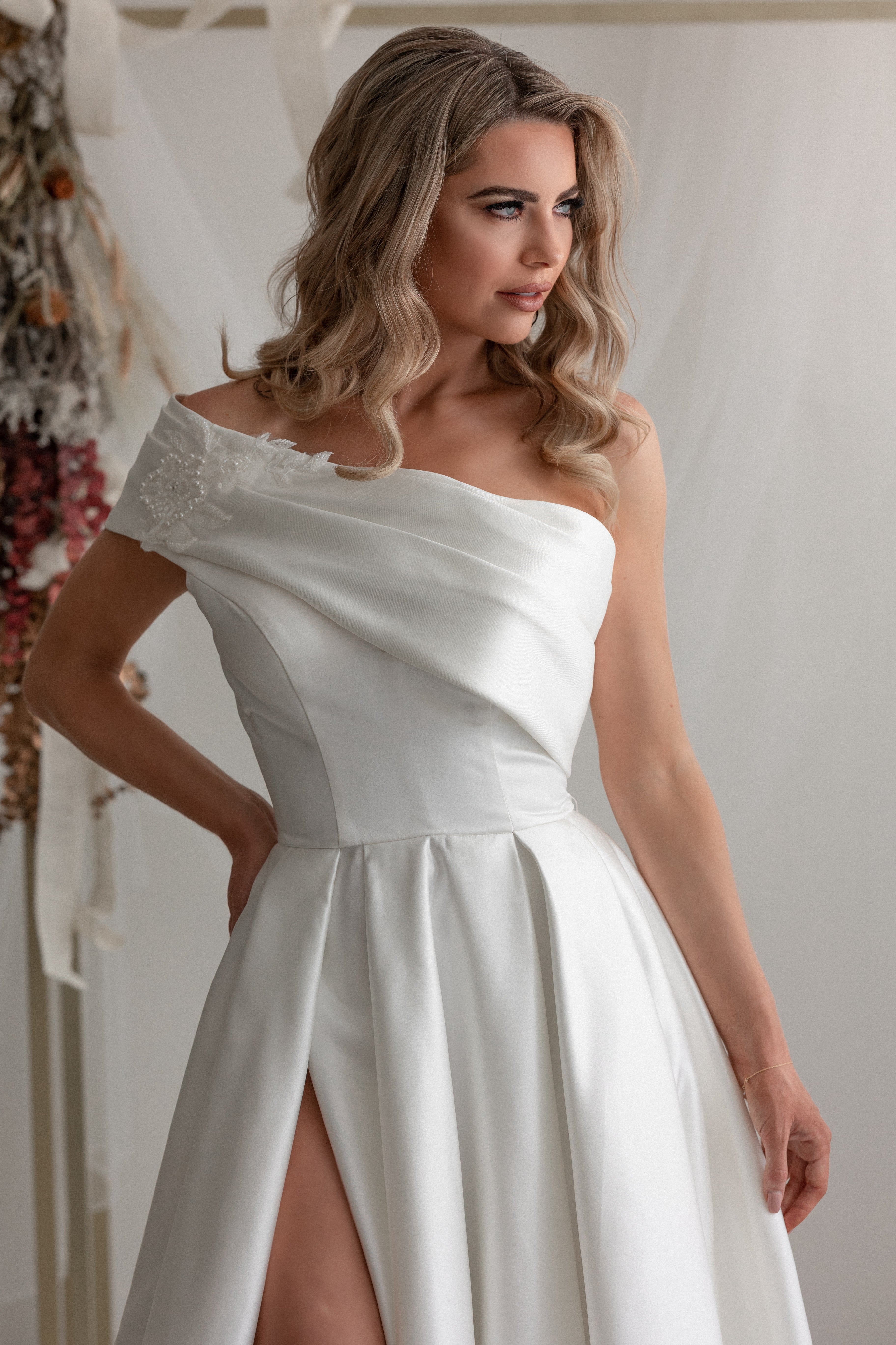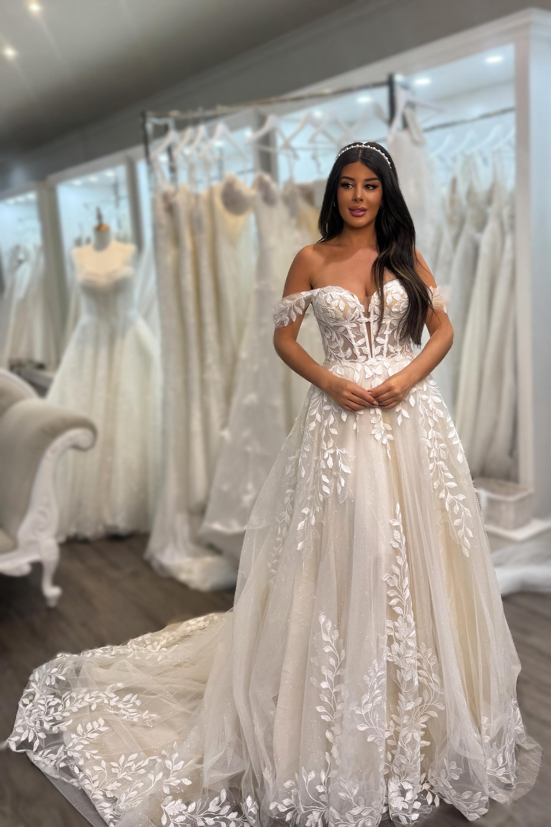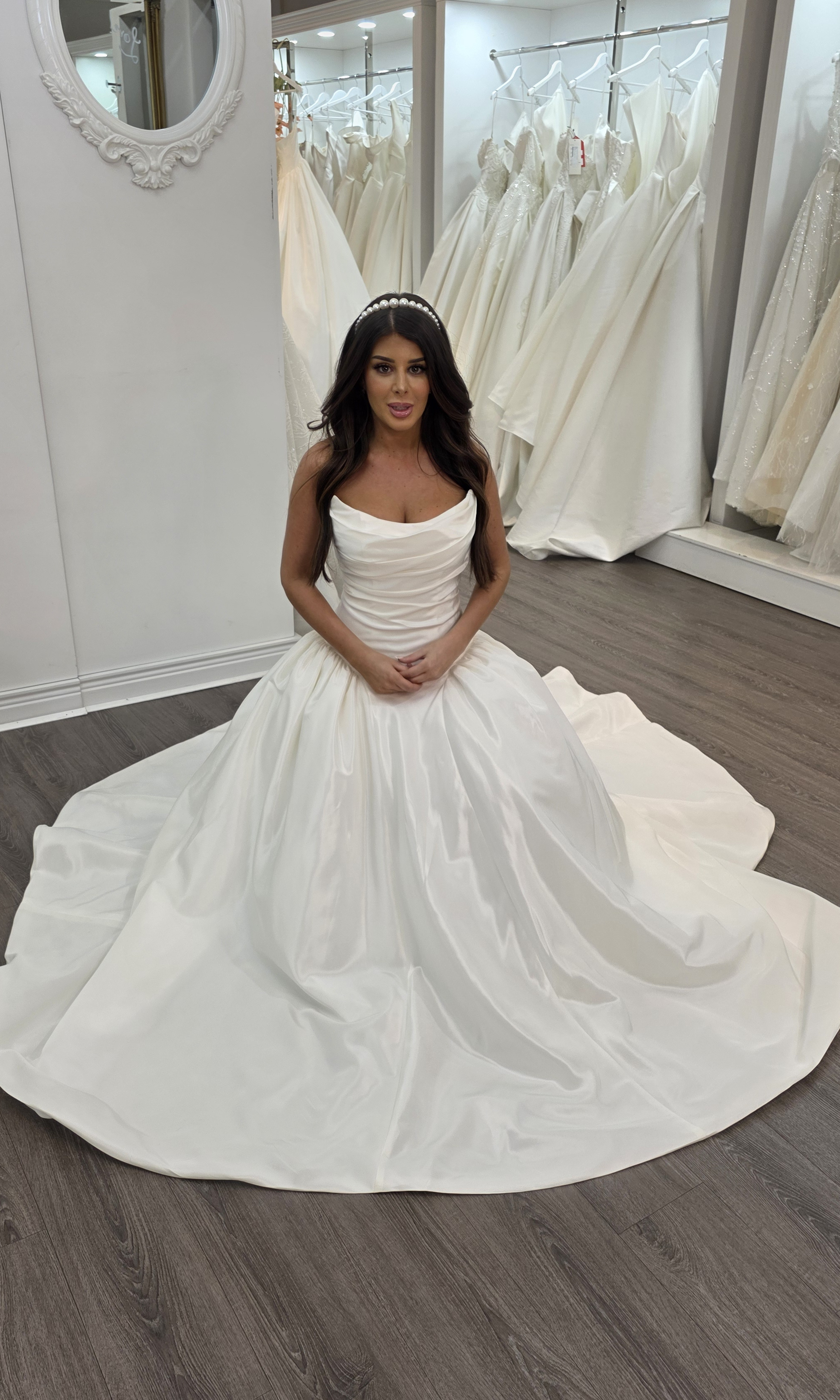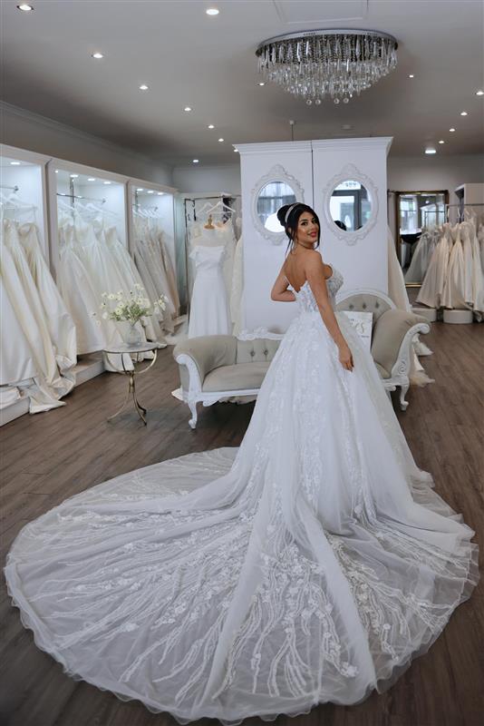 Christina Rossiβs collection of A-line gowns includes timeless, elegant, modern & chic gowns to dresses that are perfect for any wedding theme. The A-line cut flatters a variety of body types, providing a perfect blend of comfort and sophistication. Whether you envision a minimalistic design with clean lines or a more elaborate gown with intricate lace and embellishments, our collection offers something for every bride.