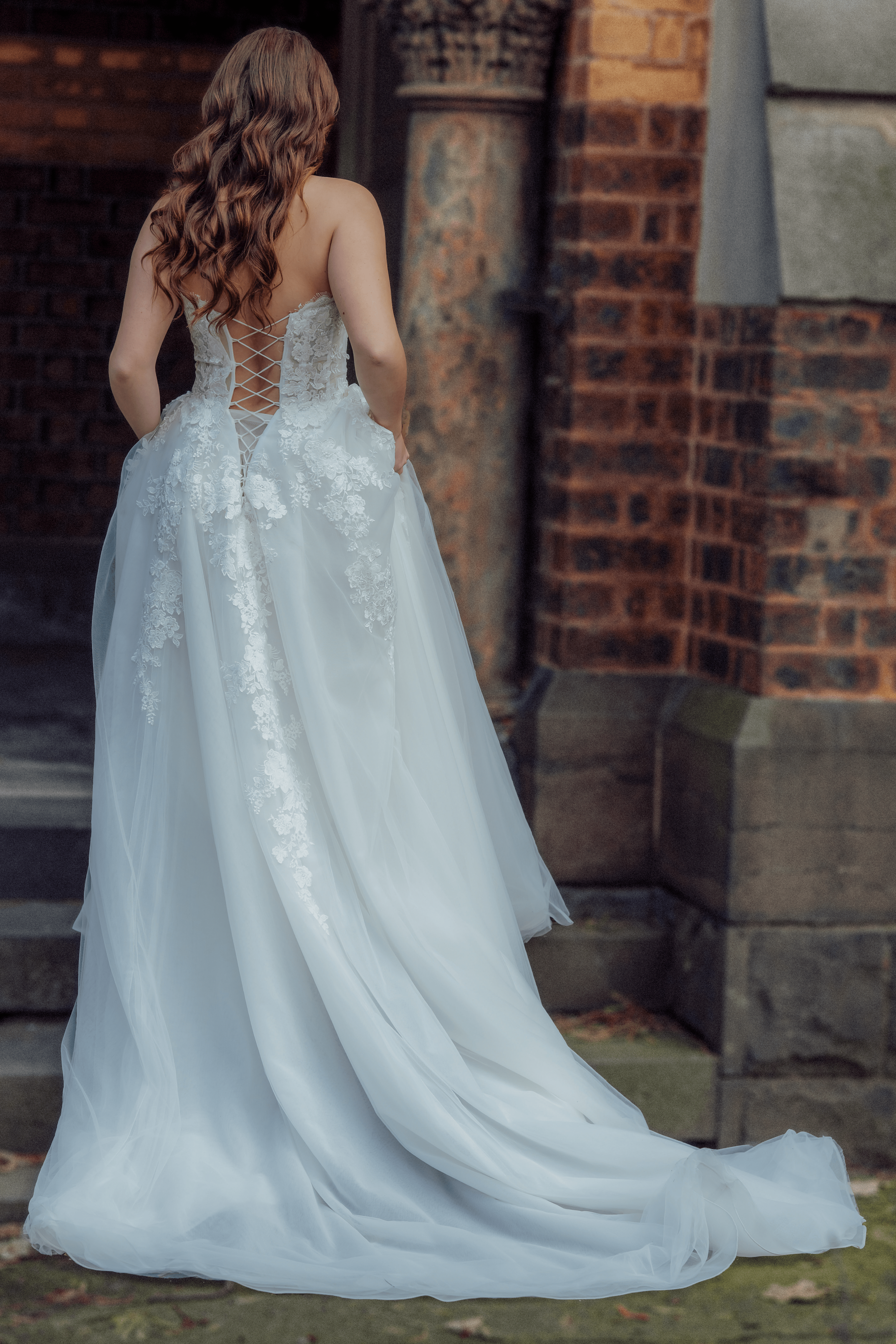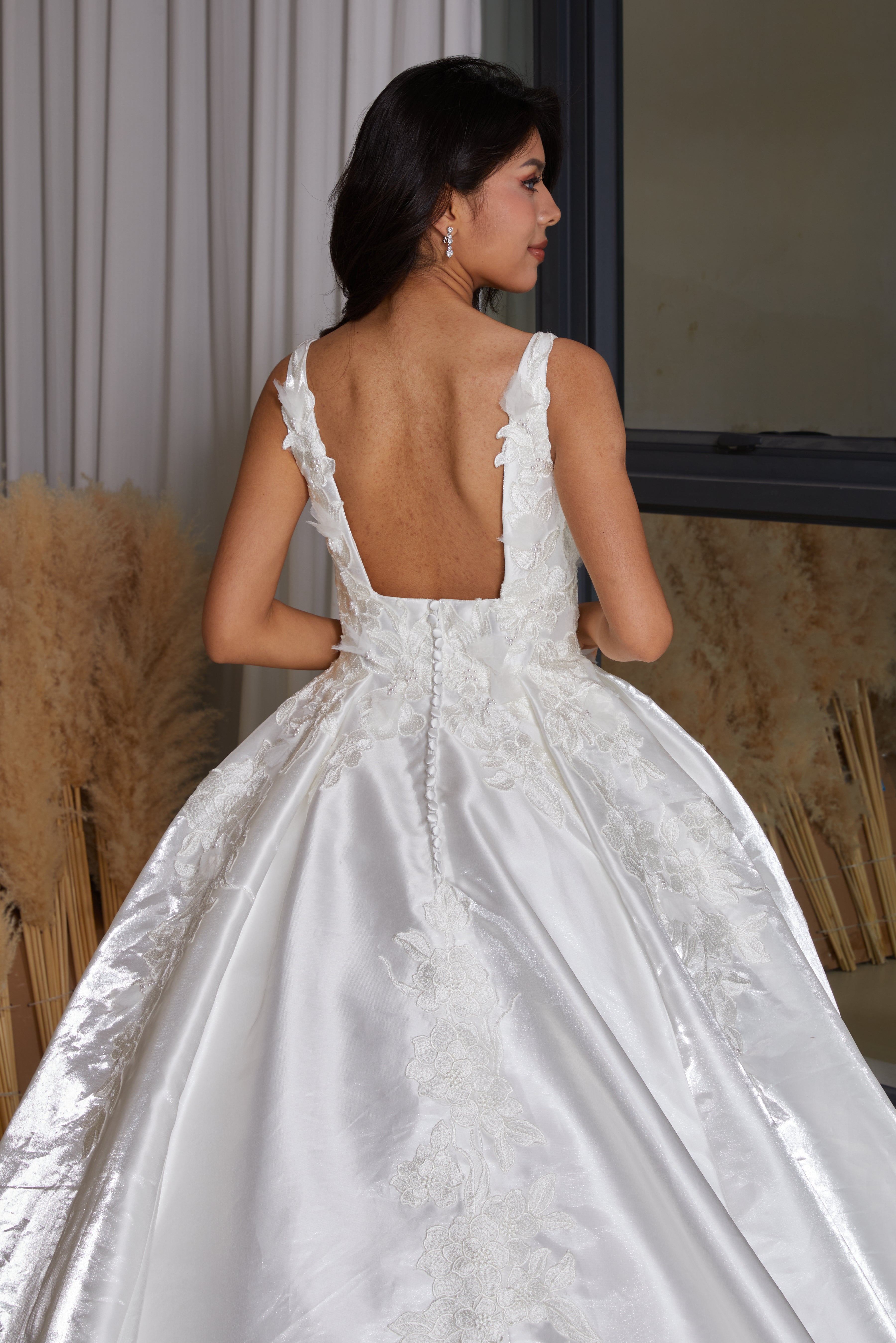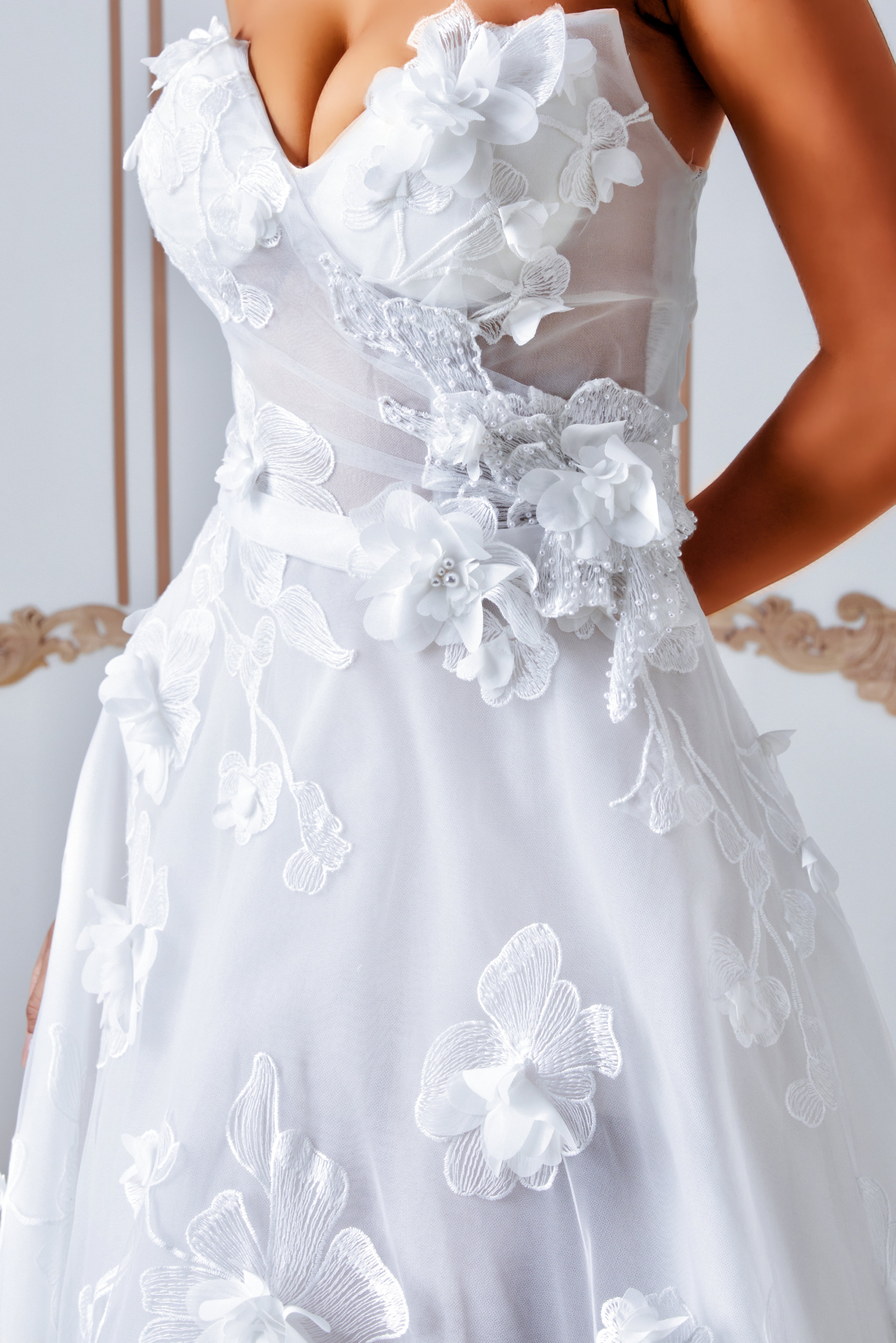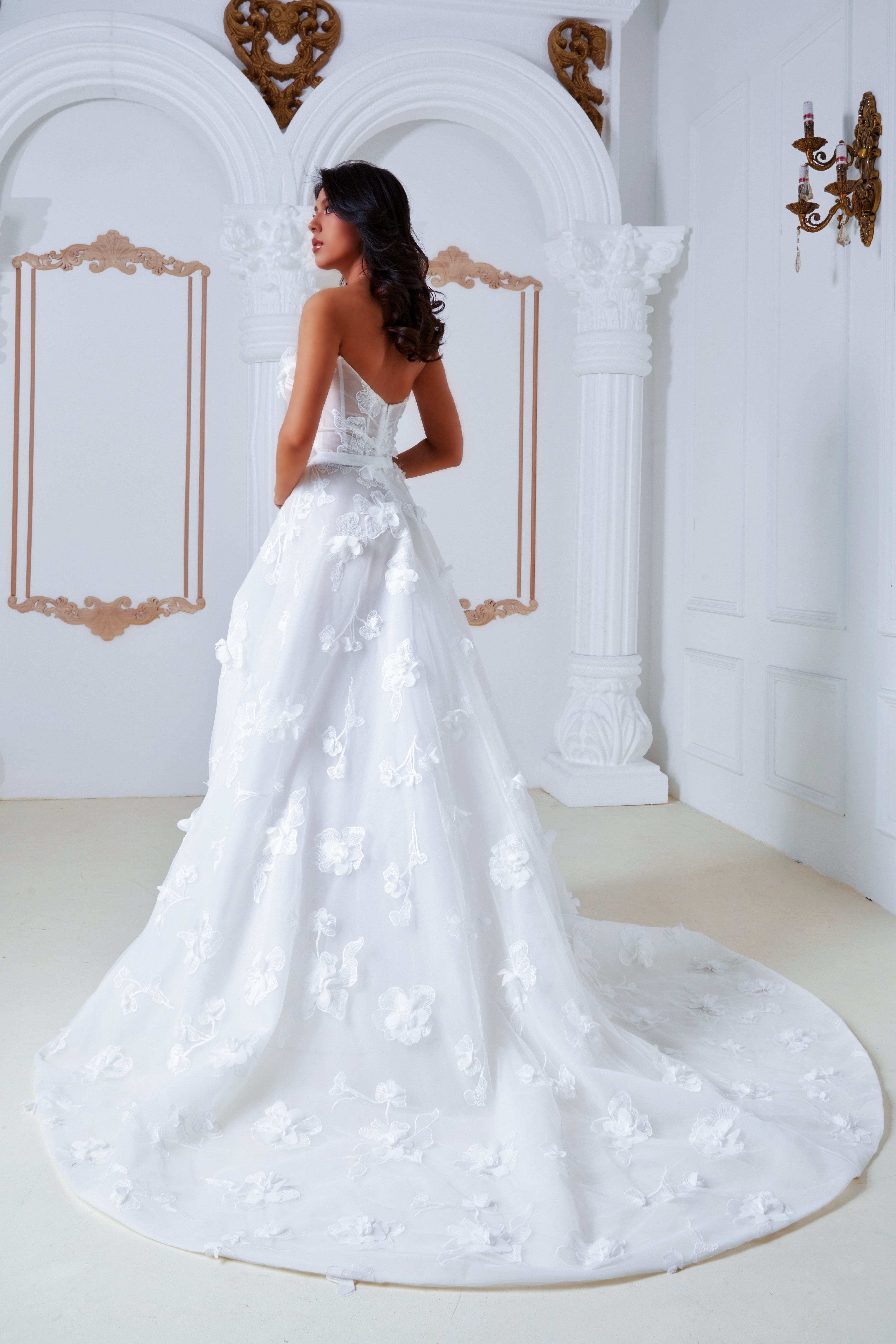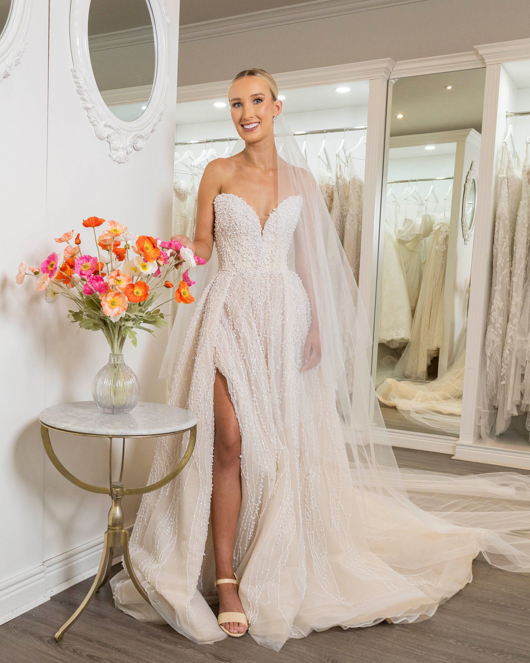 Christina Rossiβs collection of A-line gowns includes timeless, elegant, modern & chic gowns to dresses that are perfect for any wedding theme. The A-line cut flatters a variety of body types, providing a perfect blend of comfort and sophistication. Whether you envision a minimalistic design with clean lines or a more elaborate gown with intricate lace and embellishments, our collection offers something for every bride.