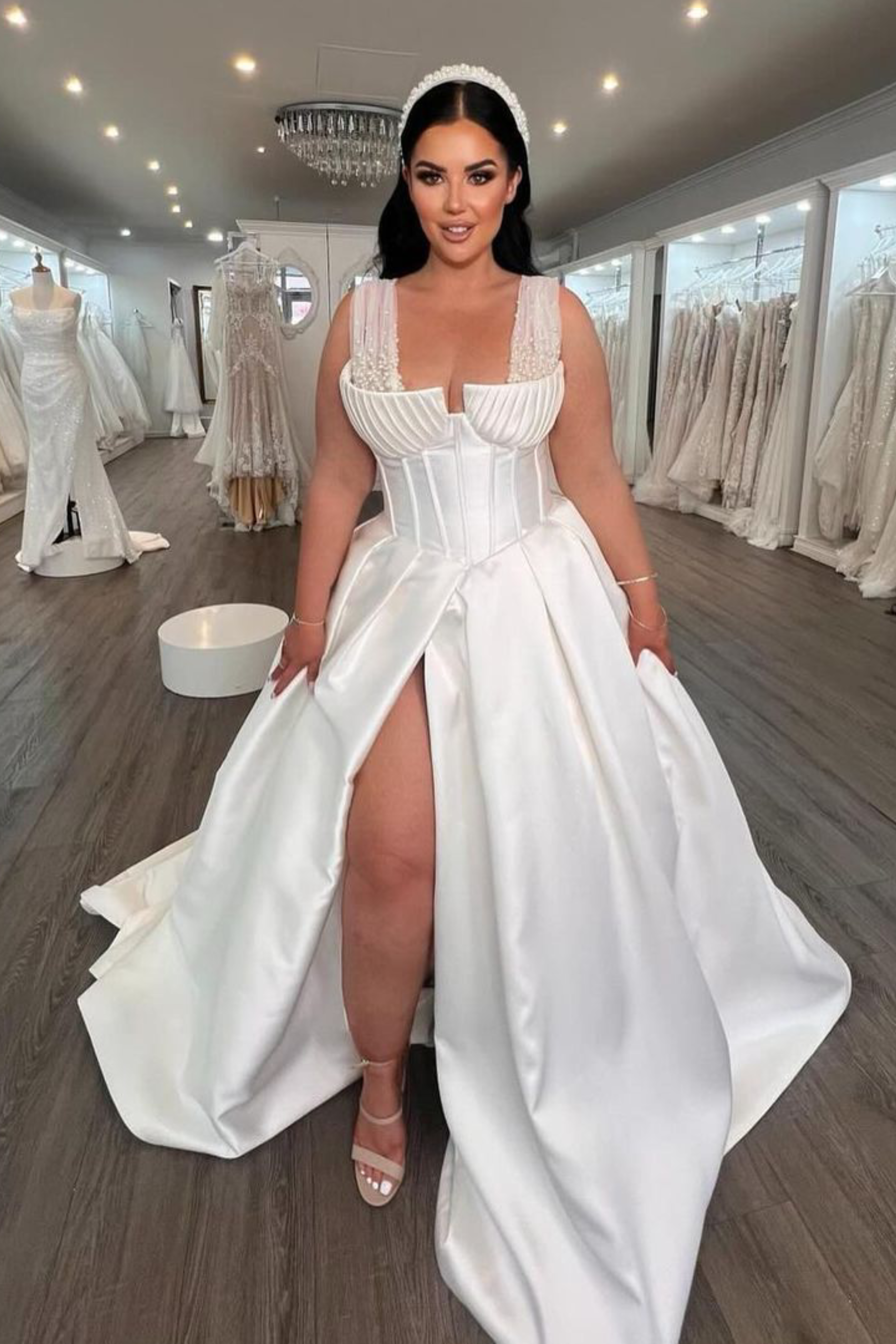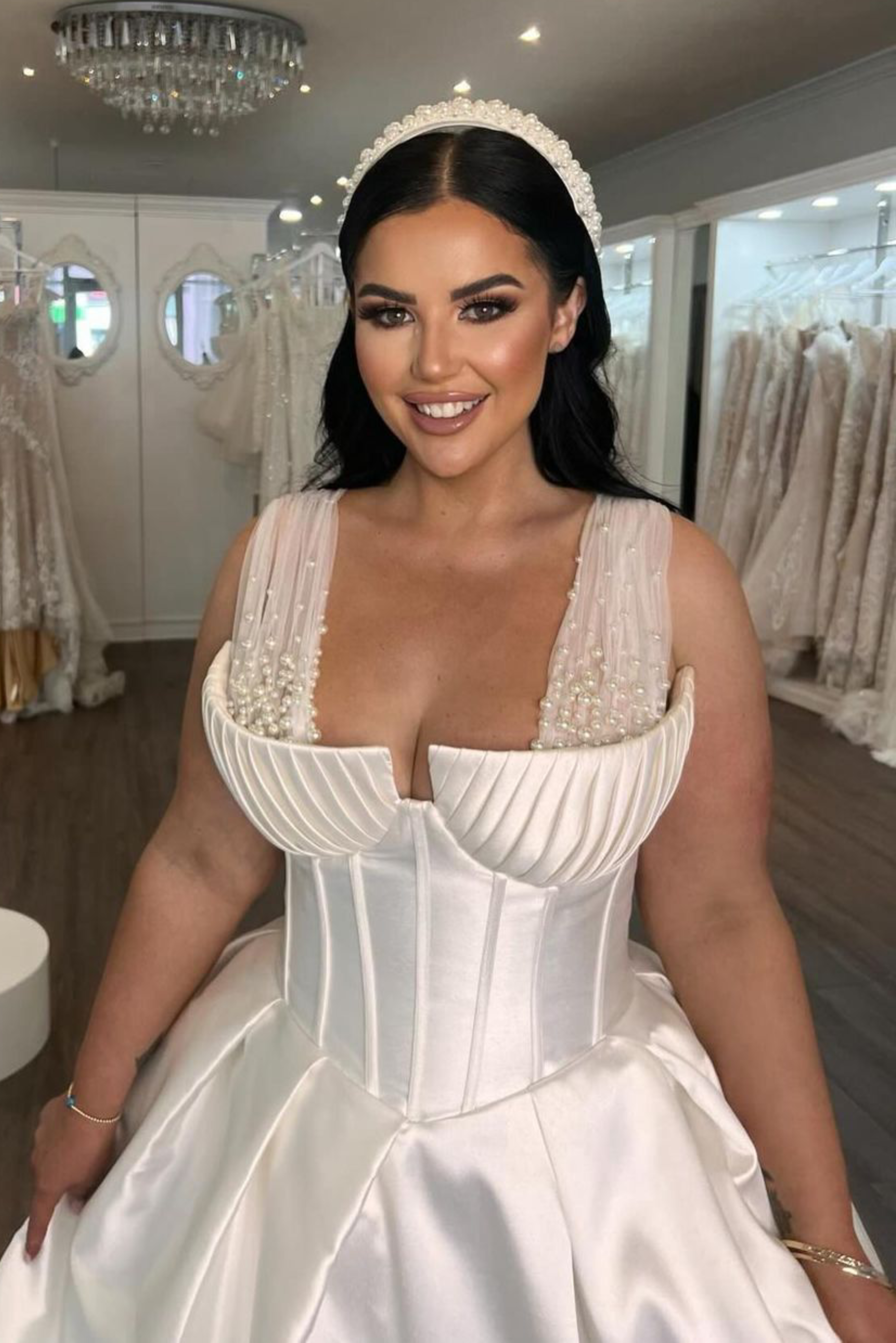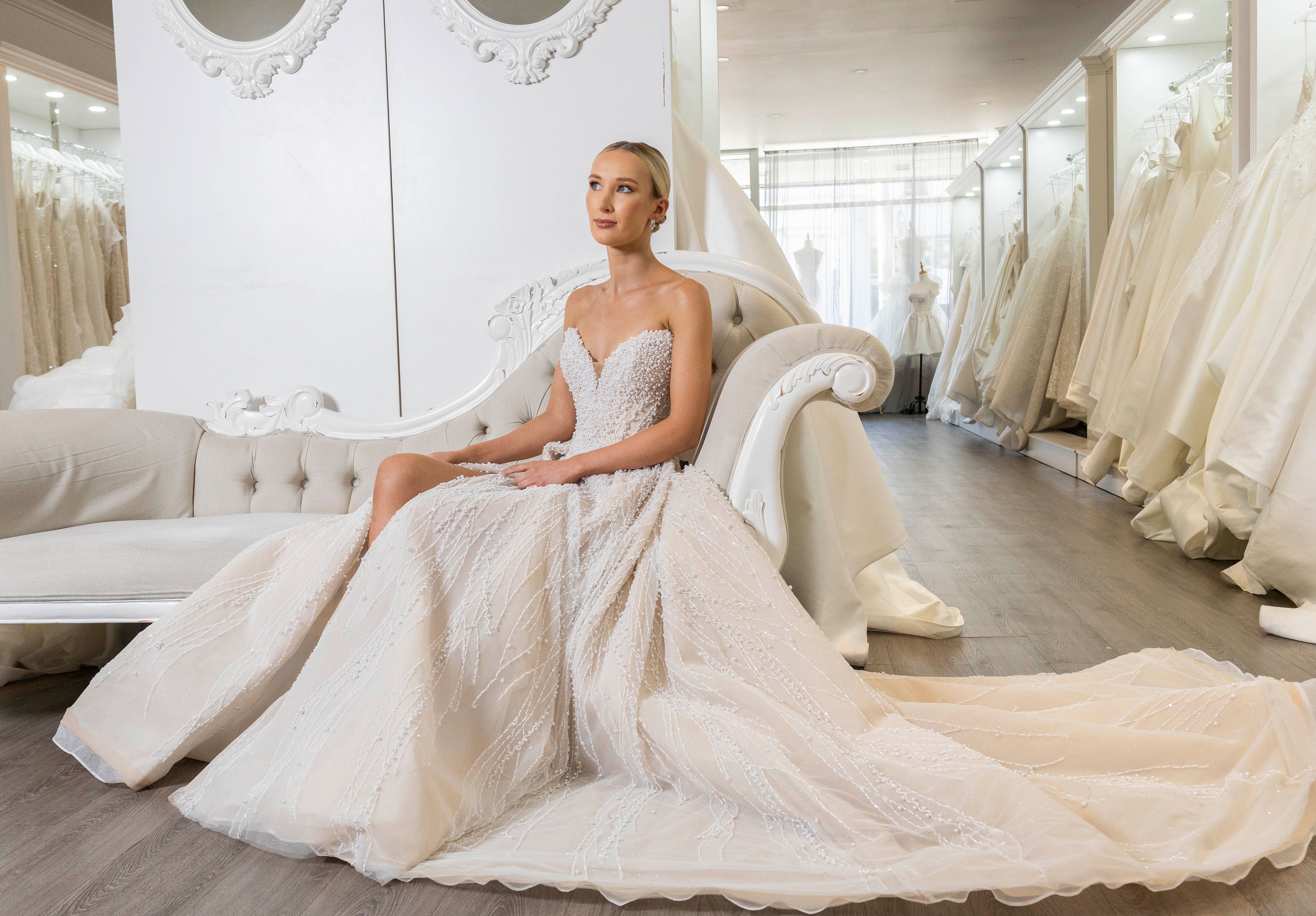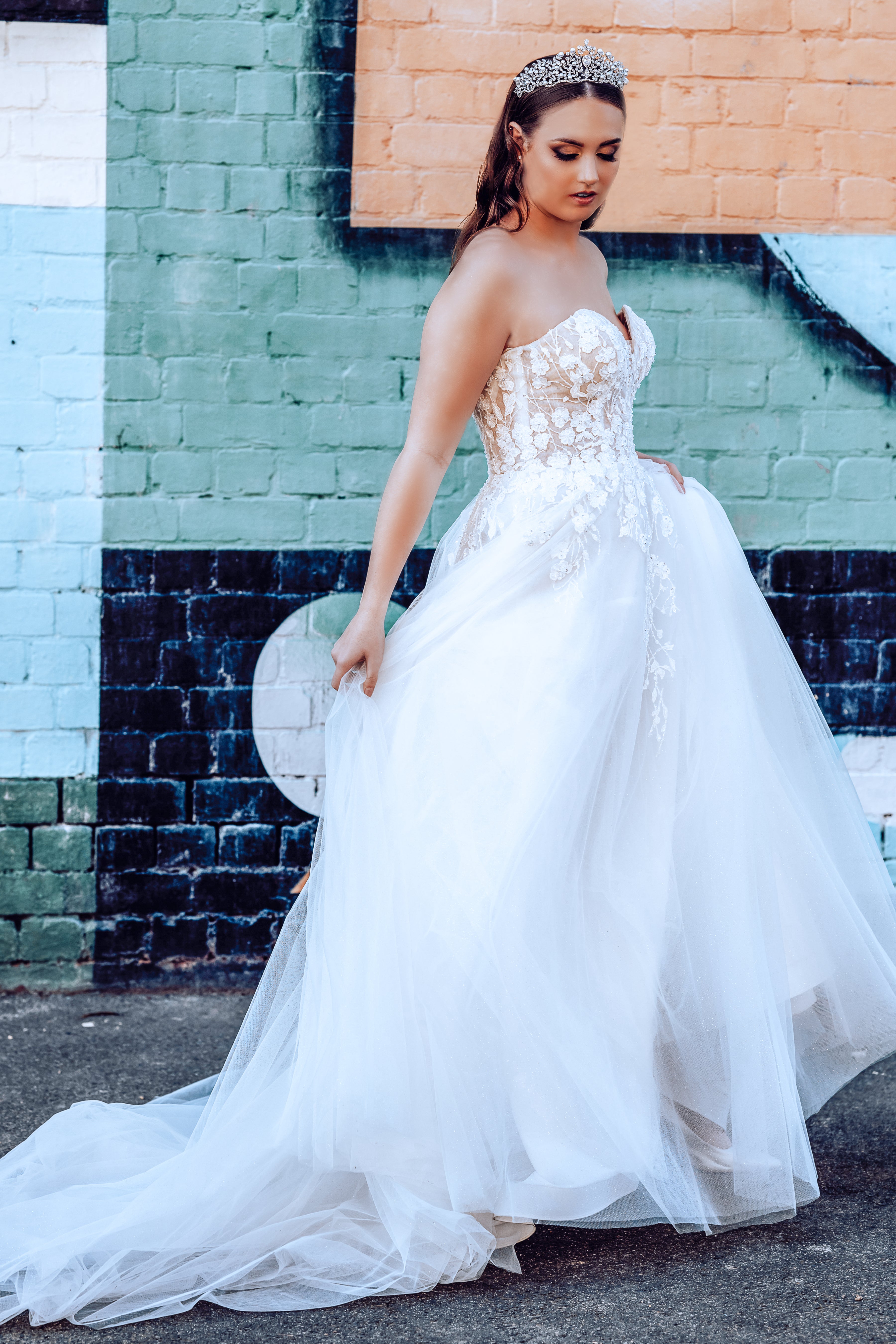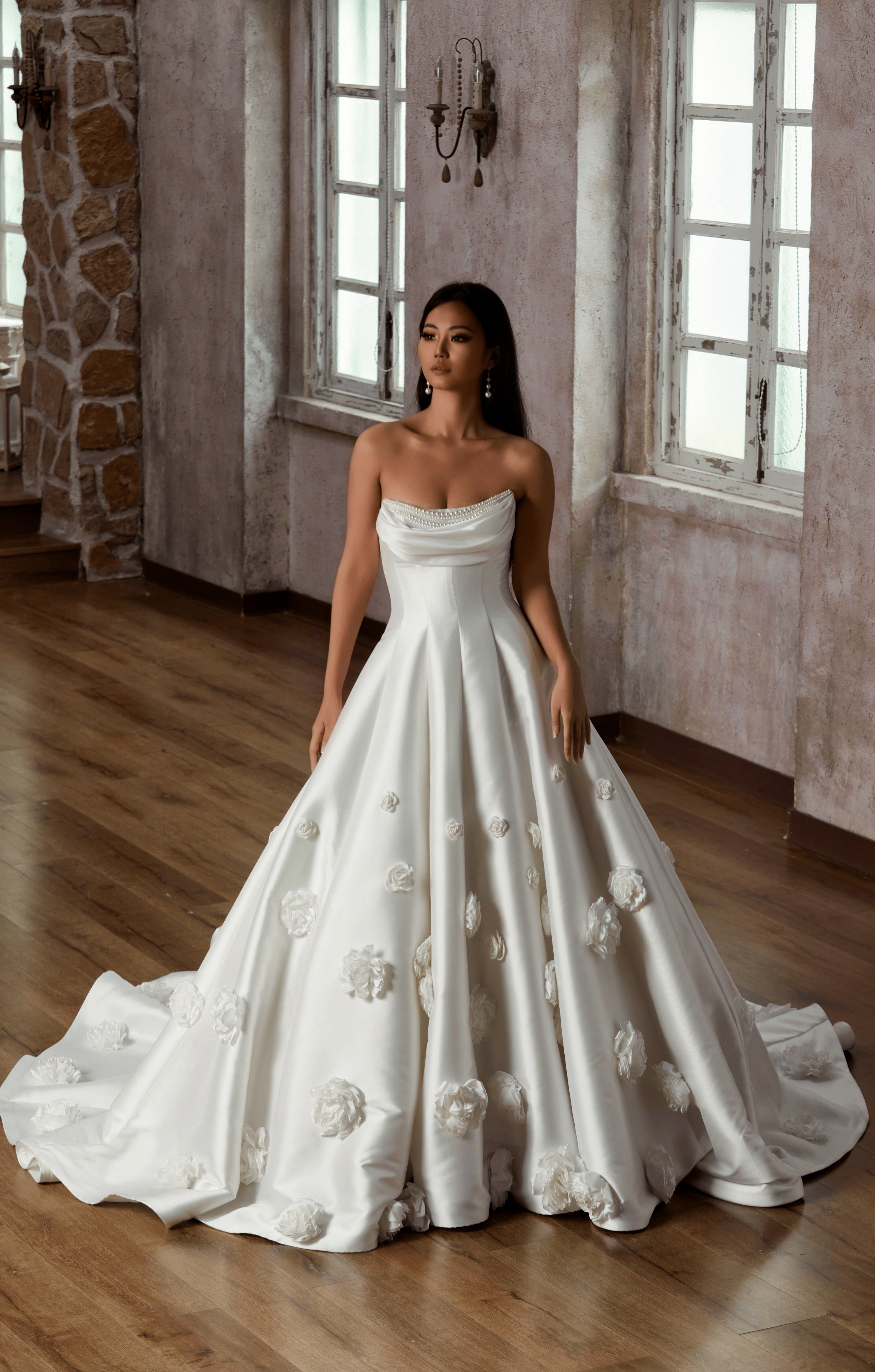 Christina Rossiβs collection of A-line gowns includes timeless, elegant, modern & chic gowns to dresses that are perfect for any wedding theme. The A-line cut flatters a variety of body types, providing a perfect blend of comfort and sophistication. Whether you envision a minimalistic design with clean lines or a more elaborate gown with intricate lace and embellishments, our collection offers something for every bride.