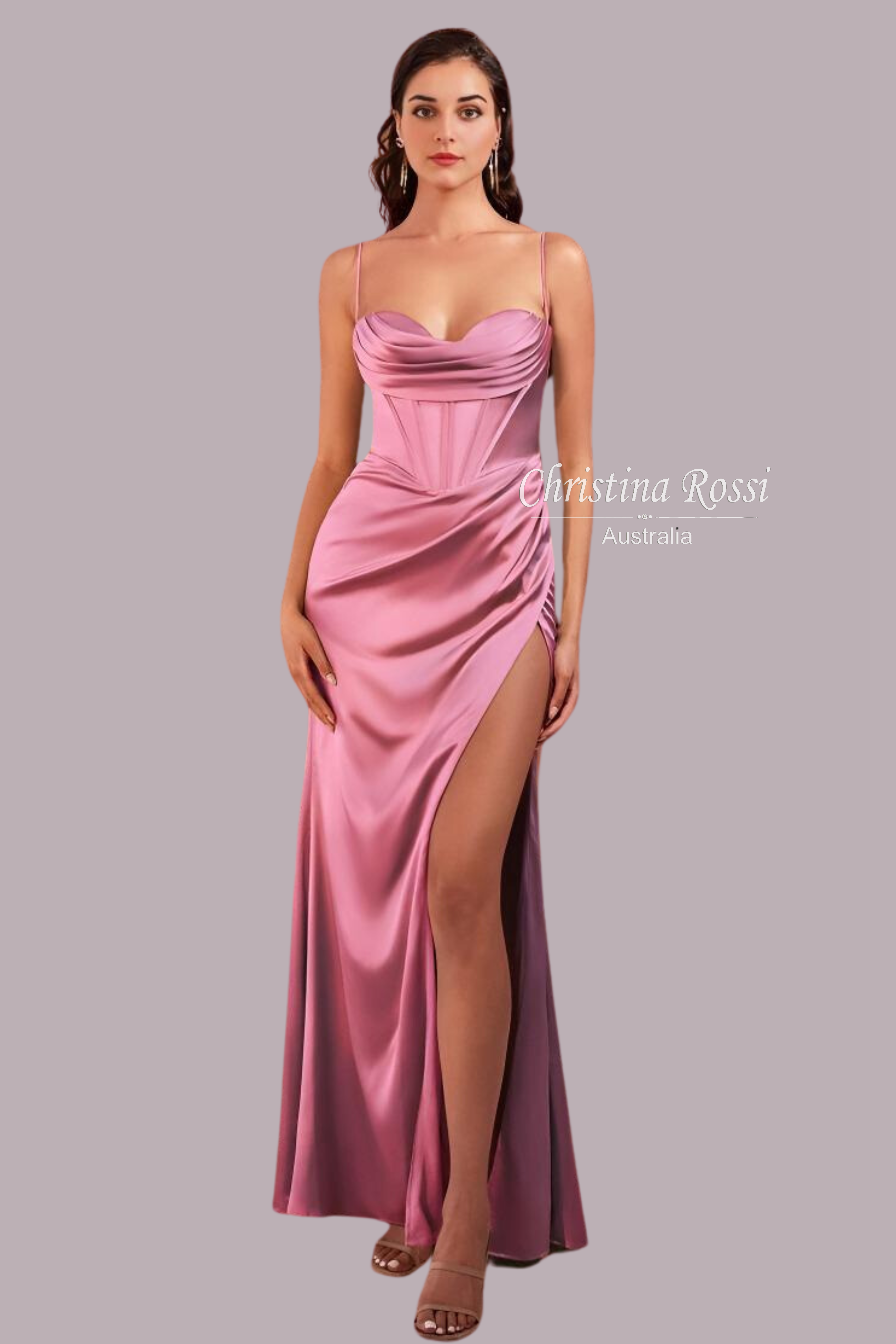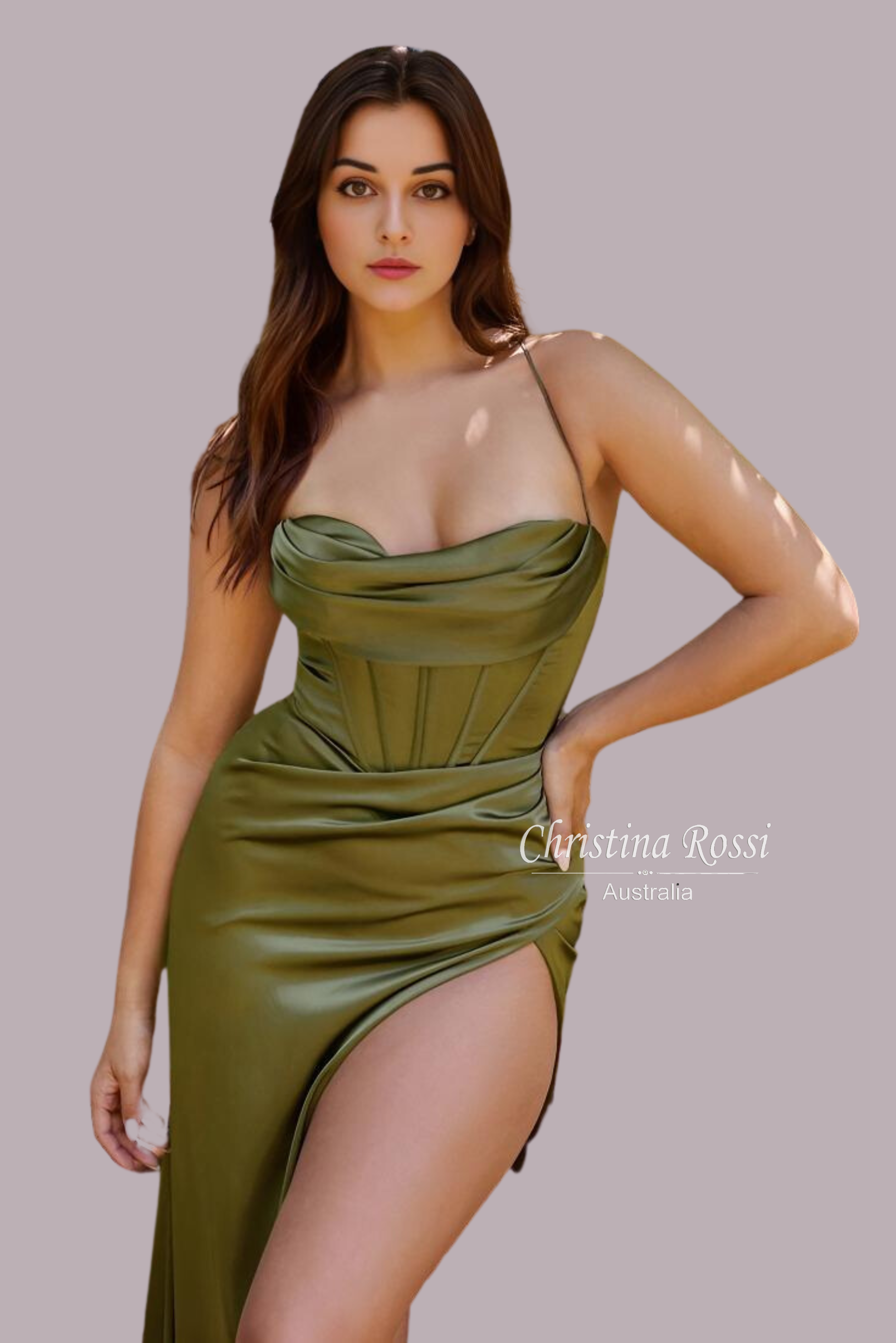 This sultry bodice corset dress offers both comfort and style, making it the perfect choice for any special occasion. This classy yet trendy design features a corset back with an adjustable fit to accentuate curves and a draped neckline for an elegant finish.
