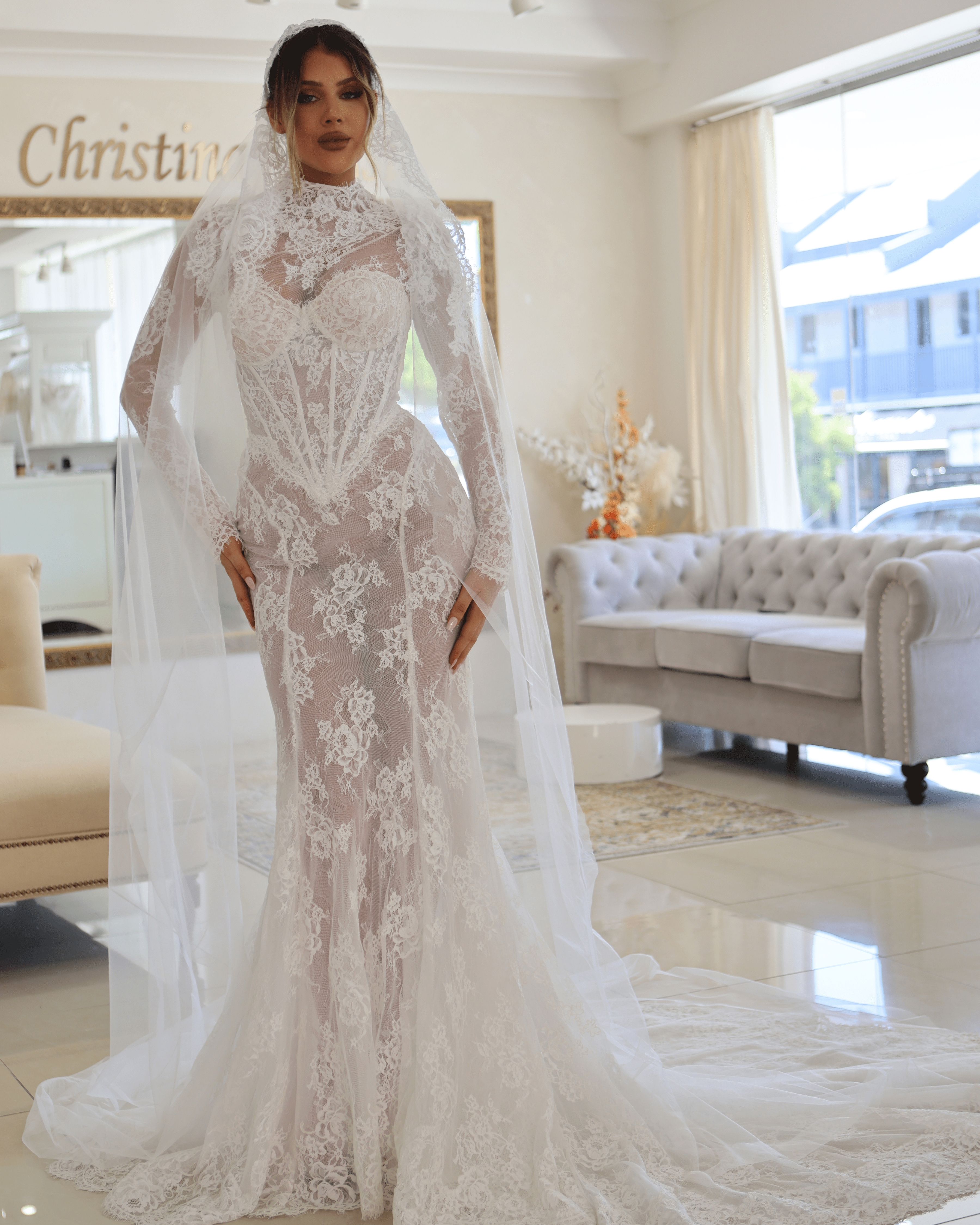 FEENEY can be tried on in our bridal stores in Sydney and Melbourne. Sample size: