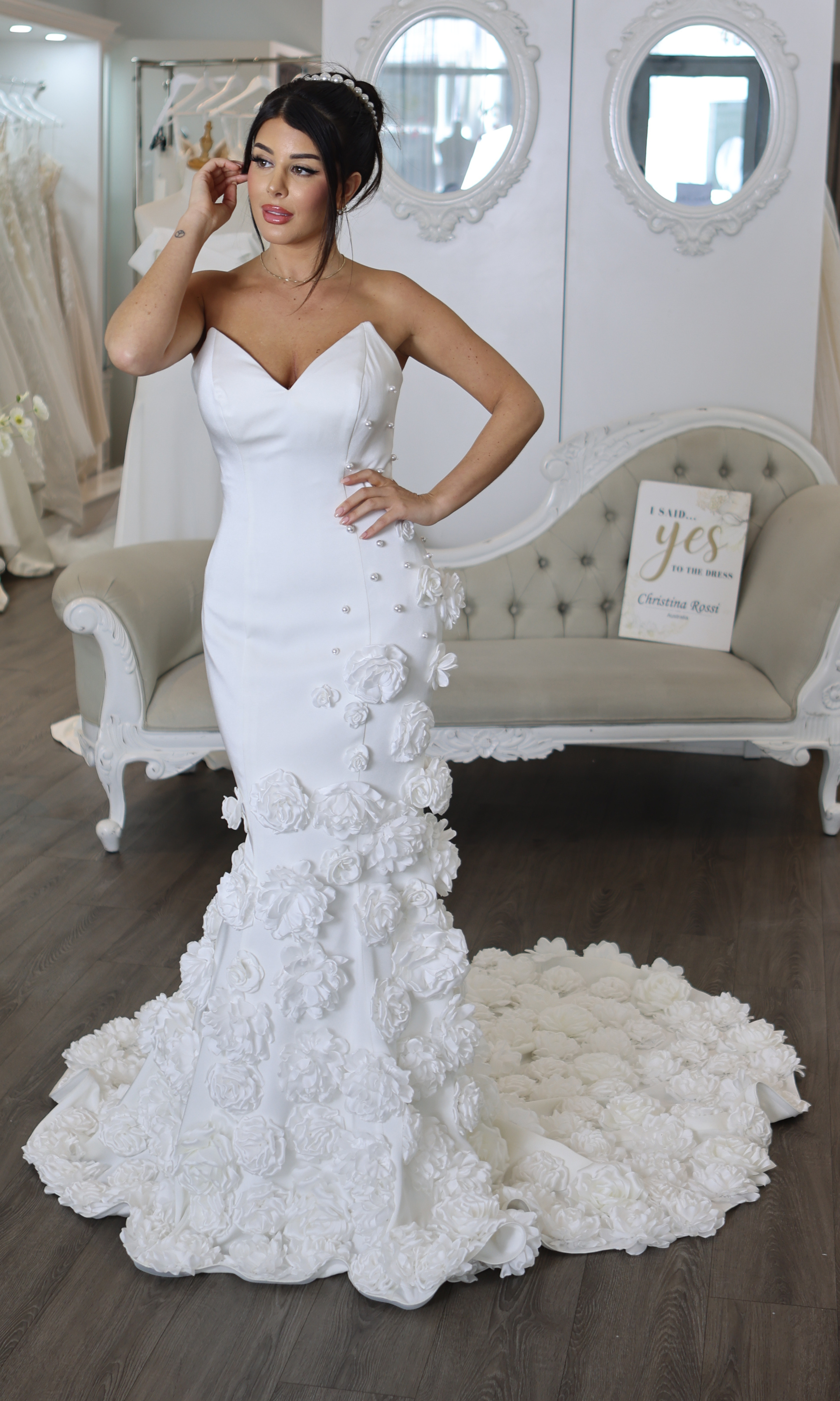 Have there ever been elements in a gown you wish you could change? Perhaps you would like a different neckline, a lower back, or more/less volume in the skirt. If you have been bridal shopping for a while and are still searching for your dream dress, Christina Rossi "Mix & Match Customization" may be the answer for you.