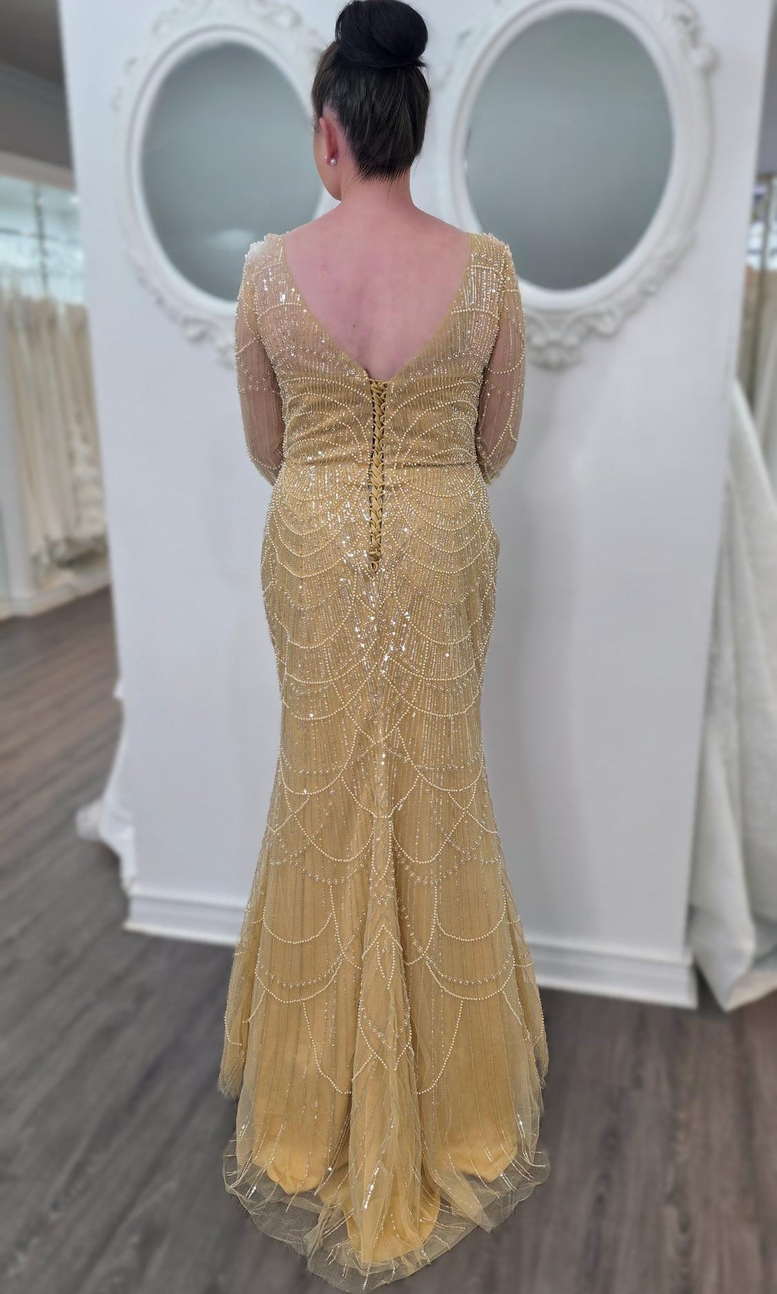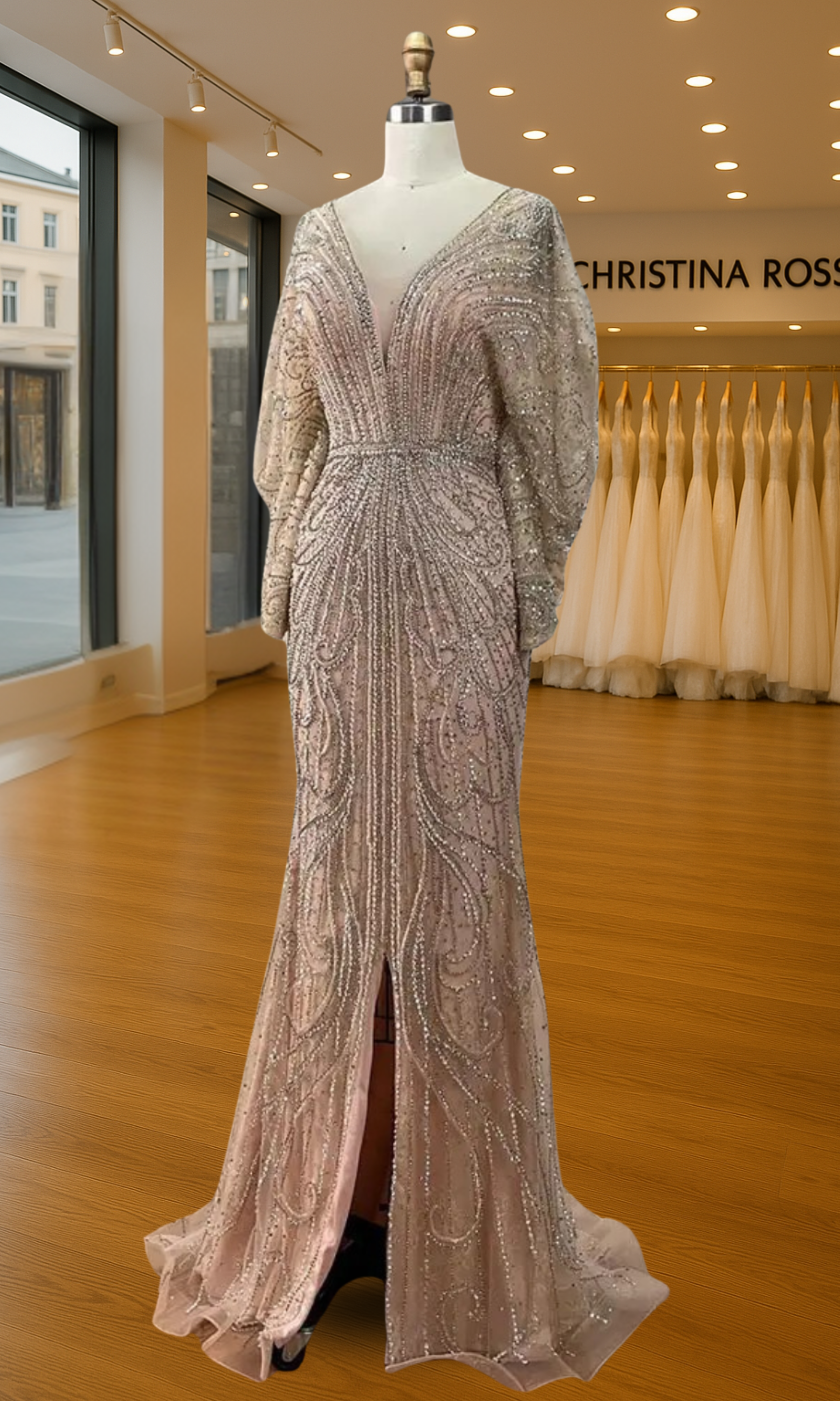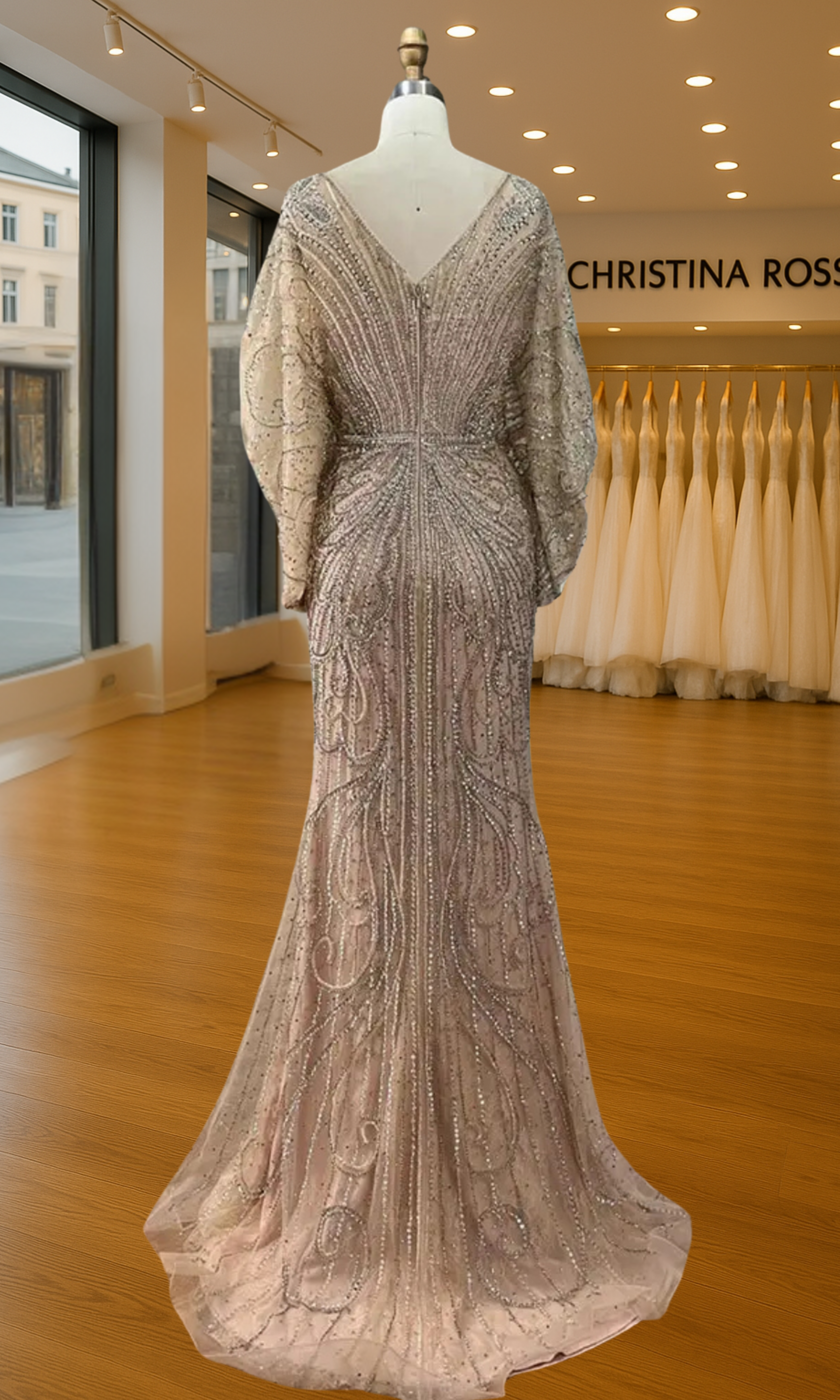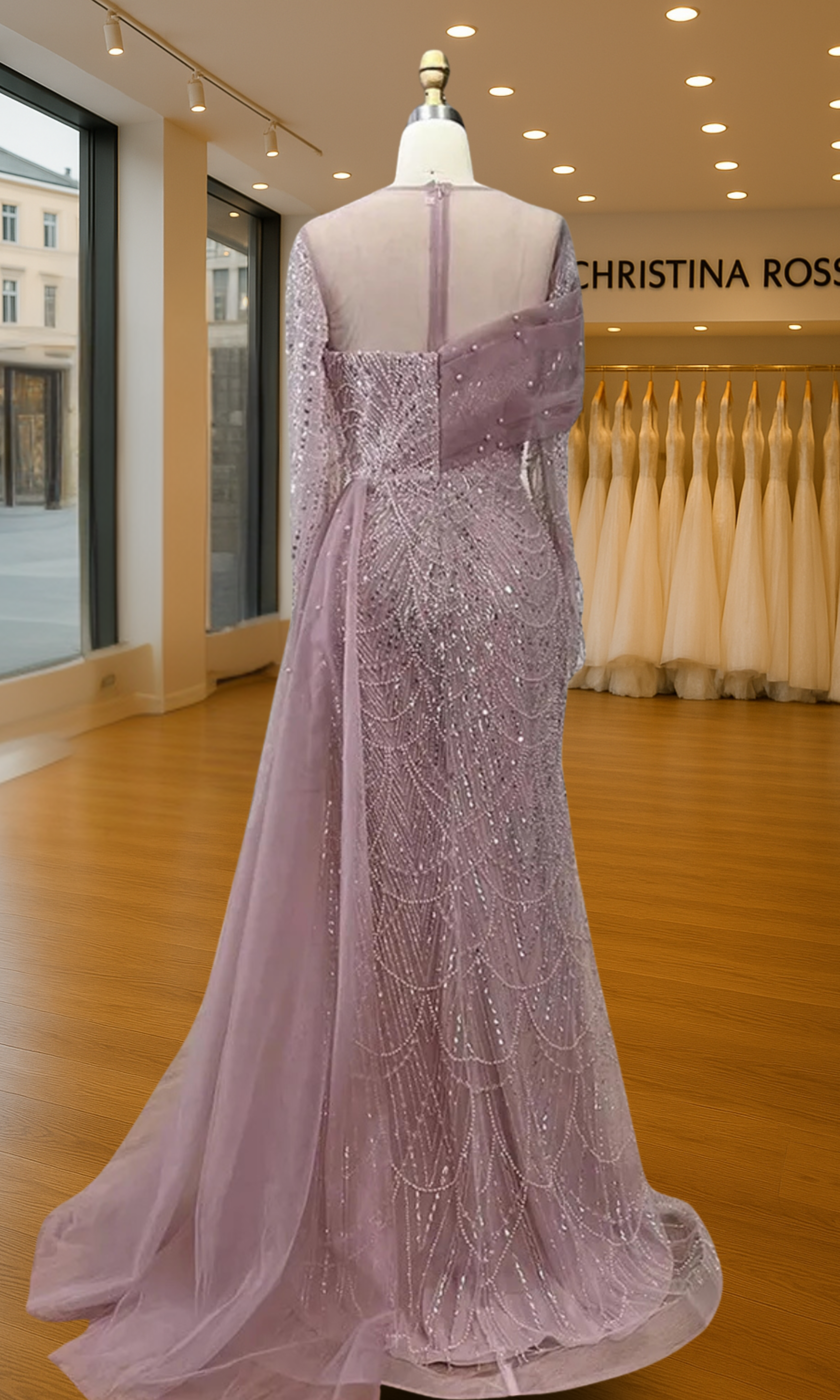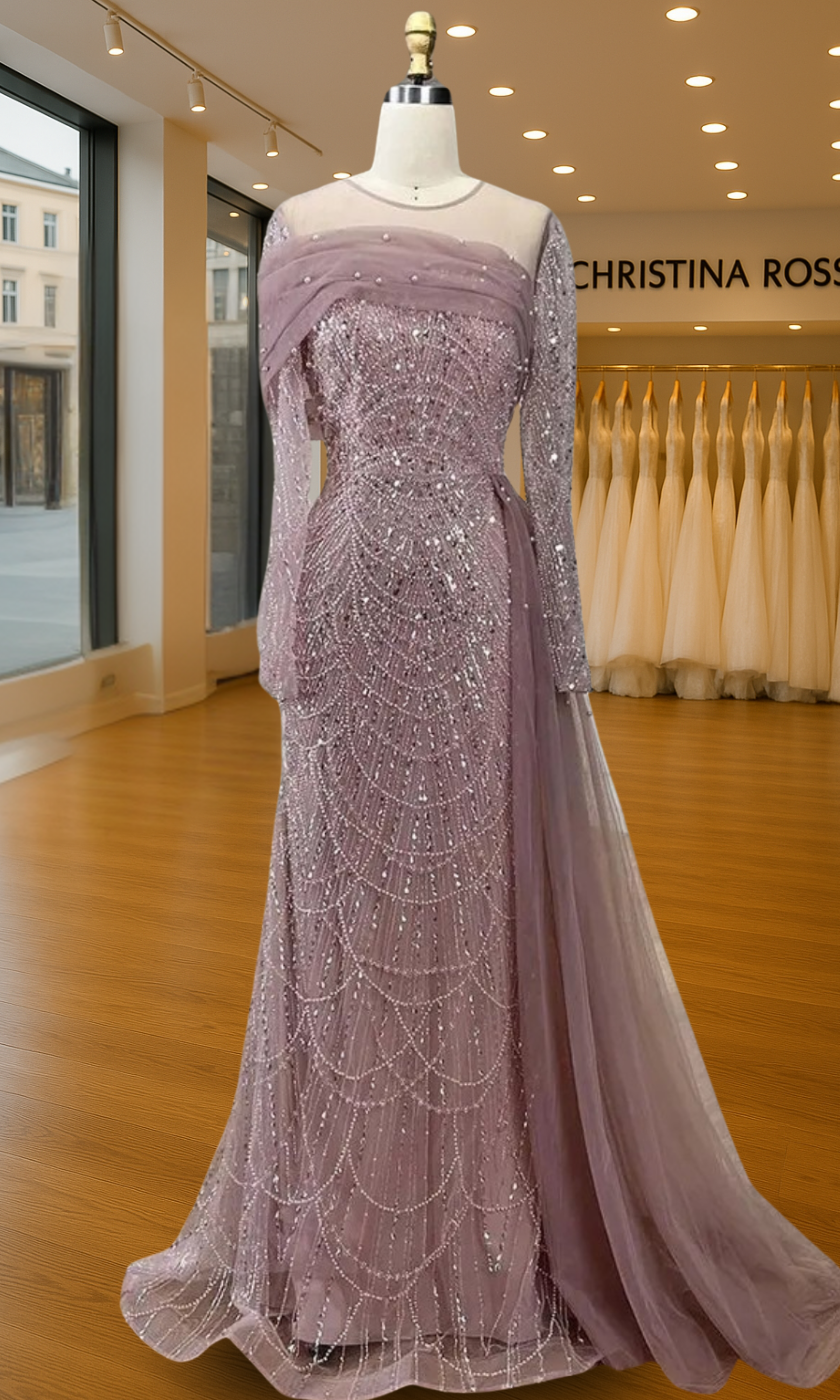 Elevate your special role as mother of the bride with our exquisitely crafted custom gown. This sophisticated dress combines classic elegance with contemporary design elements, ensuring you look and feel remarkable on your daughter's wedding day.