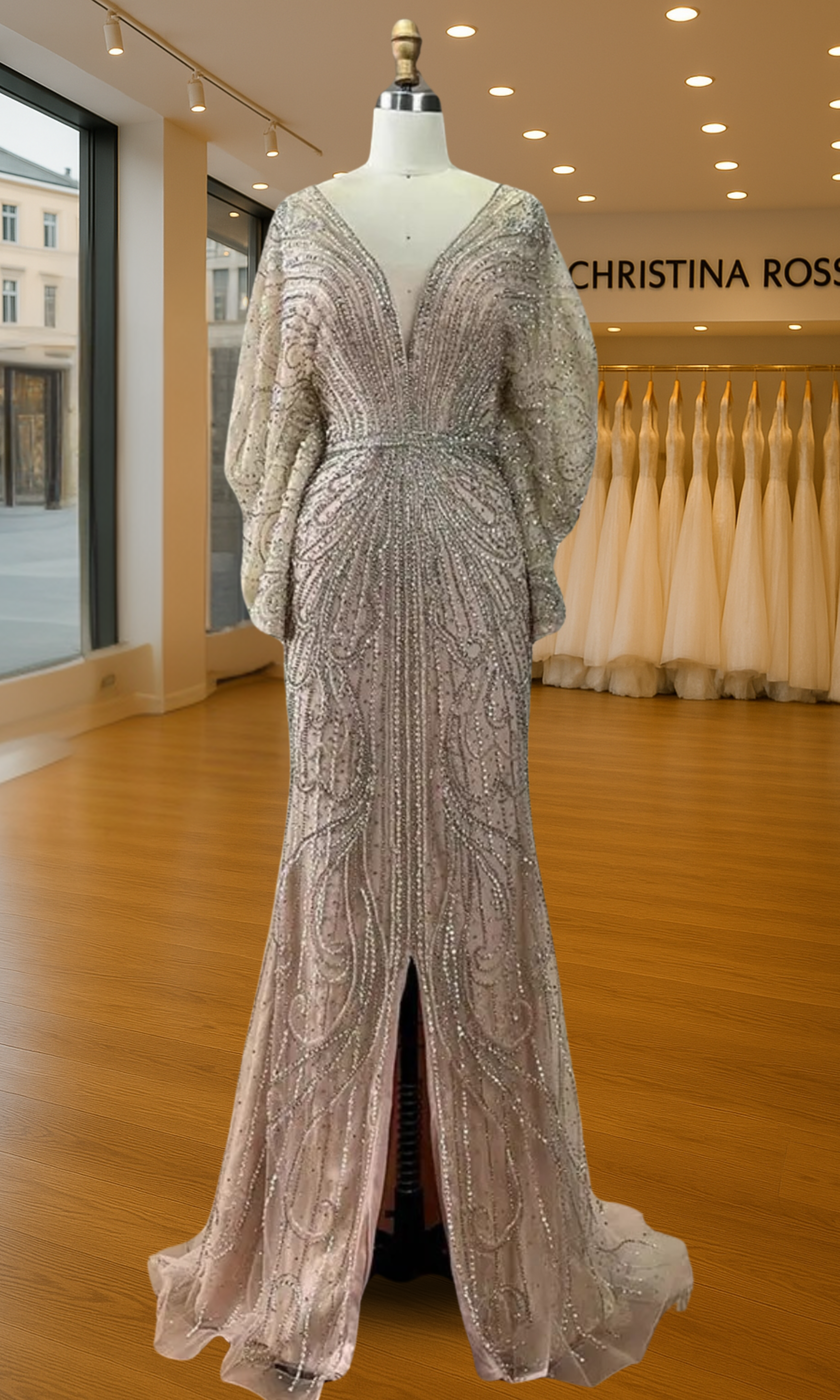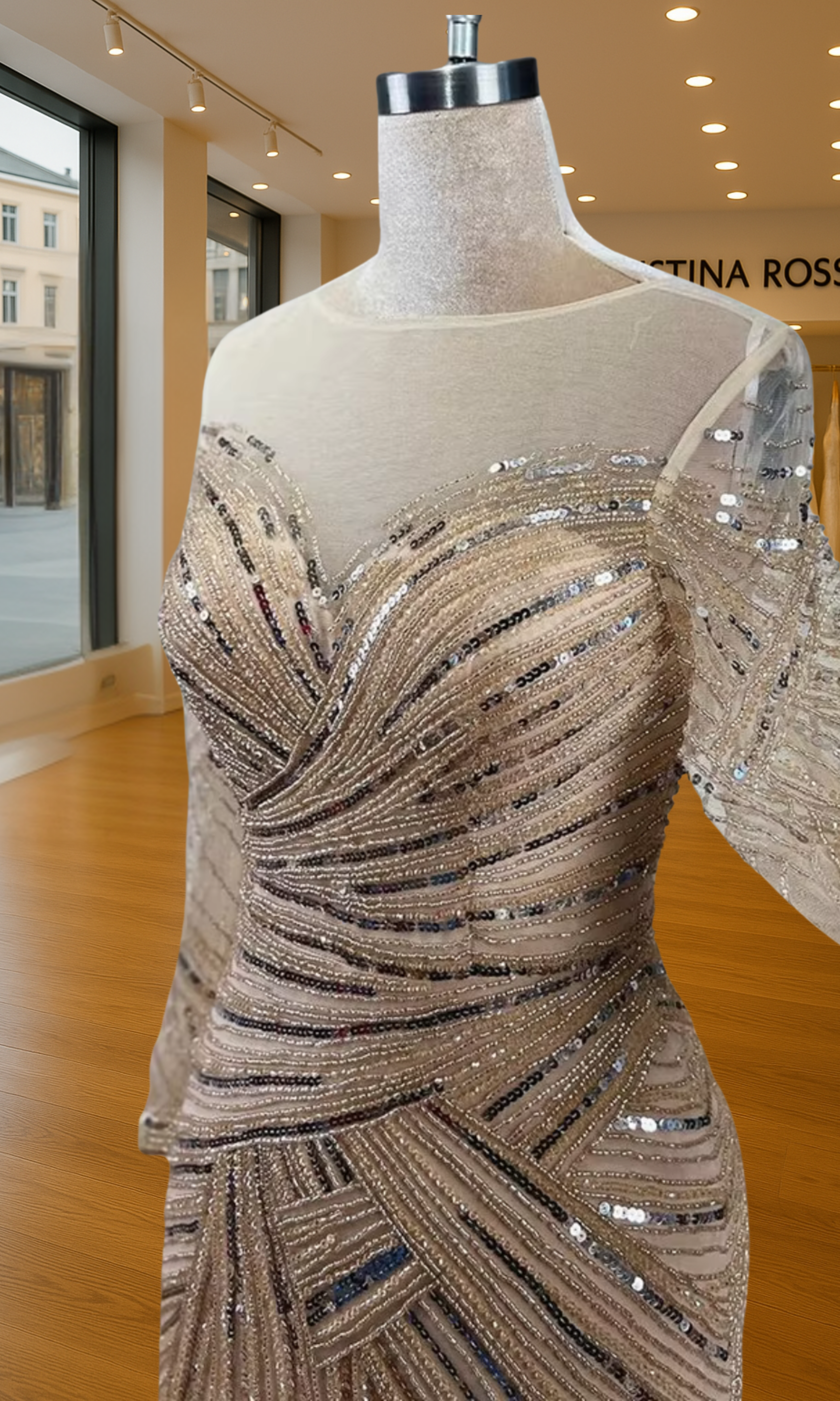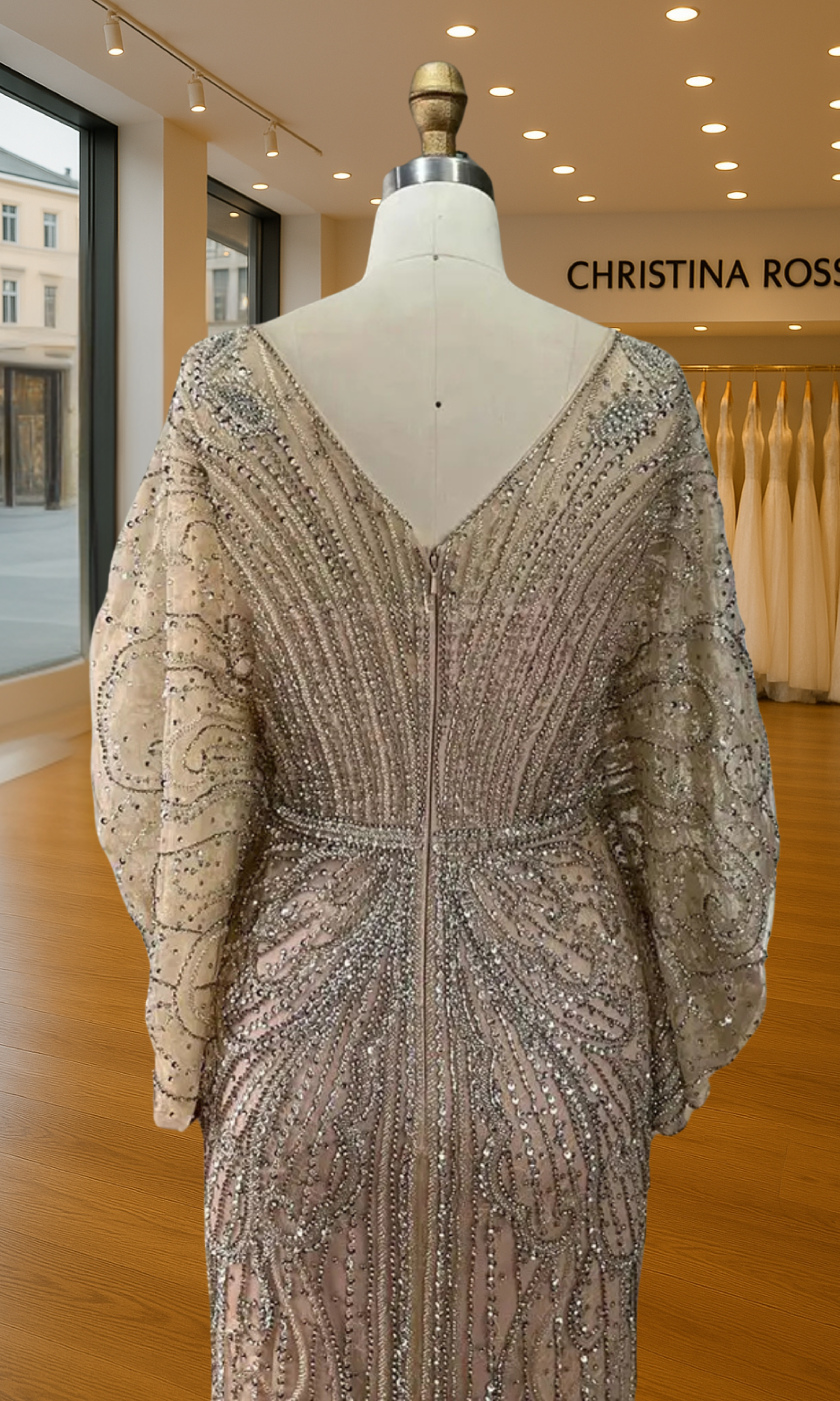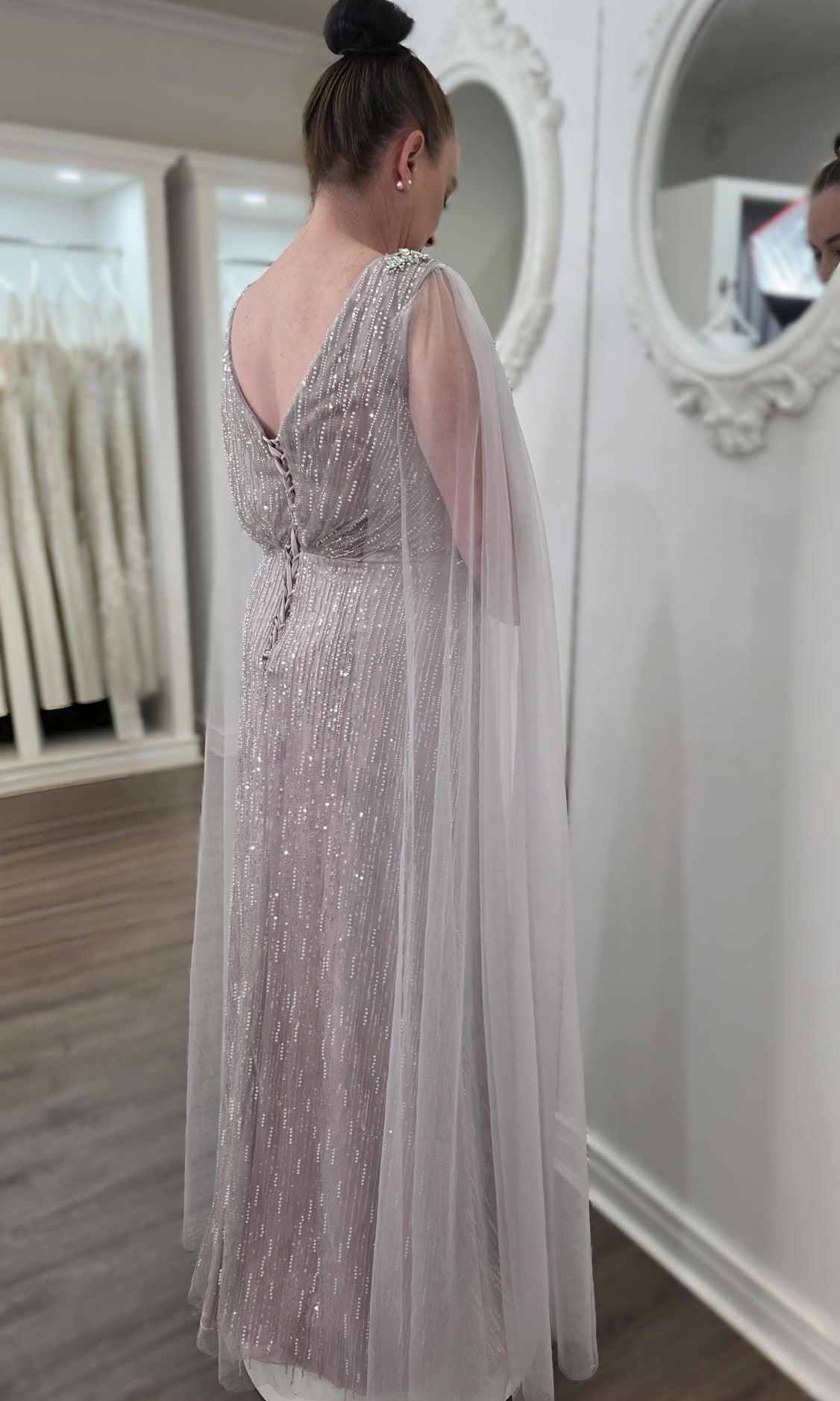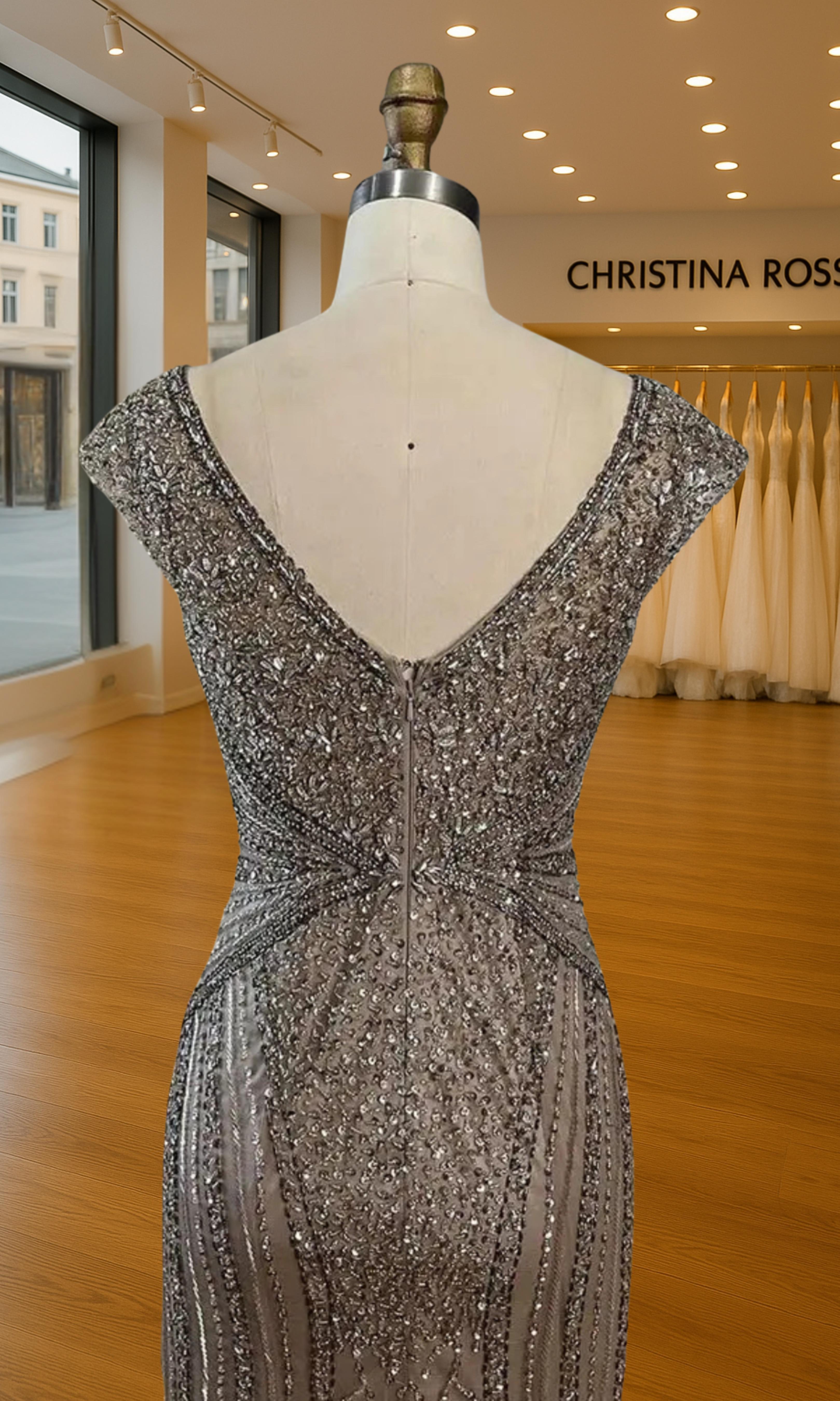 Elevate your special role as mother of the bride with our exquisitely crafted custom gown. This sophisticated dress combines classic elegance with contemporary design elements, ensuring you look and feel remarkable on your daughter's wedding day.