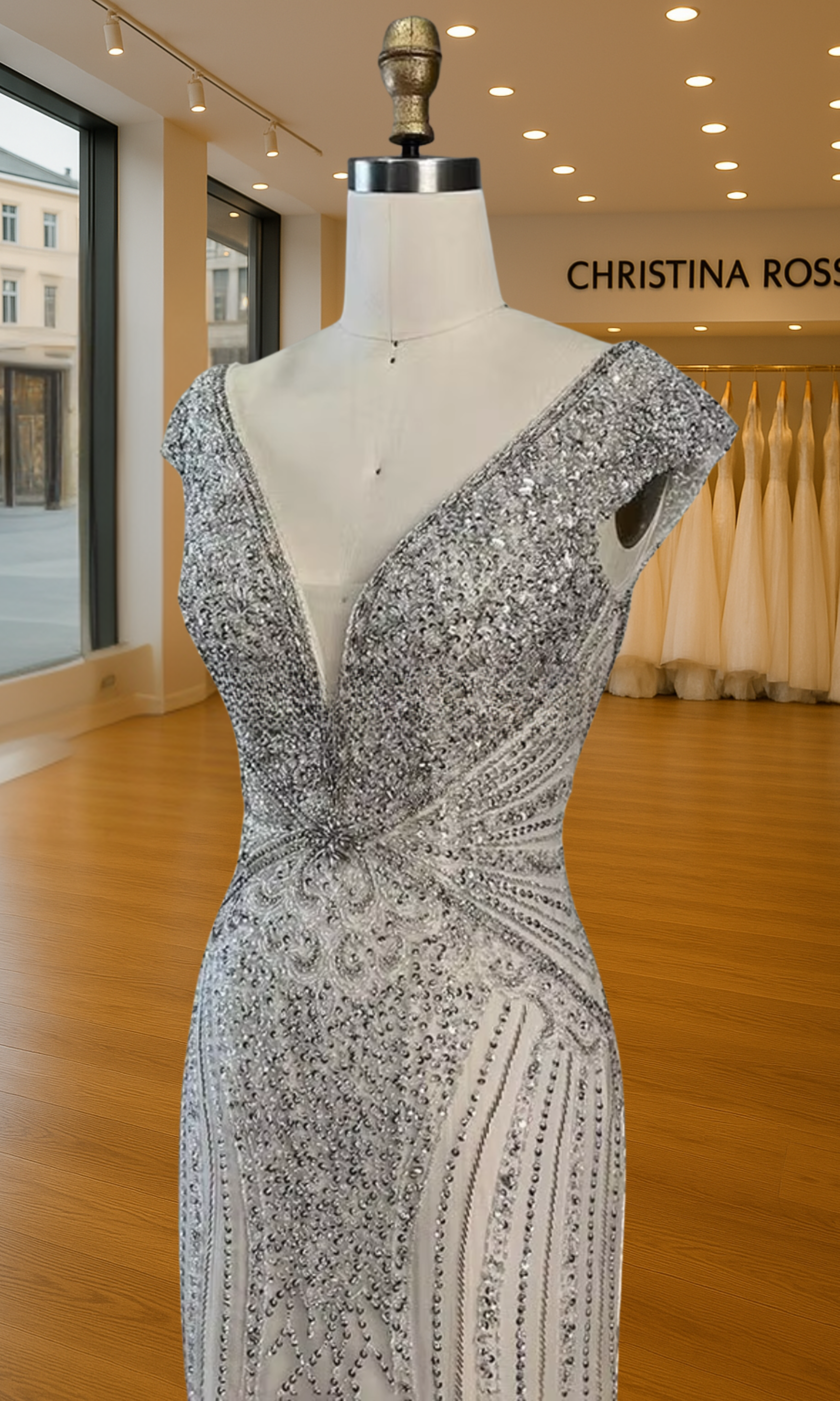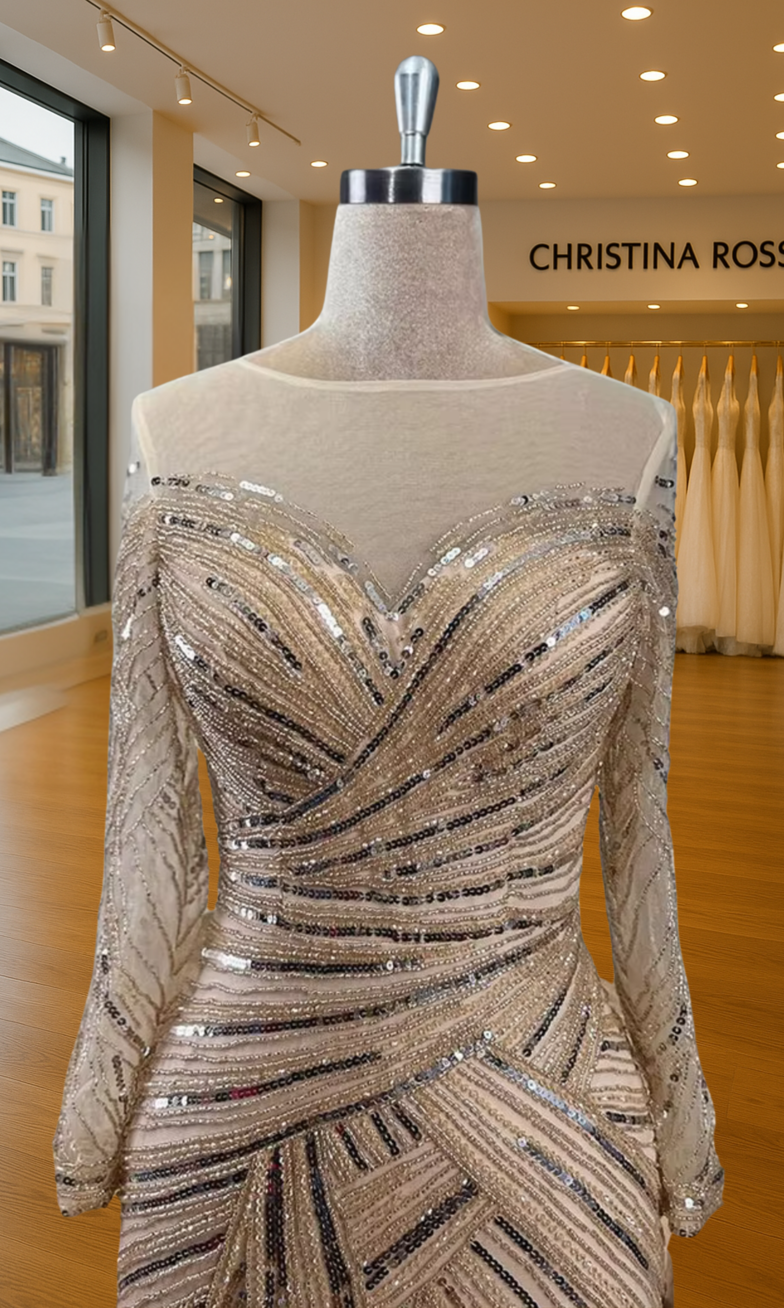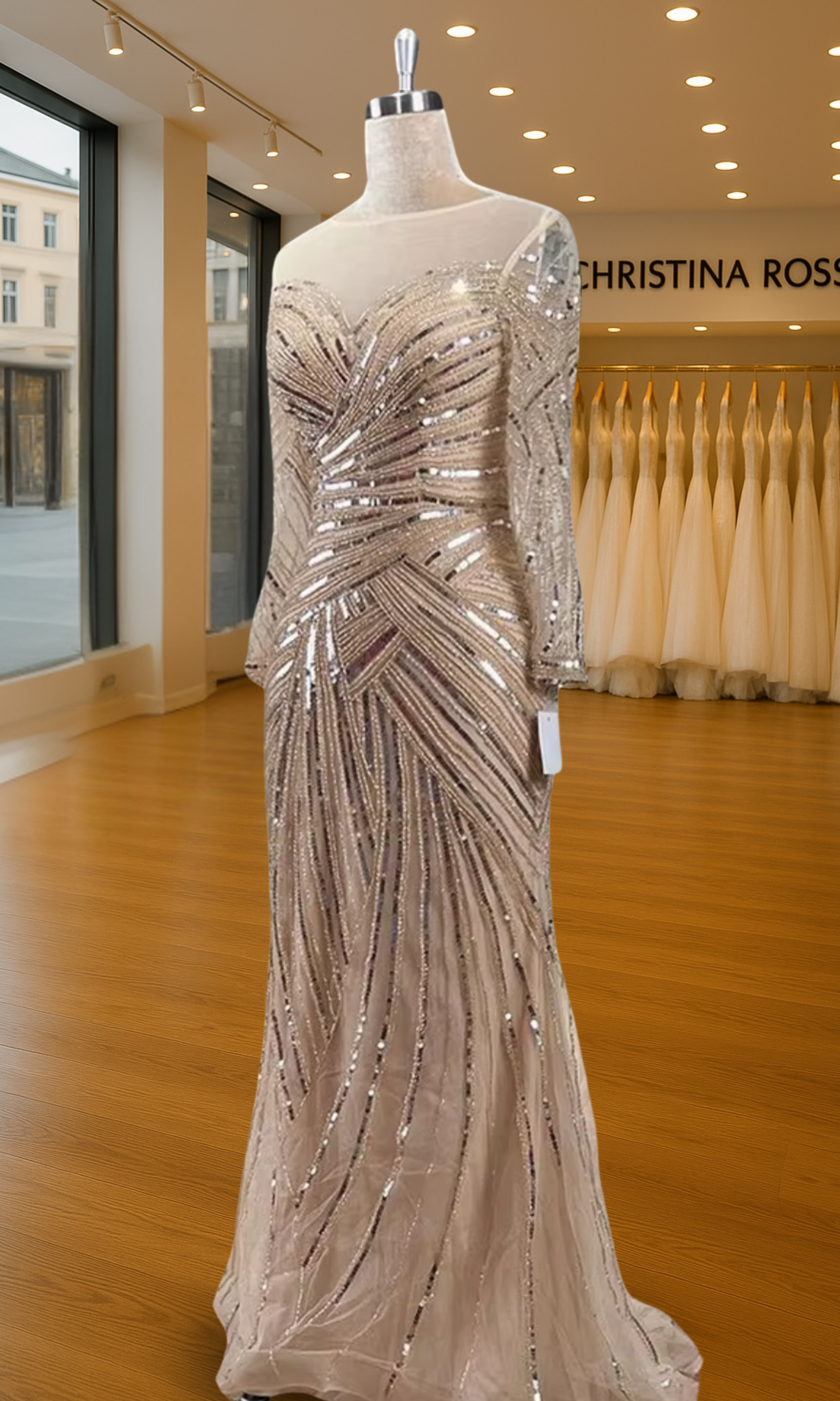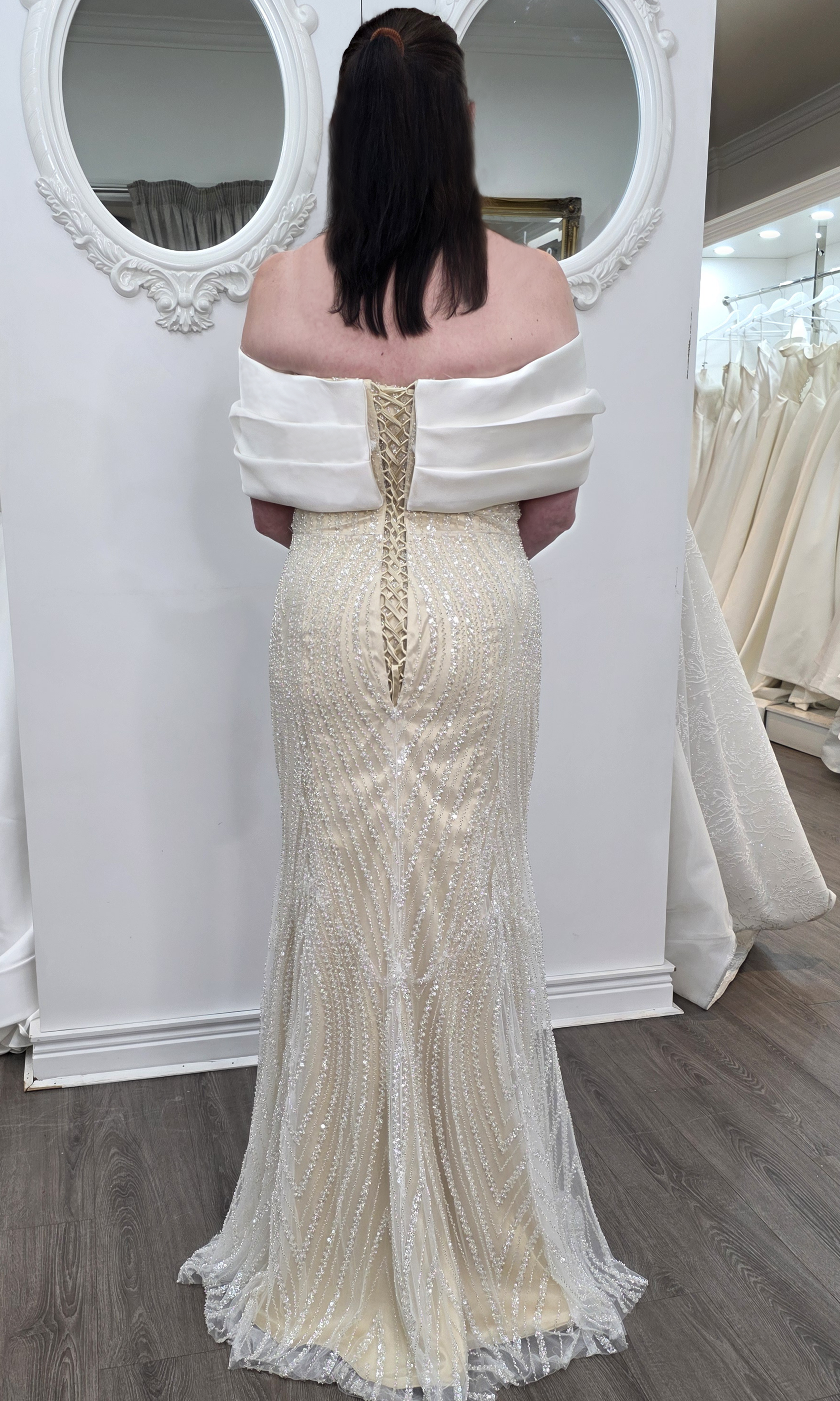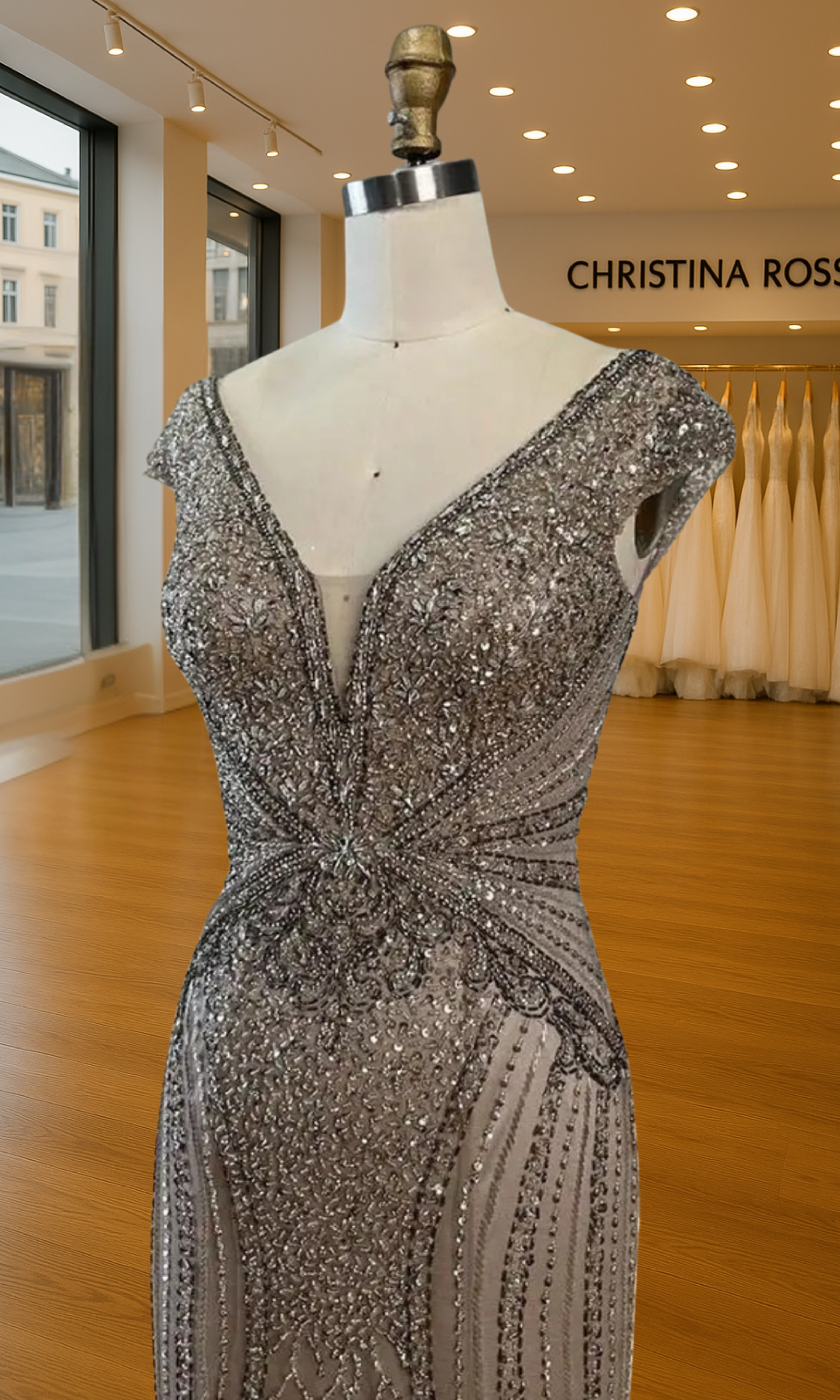 Elevate your special role as mother of the bride with our exquisitely crafted custom gown. This sophisticated dress combines classic elegance with contemporary design elements, ensuring you look and feel remarkable on your daughter's wedding day.