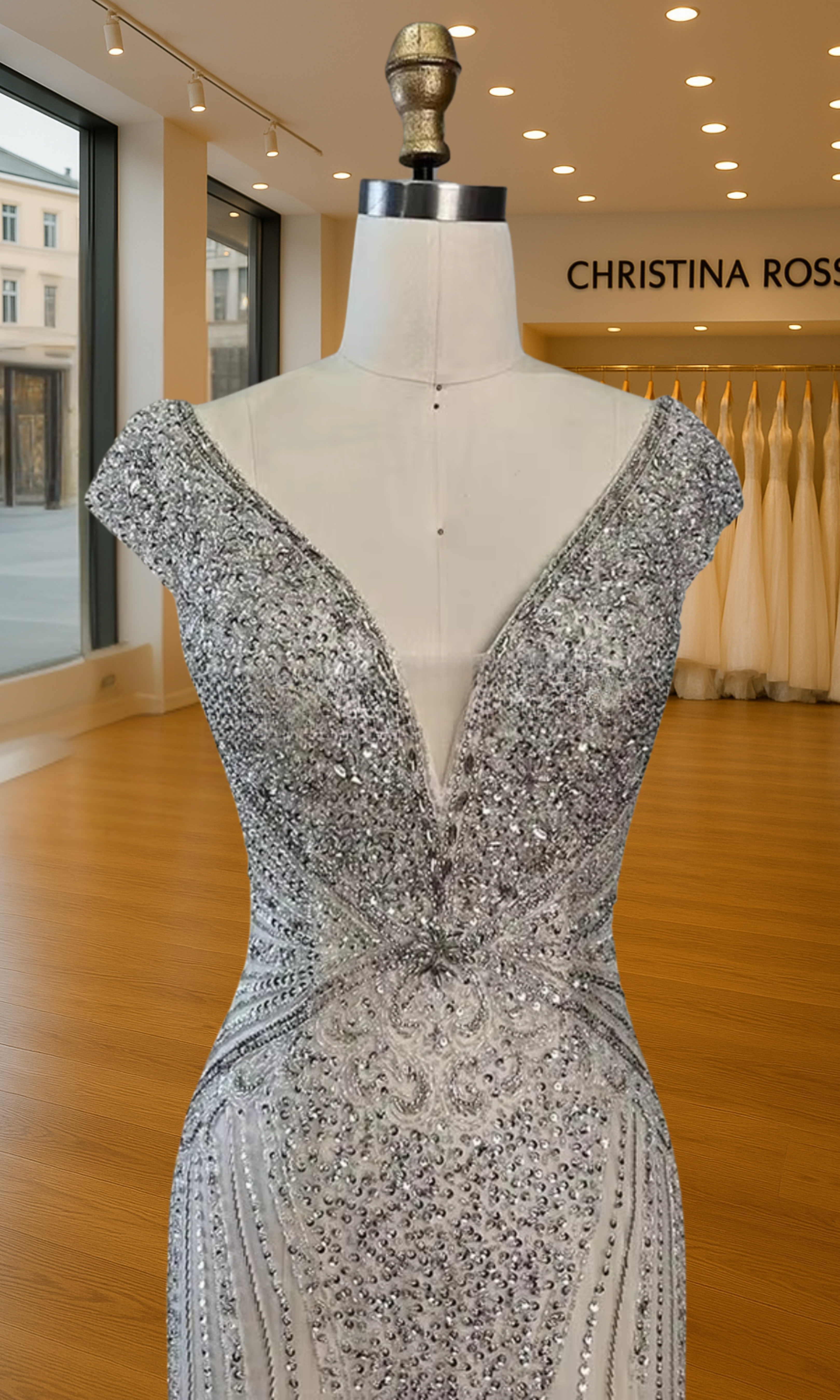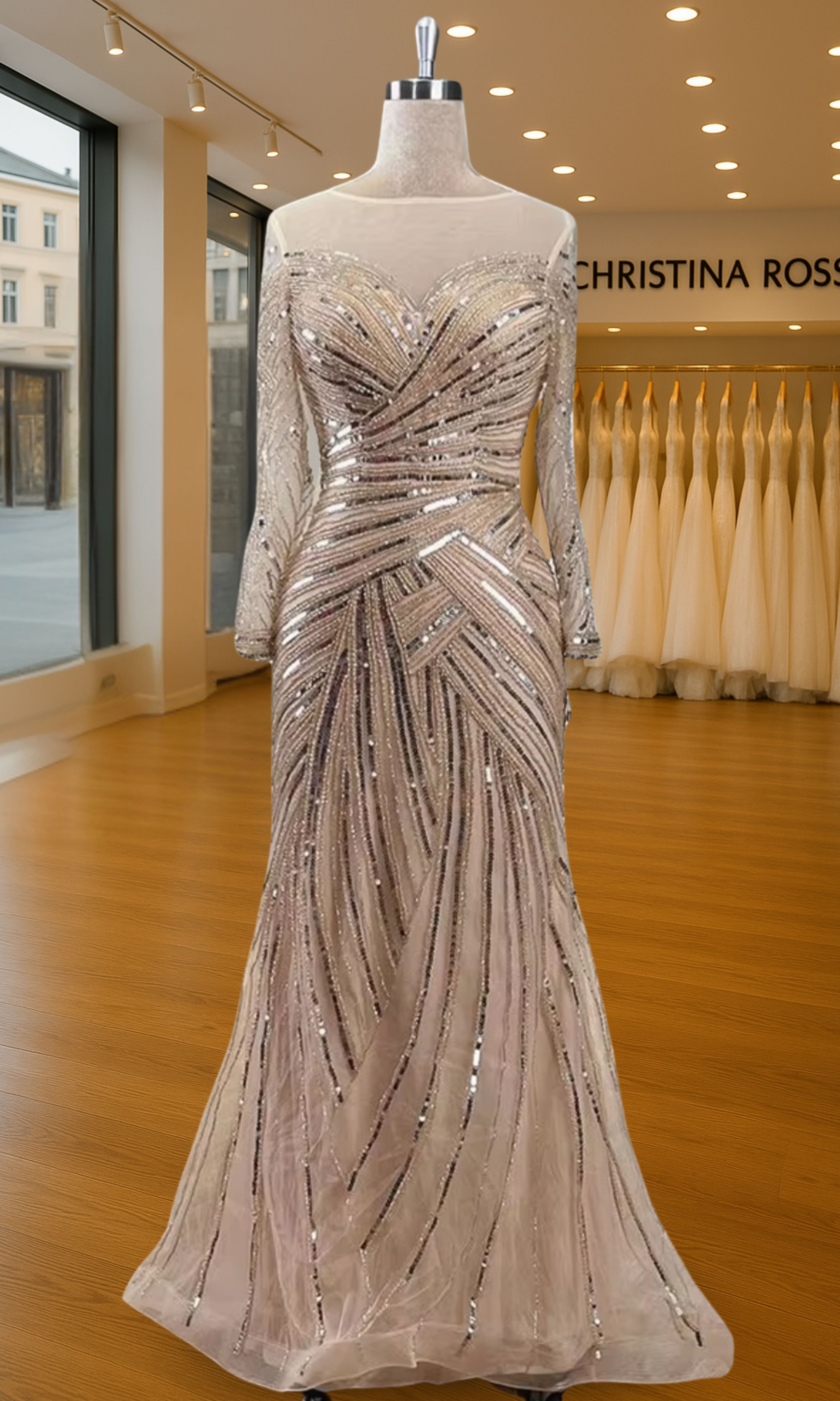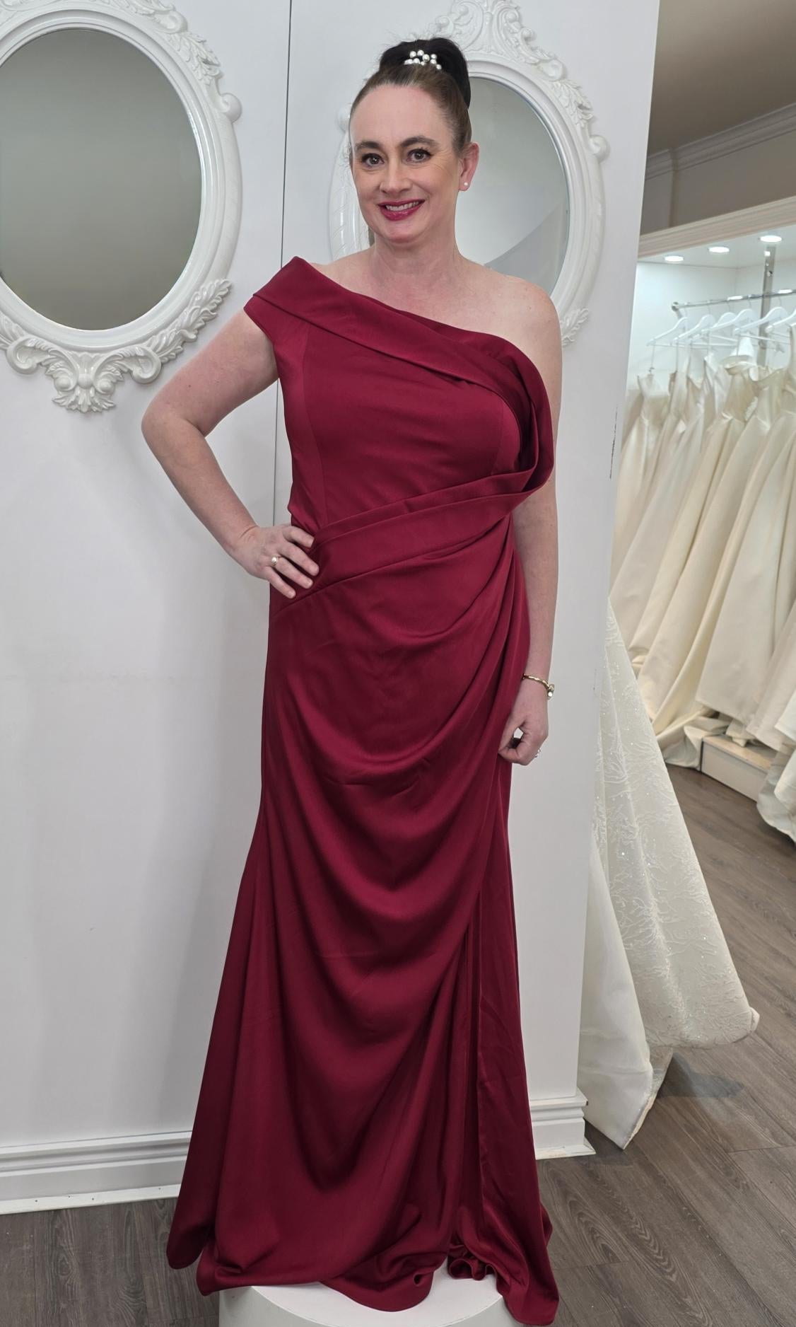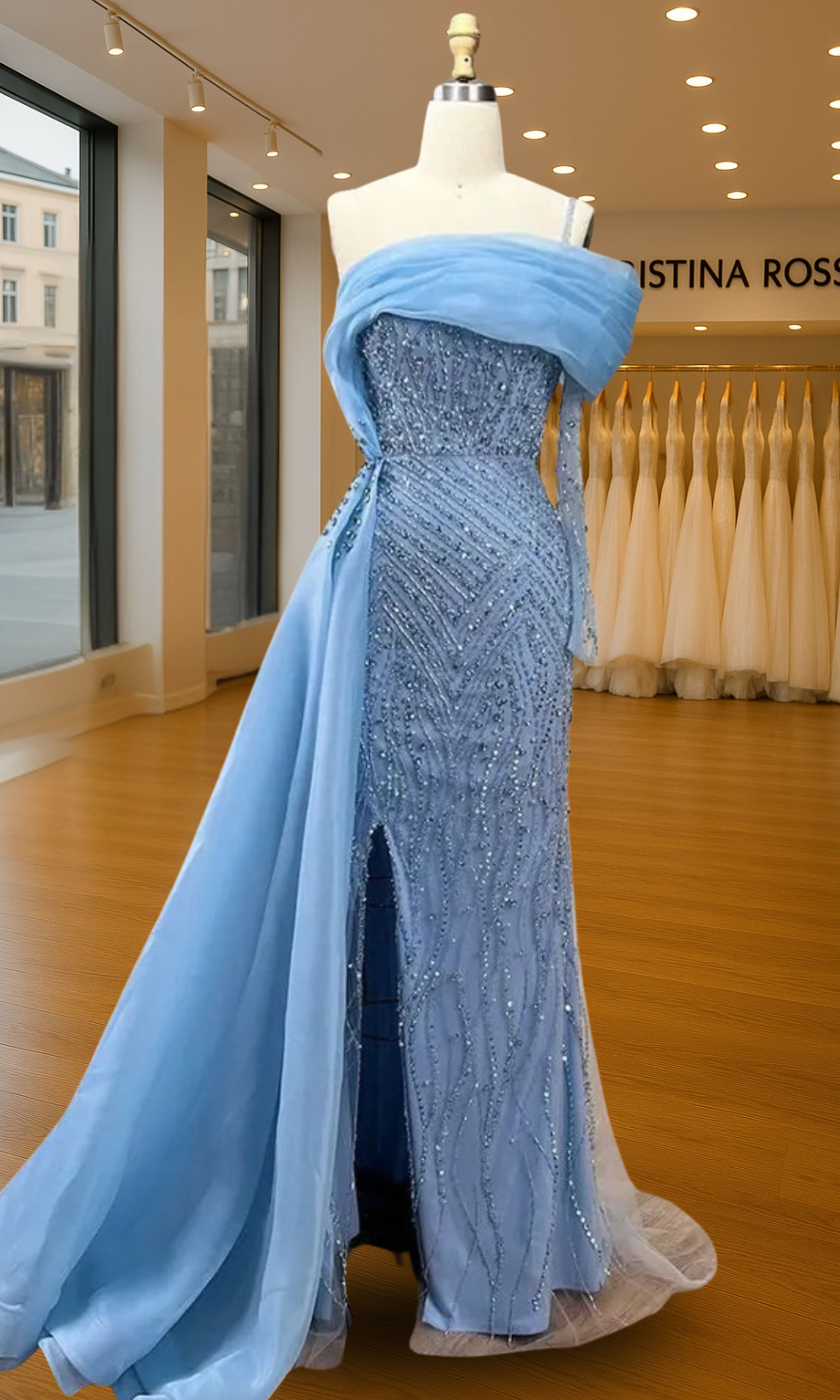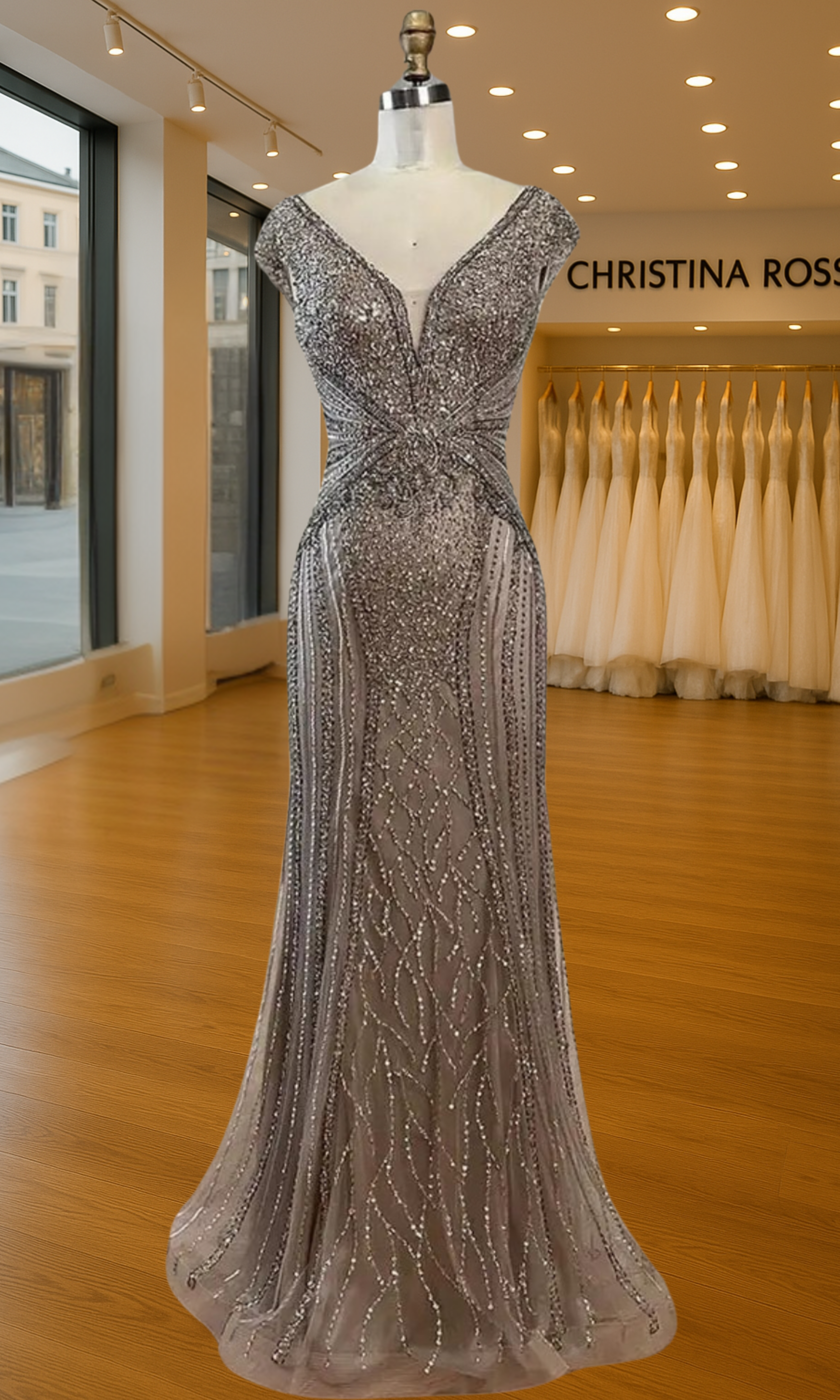 Elevate your special role as mother of the bride with our exquisitely crafted custom gown. This sophisticated dress combines classic elegance with contemporary design elements, ensuring you look and feel remarkable on your daughter's wedding day.