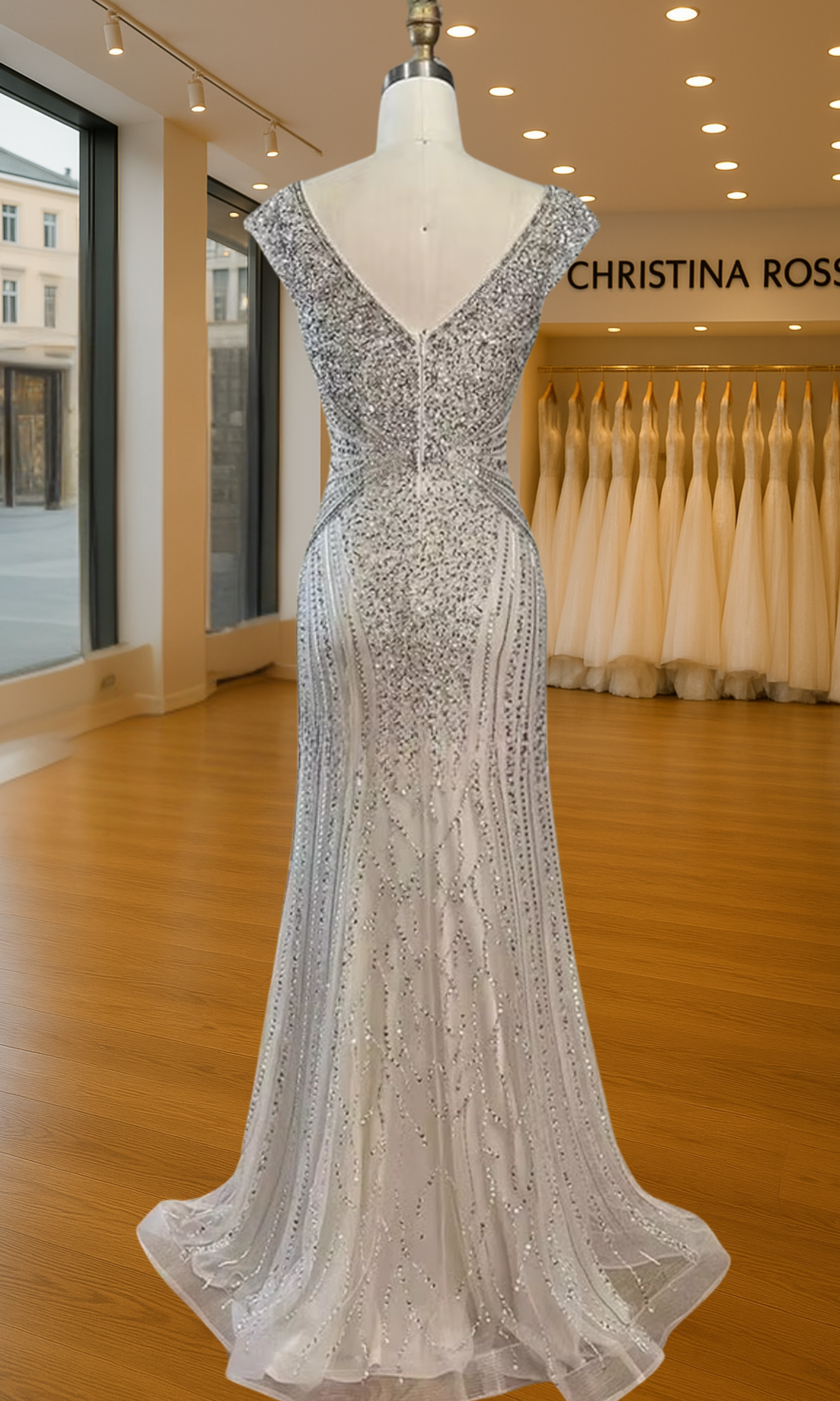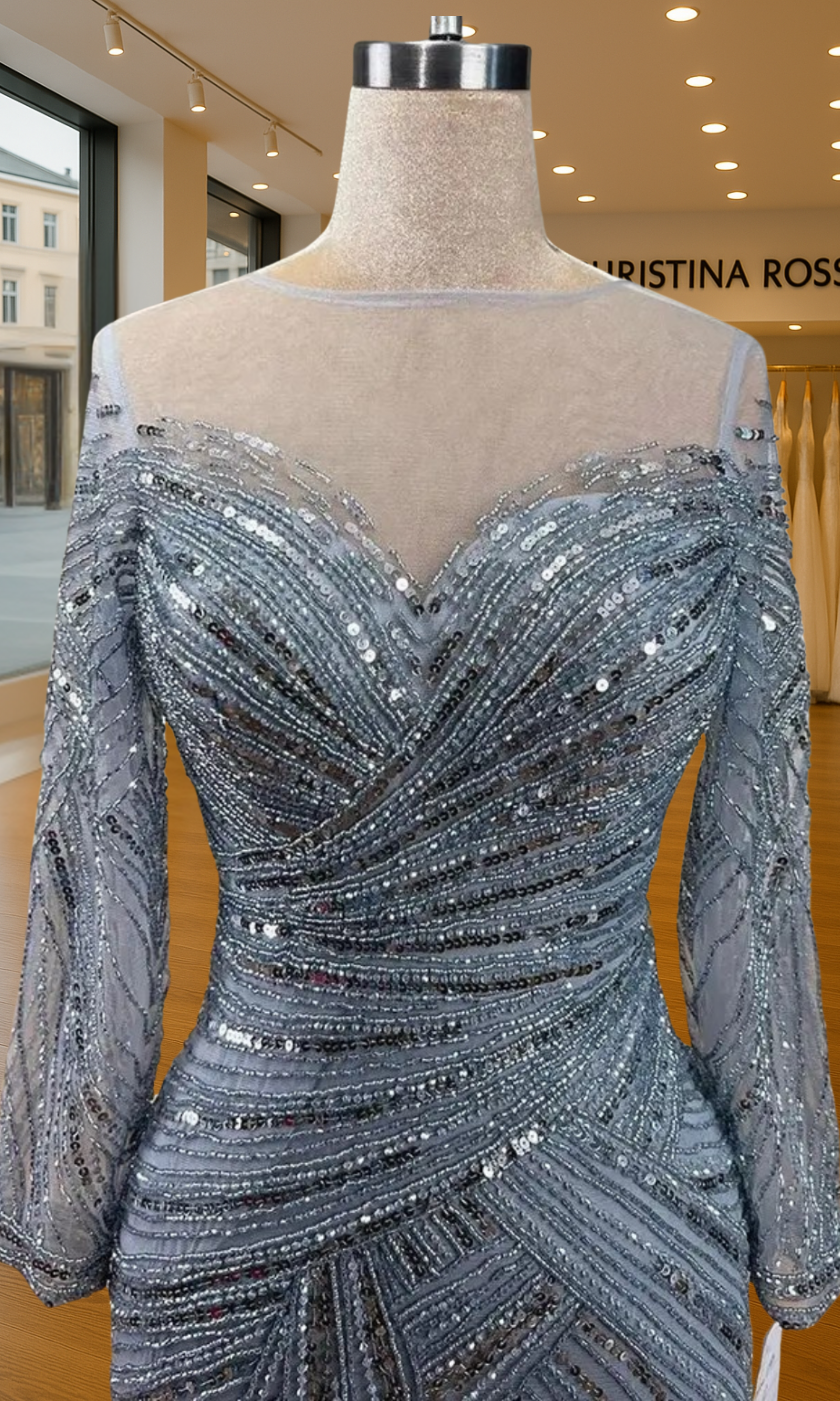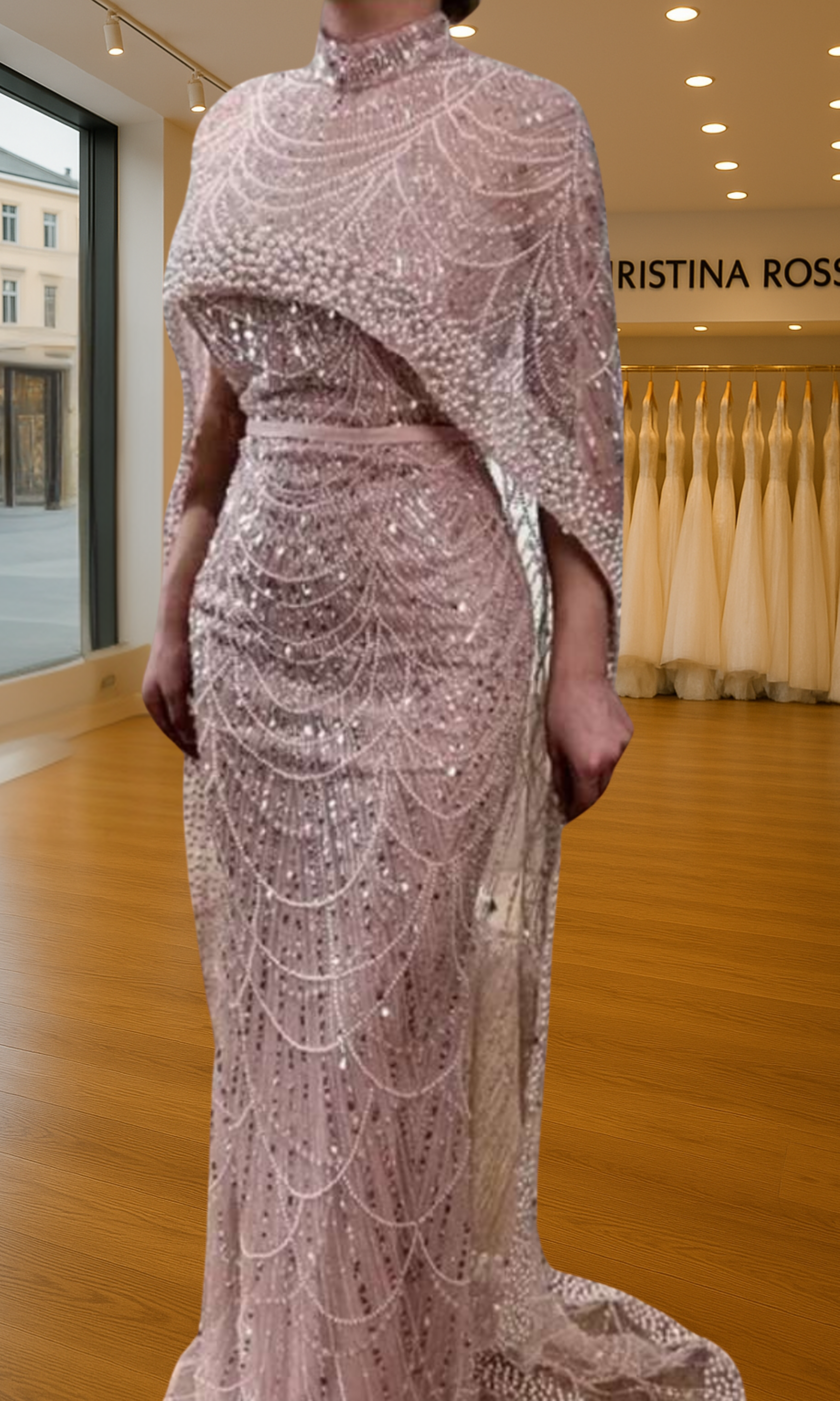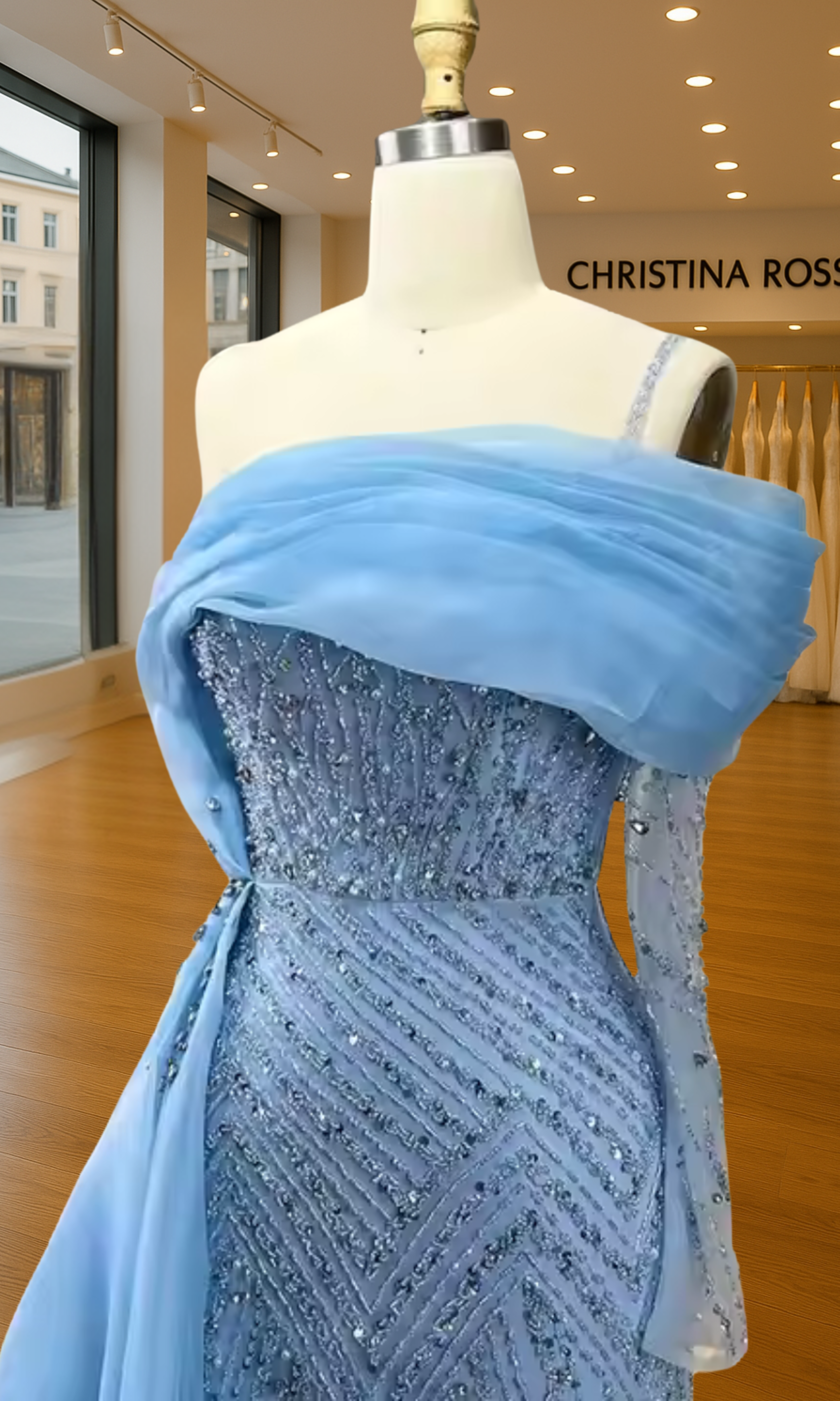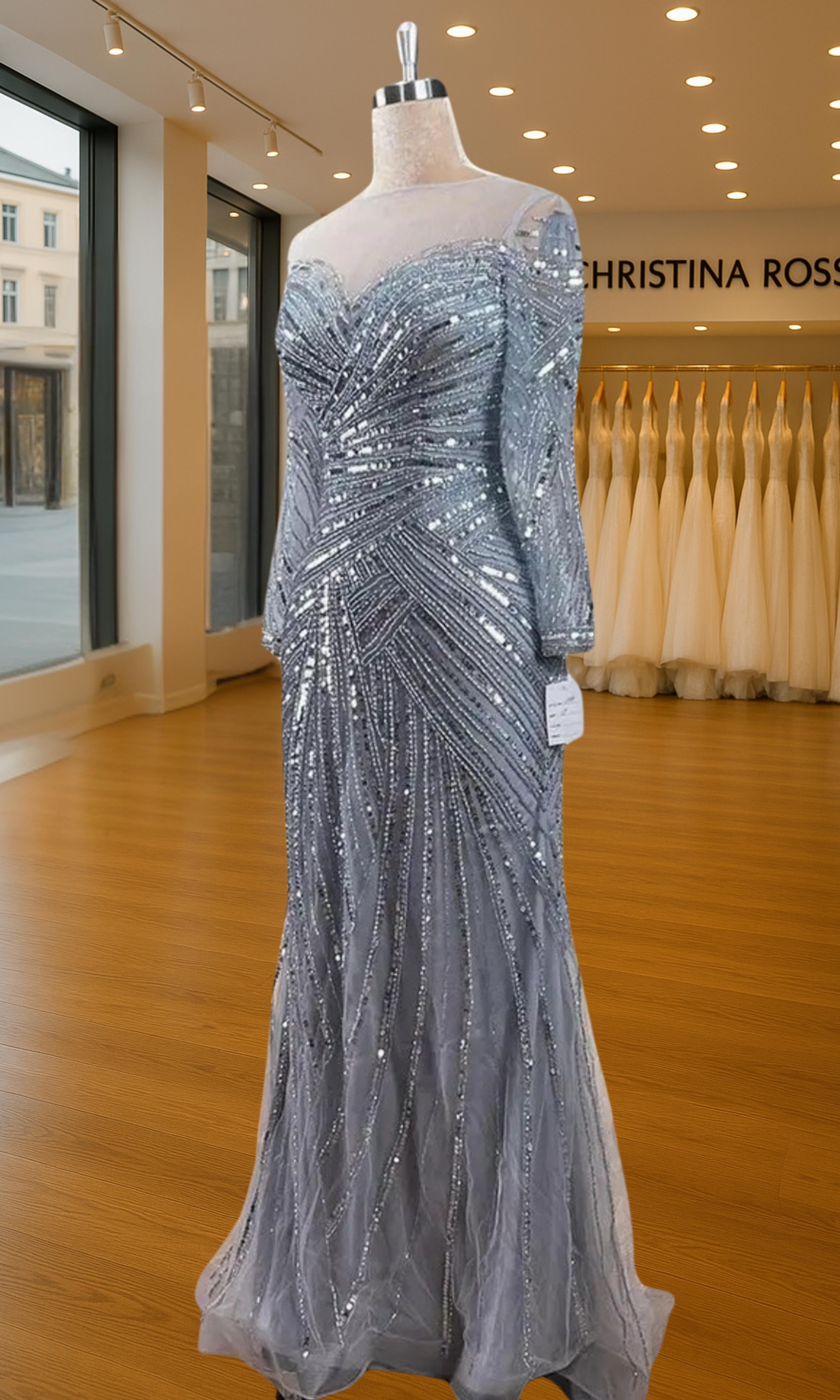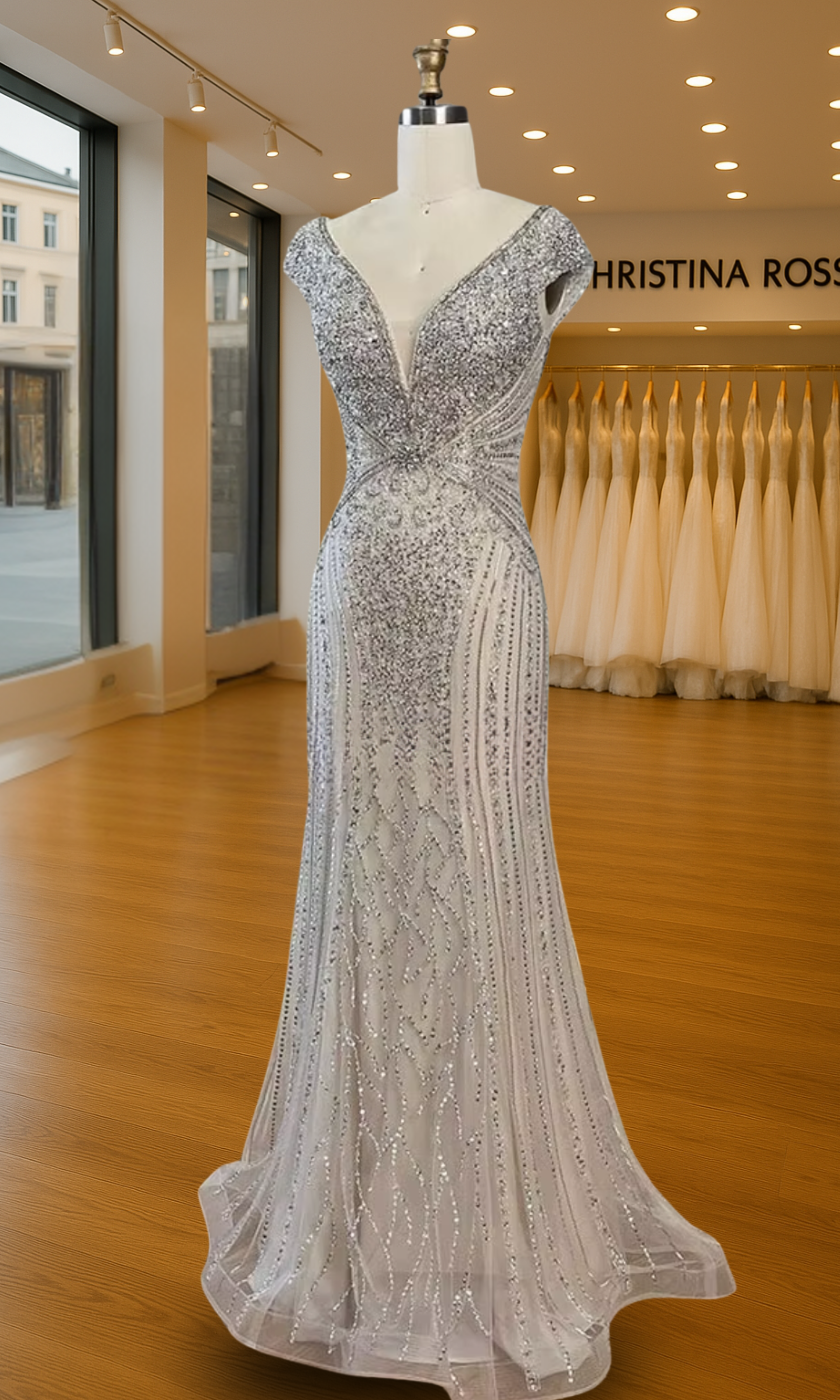 Elevate your special role as mother of the bride with our exquisitely crafted custom gown. This sophisticated dress combines classic elegance with contemporary design elements, ensuring you look and feel remarkable on your daughter's wedding day.
