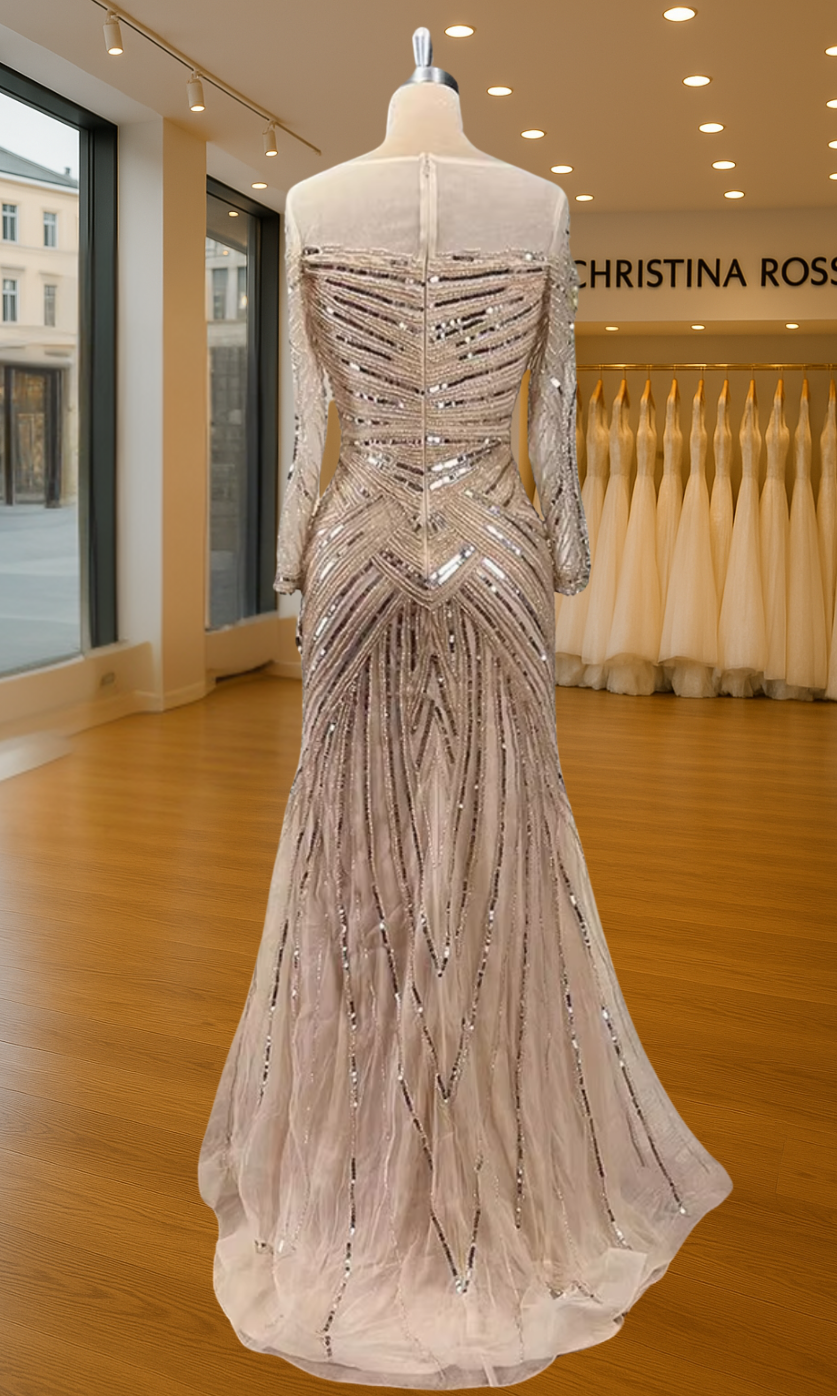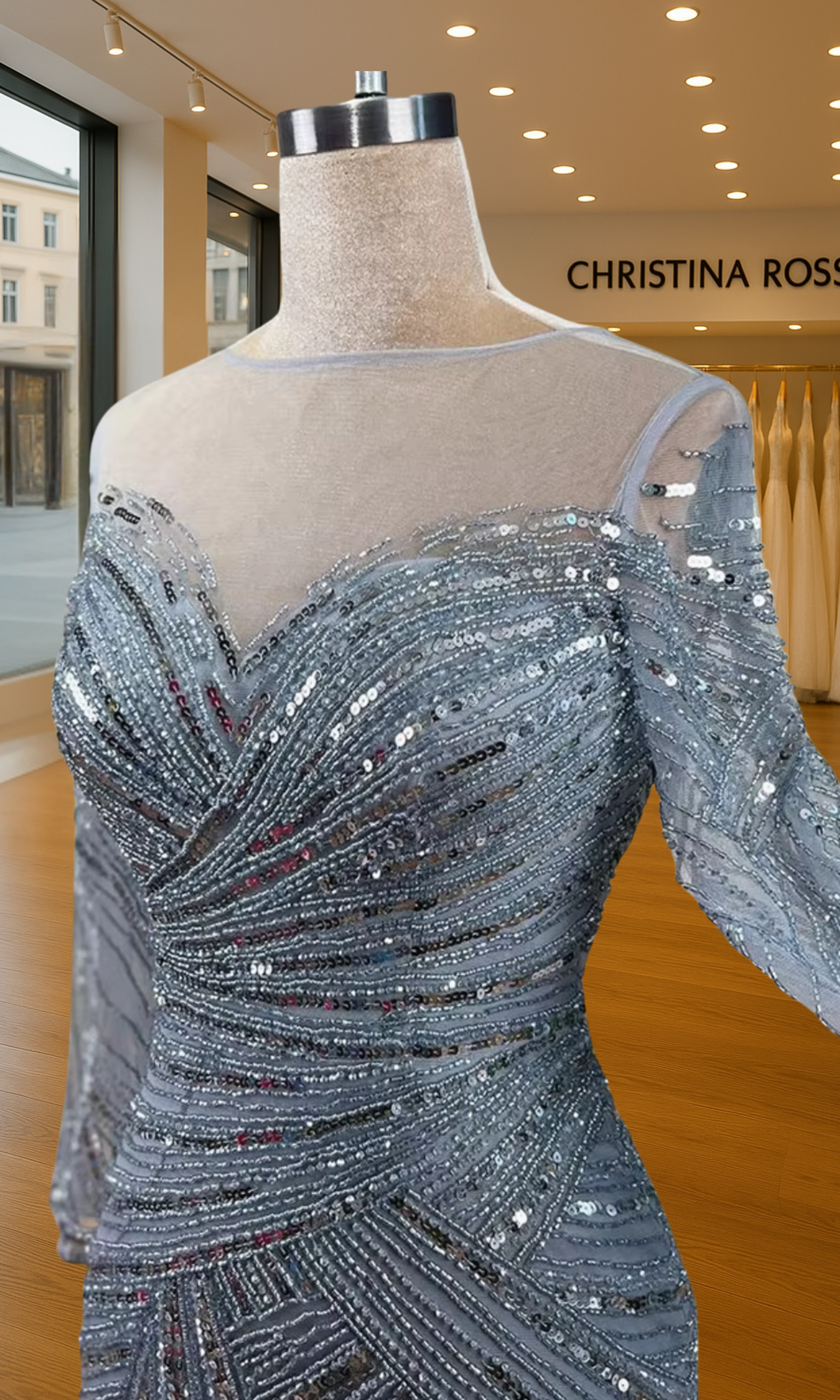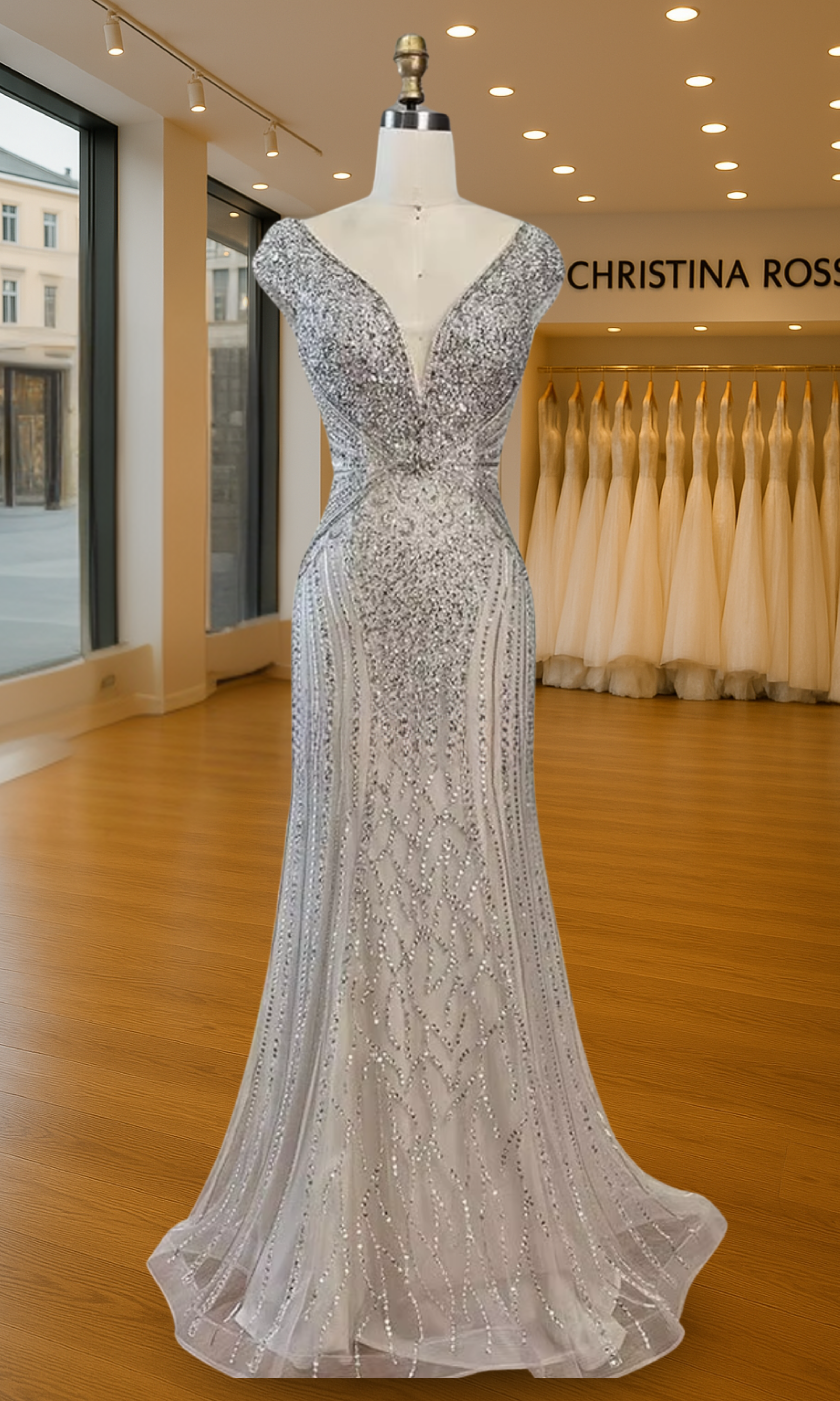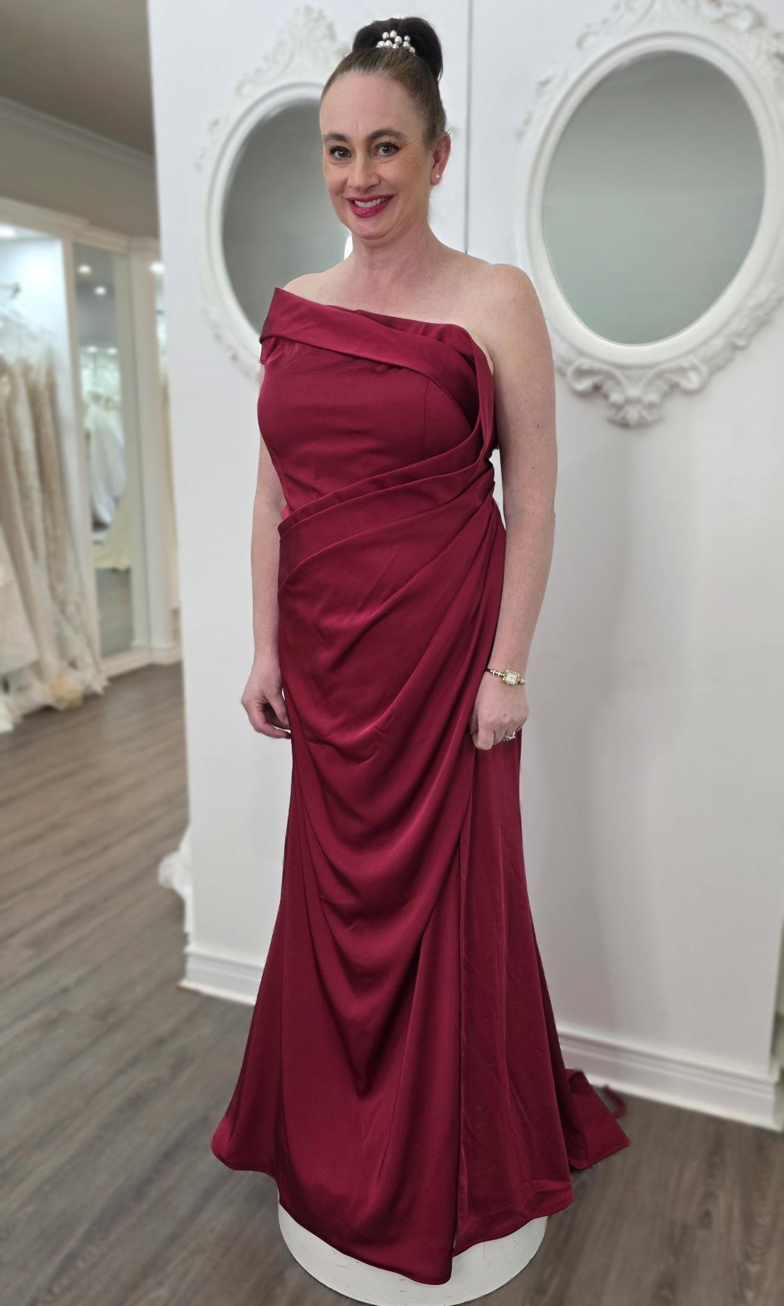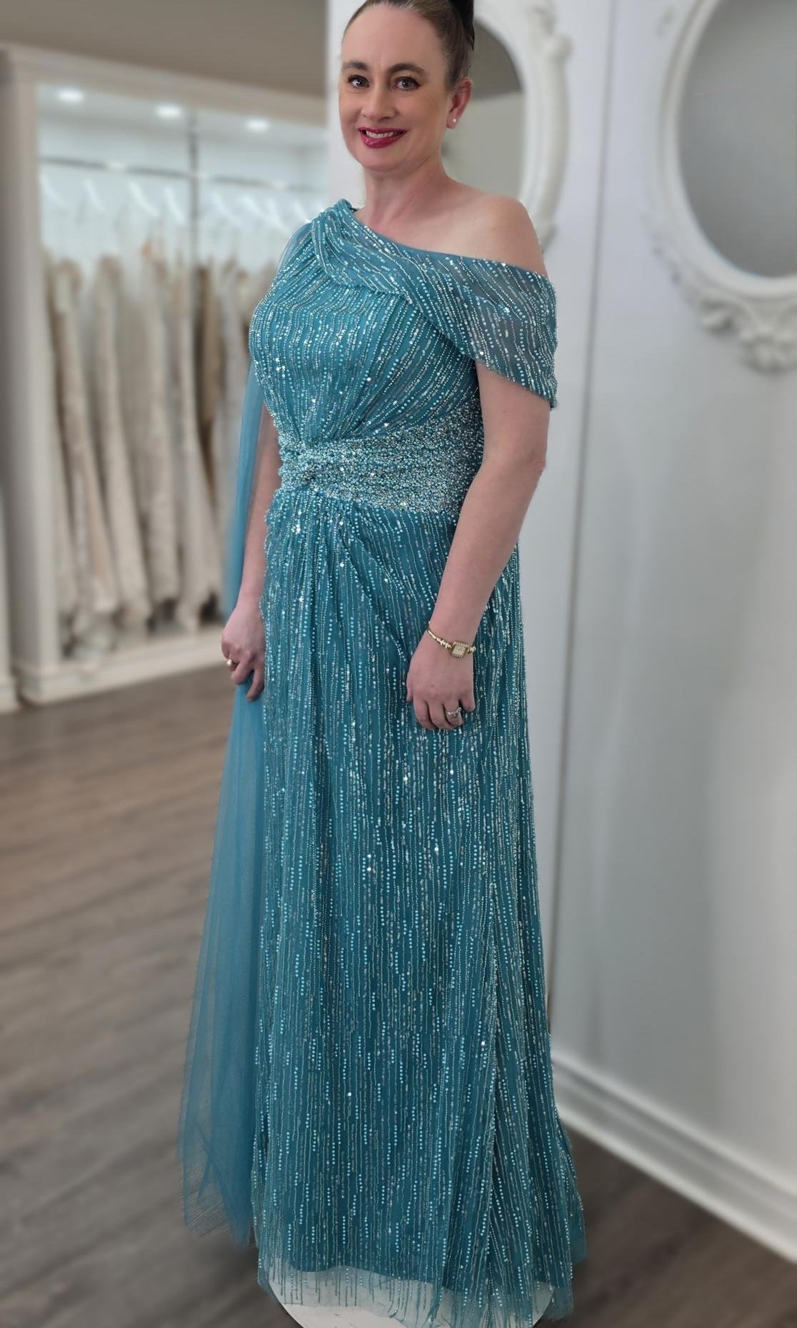 Elevate your special role as mother of the bride with our exquisitely crafted custom gown. This sophisticated dress combines classic elegance with contemporary design elements, ensuring you look and feel remarkable on your daughter's wedding day.