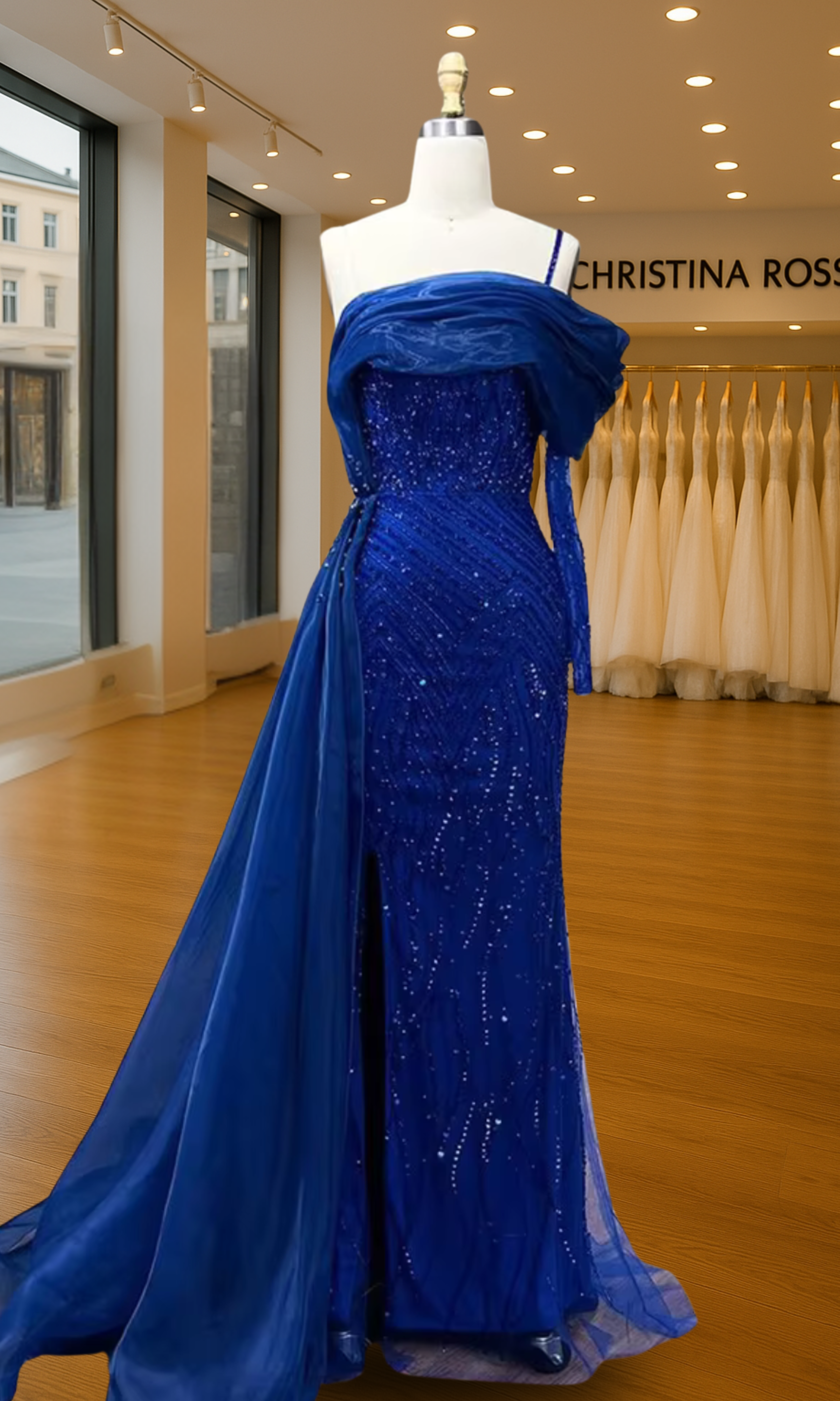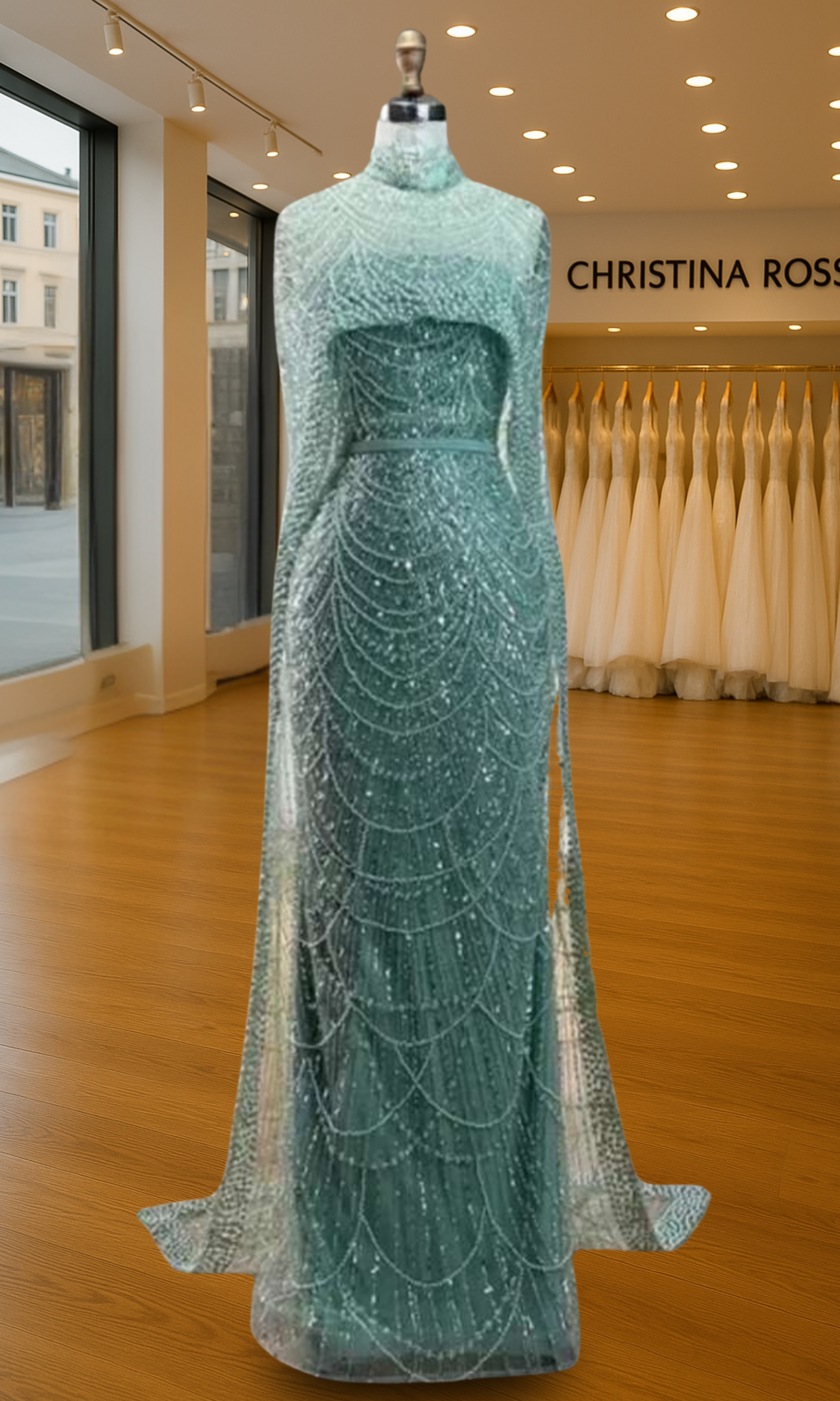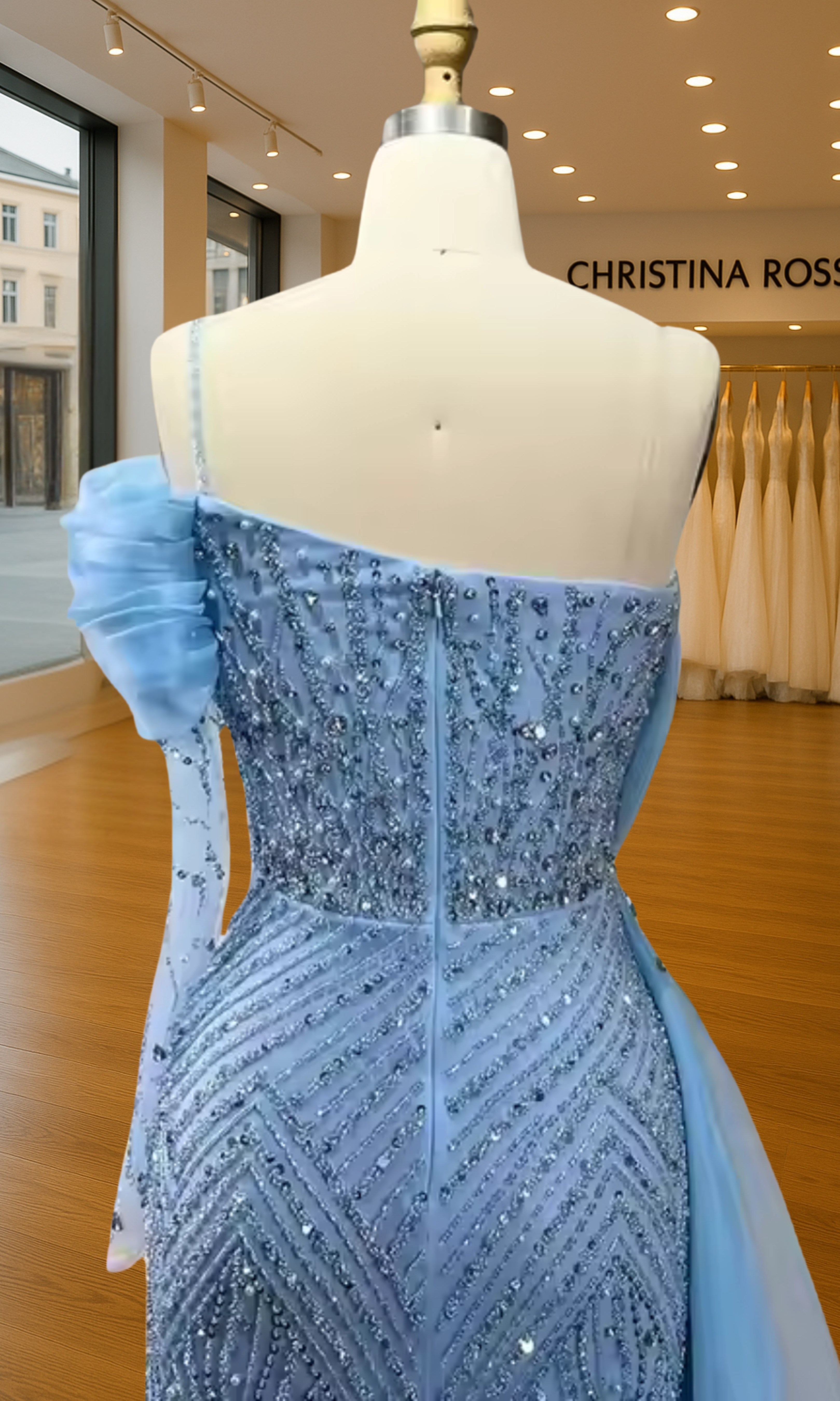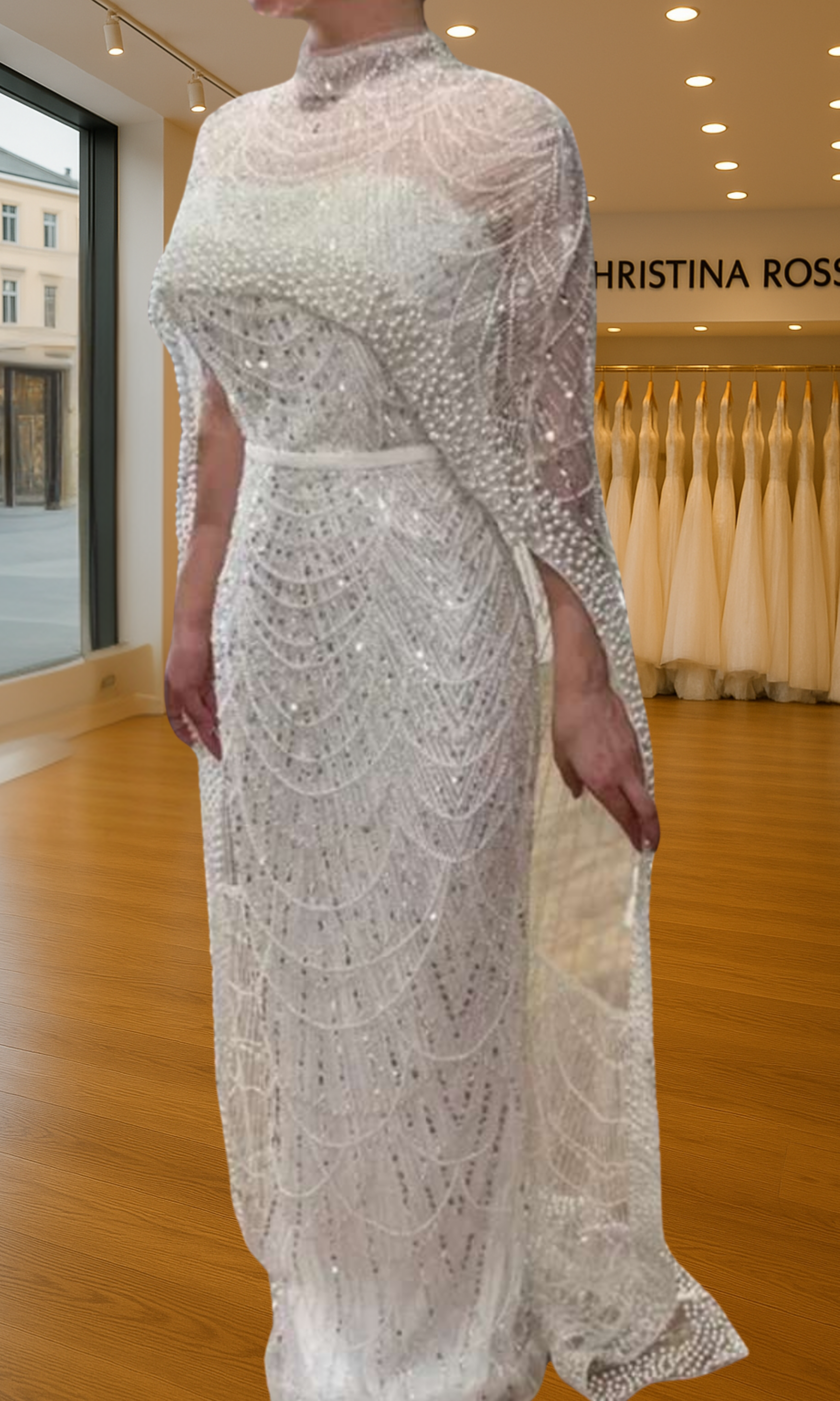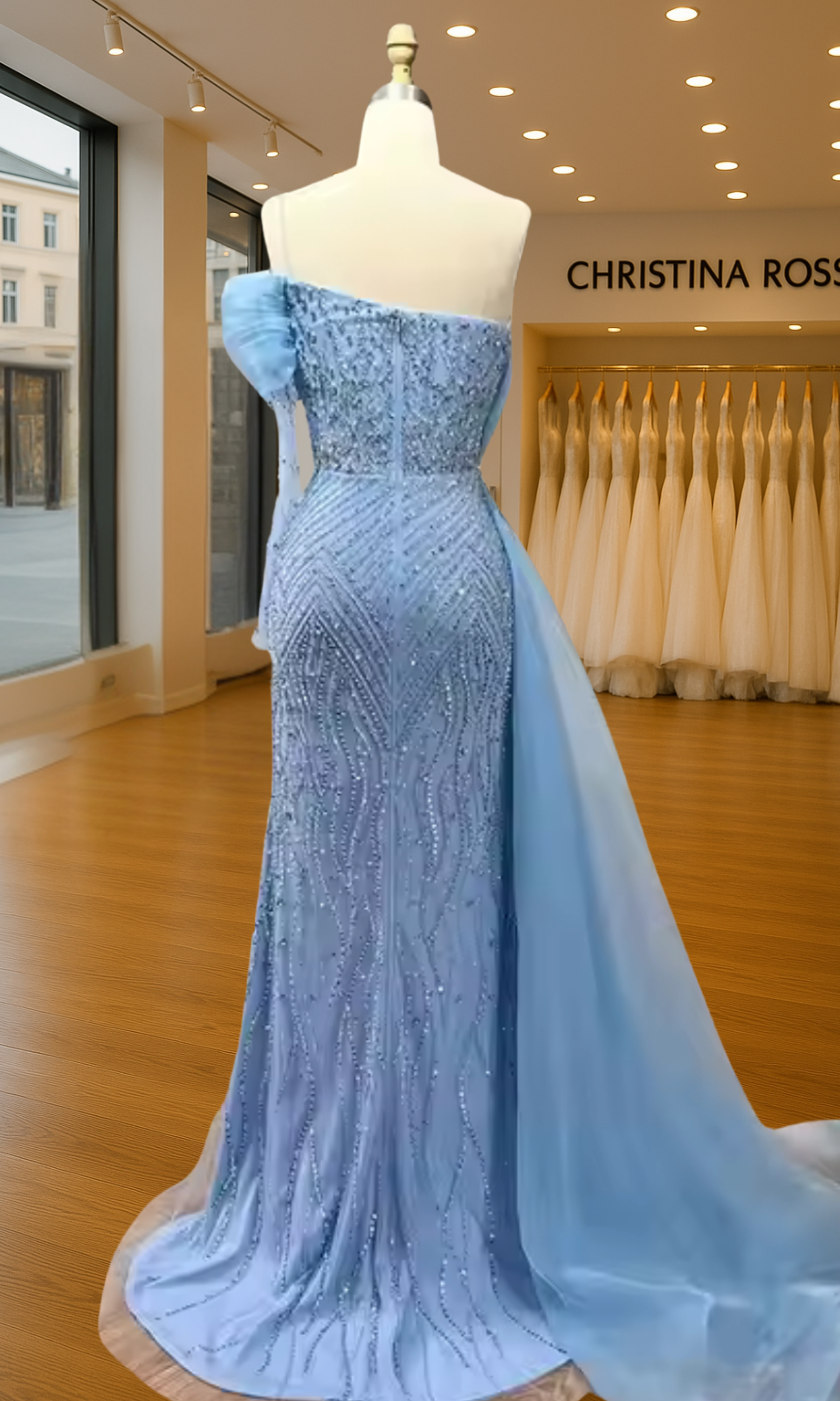Elevate your special role as mother of the bride with our exquisitely crafted custom gown. This sophisticated dress combines classic elegance with contemporary design elements, ensuring you look and feel remarkable on your daughter's wedding day.
