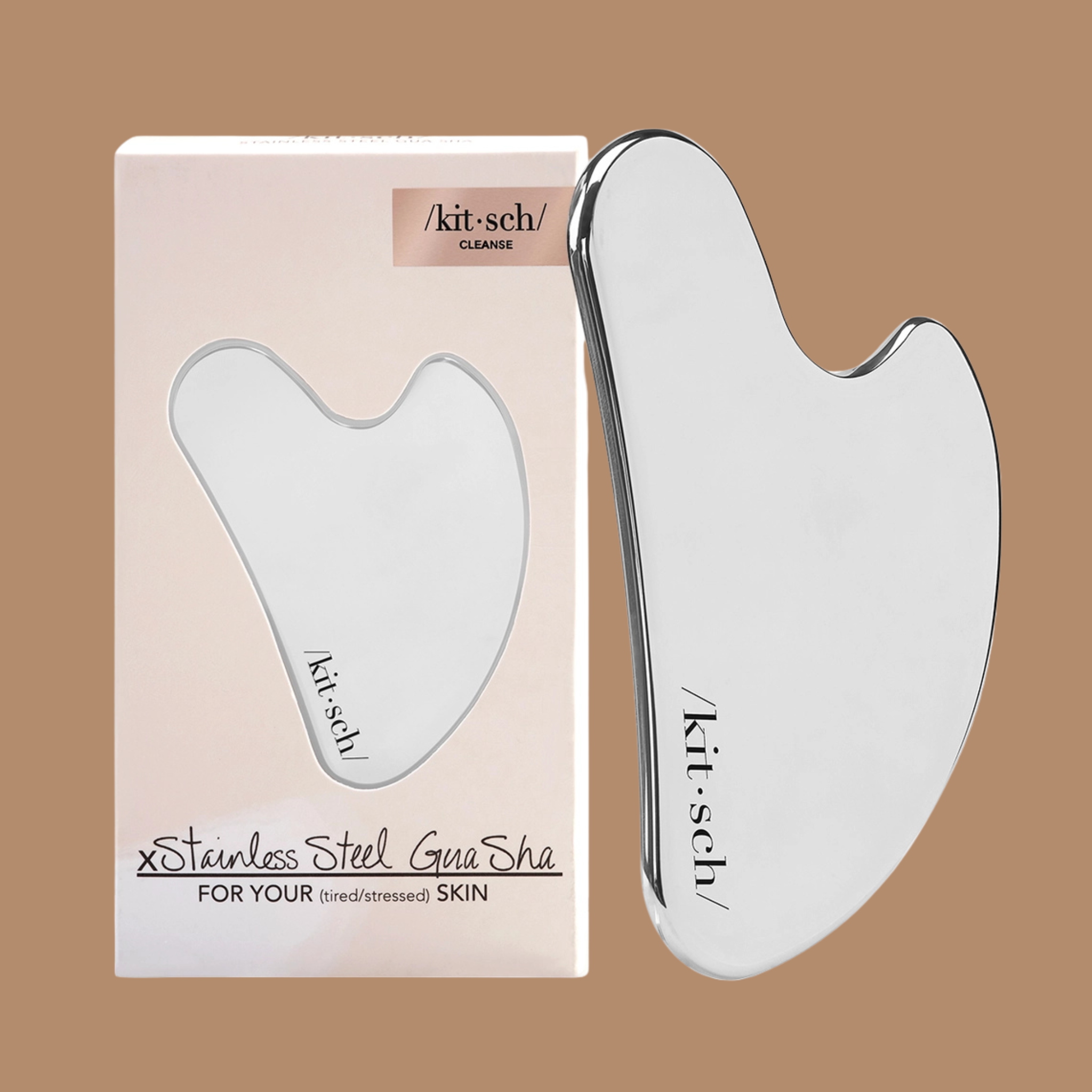 Kitsch Stainless Steel Gua Sha Tool may help massage the skin and may help promote blood circulation and lymphatic drainage for healthier, radiant skin. The perfect way to soothe tired muscles and stimulate pressure points, relieving stress & tension. Hygienic stainless steel construction is non-porous helping prevent bacteria build-up making it easy to clean & sanitize