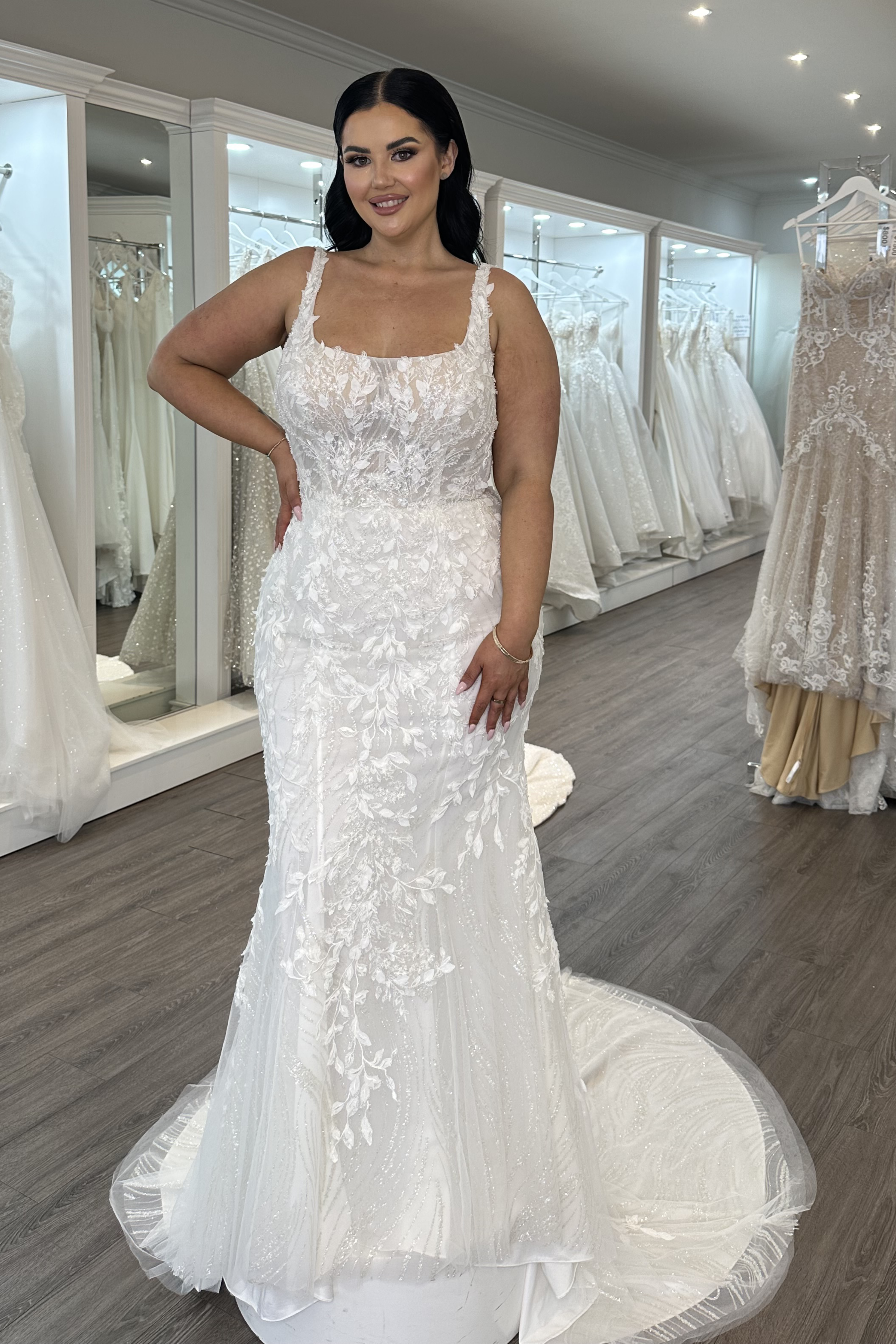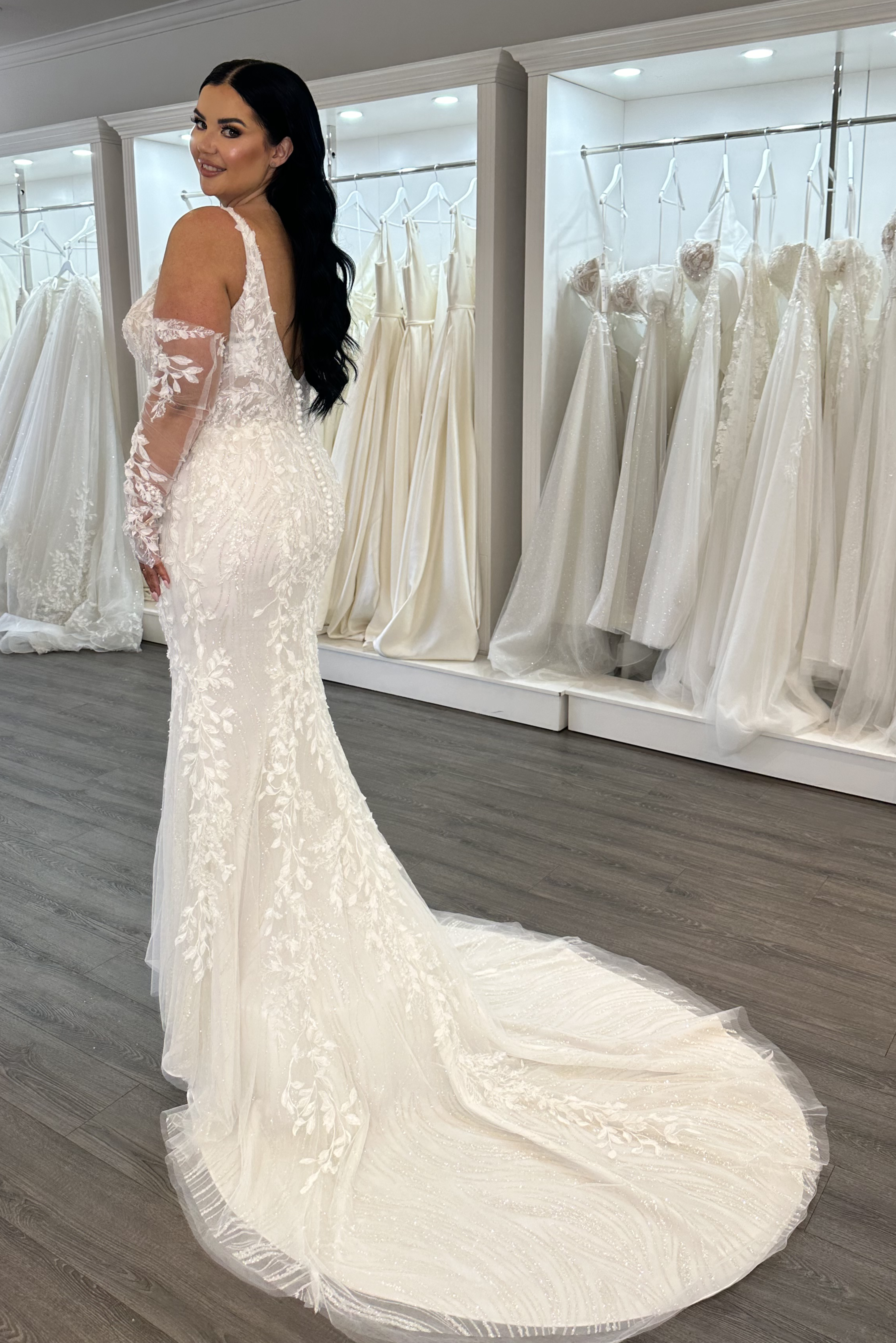 BERNICE can be tried on in our bridal stores in Sydney and Melbourne. Sample size: