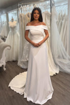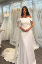Where sophistication meets effortless allure — the Joanne gown embodies timeless elegance in every curve. Featuring a straight neckline with crossed off-shoulder straps, this design beautifully frames the décolletage while offering a modern, structured silhouette. The luxurious satin fitted skirt drapes flawlessly, creating a look that’s both sleek and romantic — made for the bride who loves classic simplicity with contemporary charm. 🤍