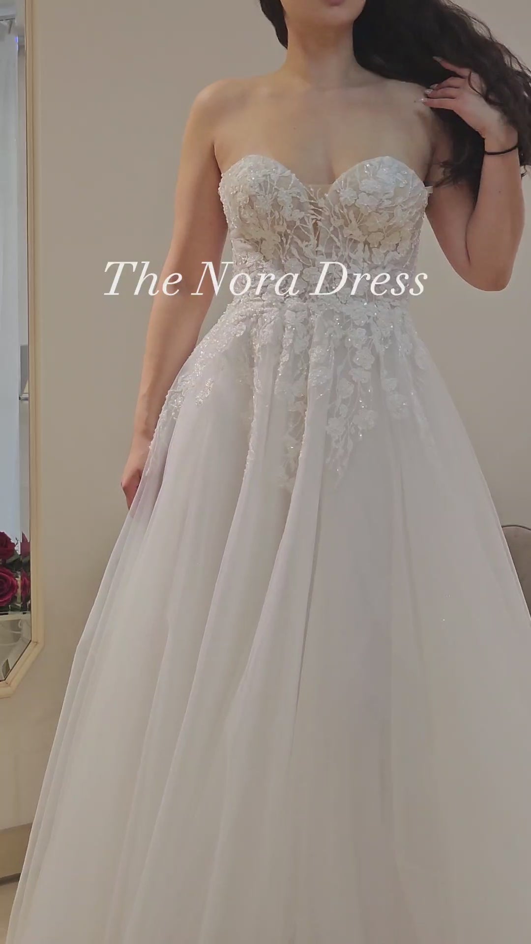 NORA can be tried on in our bridal stores in Sydney and Melbourne. Sample size:
