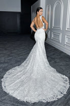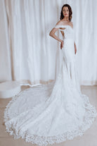 A bride will have a refined, elegant, and seductive image wearing a mermaid silhouette dress in ivory color. Exceptional RANIA features a sweetheart neckline, off-the-shoulder, and fitted bodice that emphasizes the grace of the posture, and the neck. The close-fitting skirt in the hip area is made of button closure in lace & tulle fabric with a beautifully flowing train.
