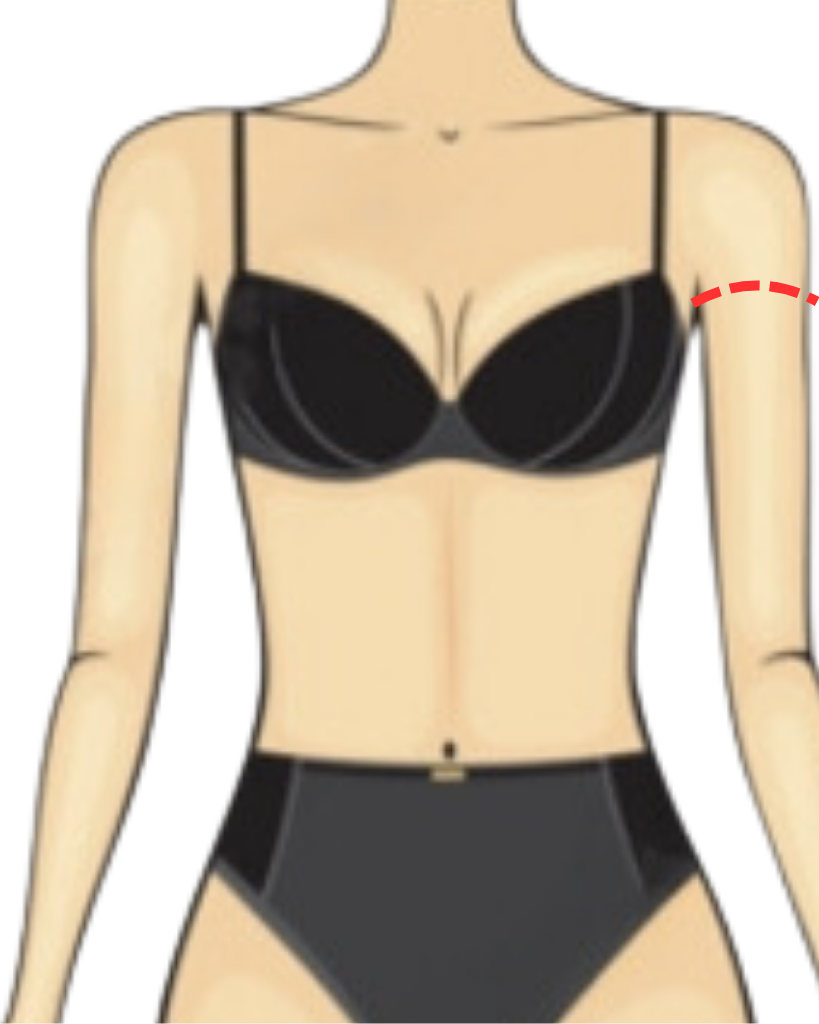 Let your arms hang naturally. Measure around your upper arms, upper bust, and back, keeping tape straight.