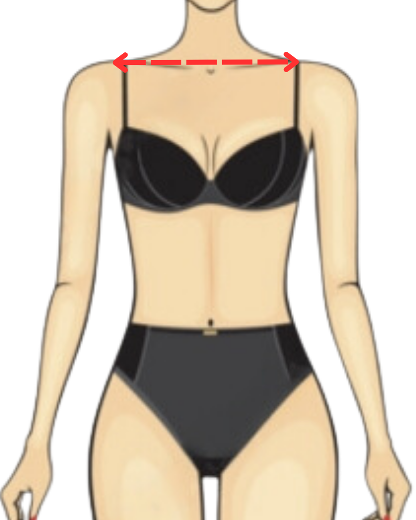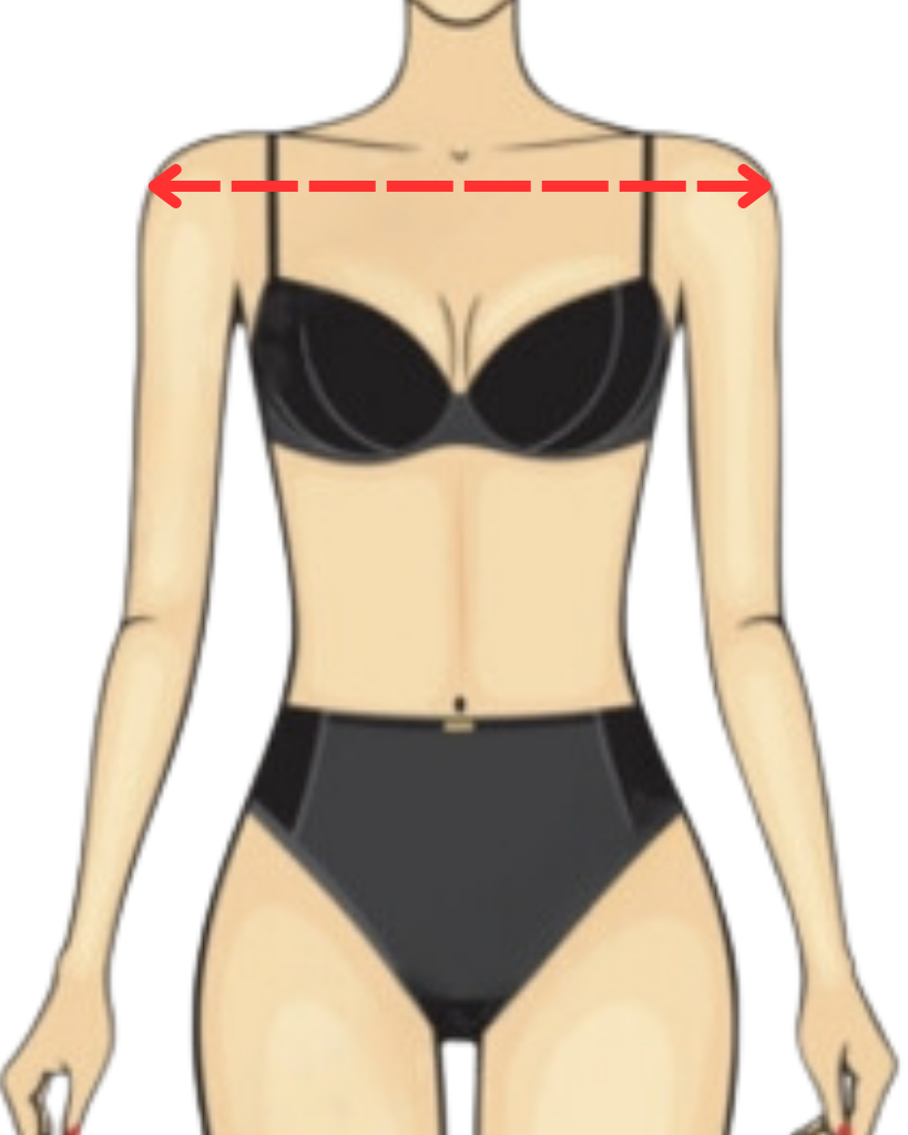 Measure from the edge of your shoulder socket to the same point on the other shoulder at the back. Keep the tape parallel to the floor.