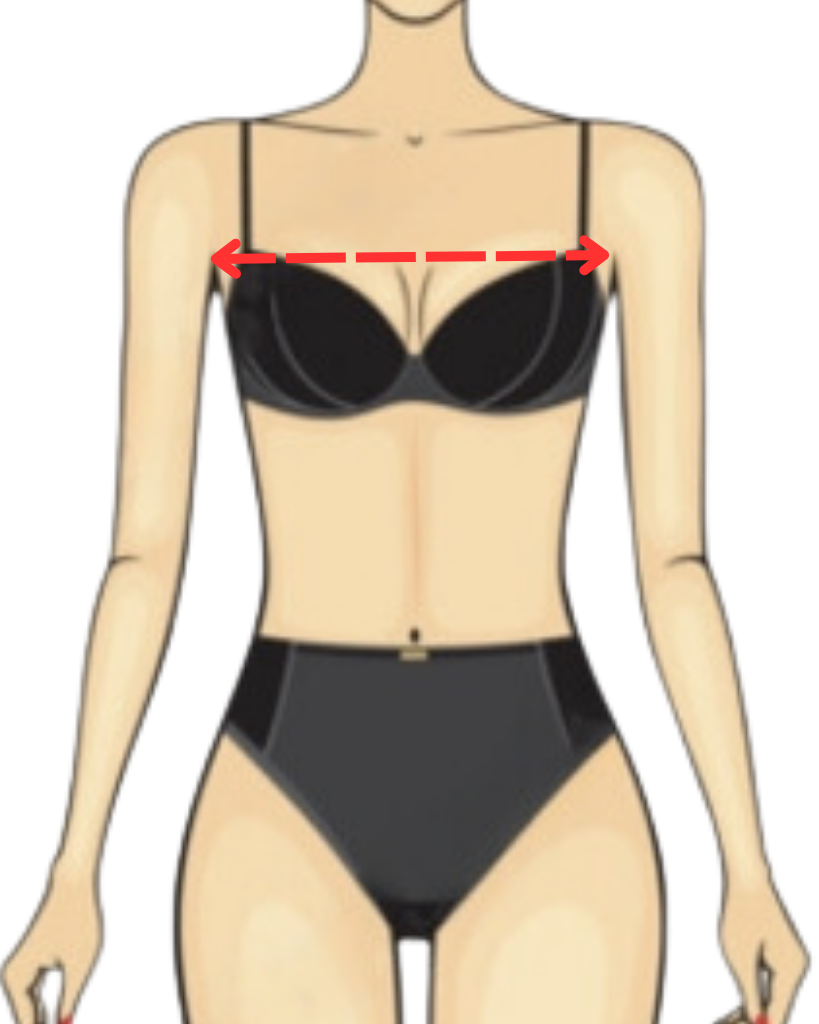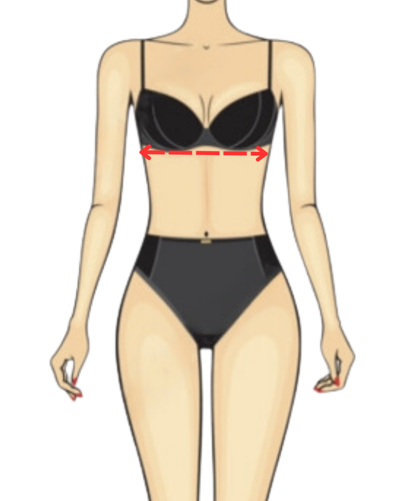 Measure around the upper breast, across your shoulder blades and under your armpits. Keep the tape parallel to the floor.