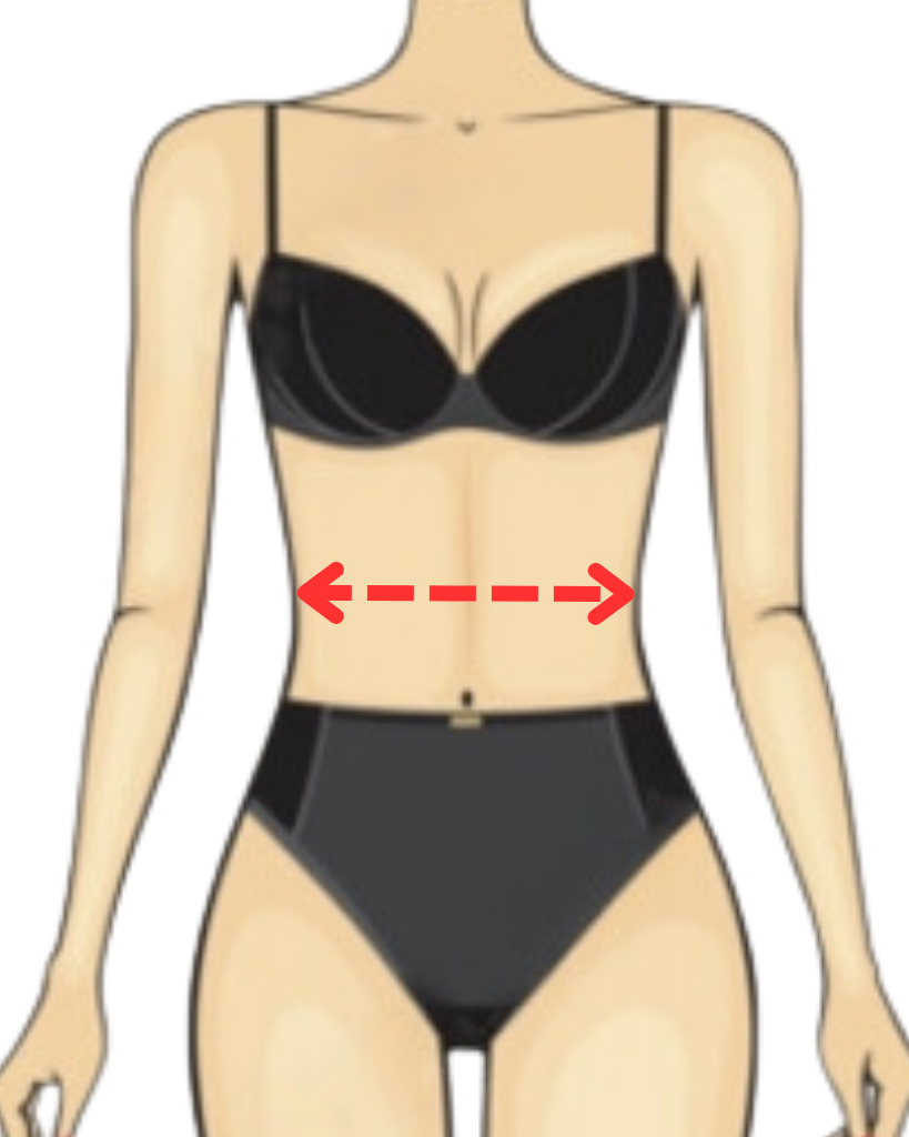 Measure around your natural waist, between your rib cage and belly button. Keep the tape horizontal and slightly loose.