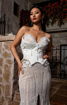Top Bodice: Structured Bodice Corset, Dangling Pearls, Sequins, 3D Florals