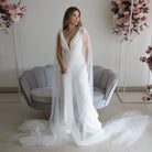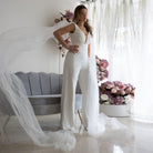 Wide leg pantsuit featuring side pockets, pleated waistline belt and bodice with V shape neckline, made of stretch Italian crepe, bridal jumpsuit. Mix & Match, and Customisations are now available.