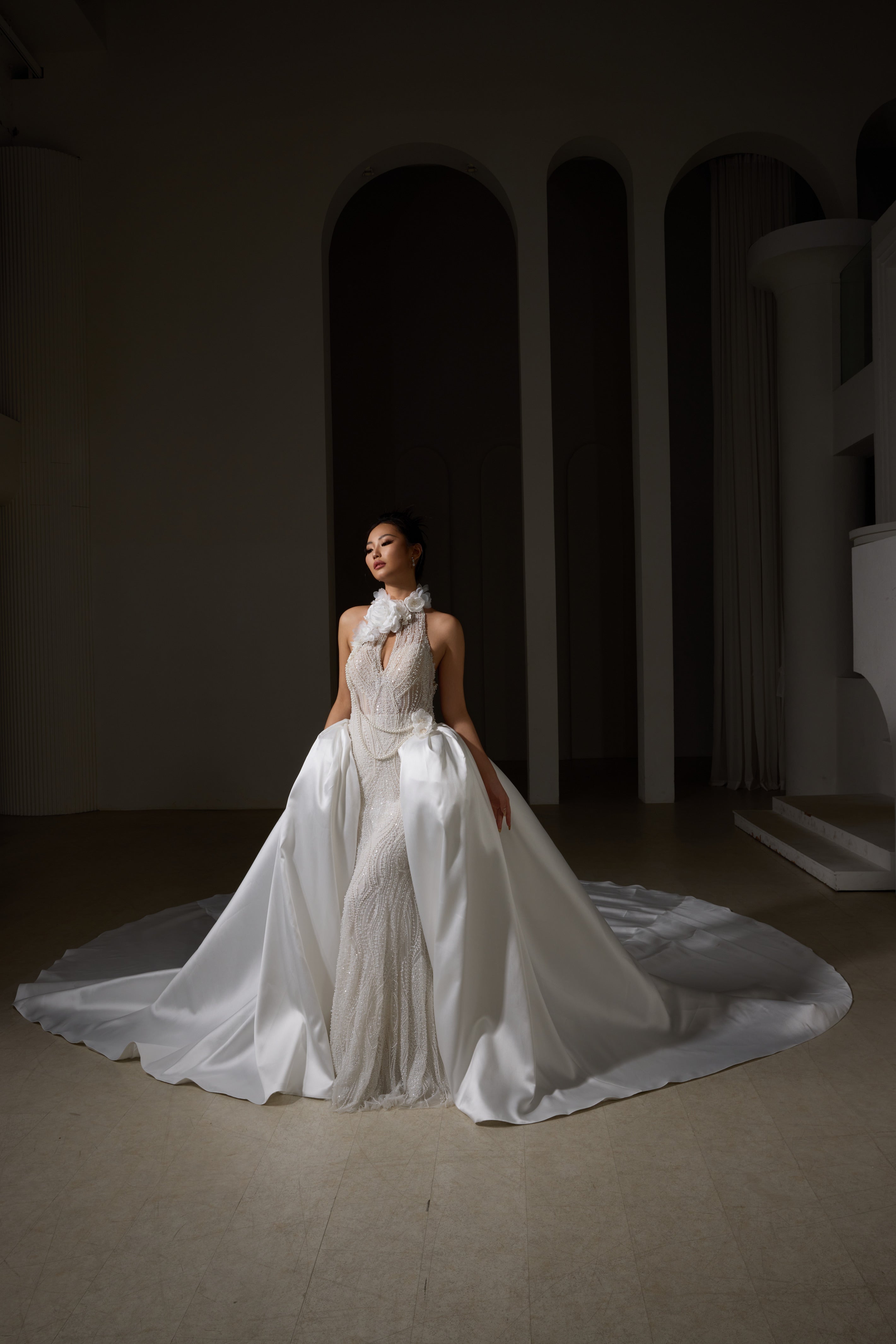 SKT003 | Cathedral-Length Detachable Satin Overskirt